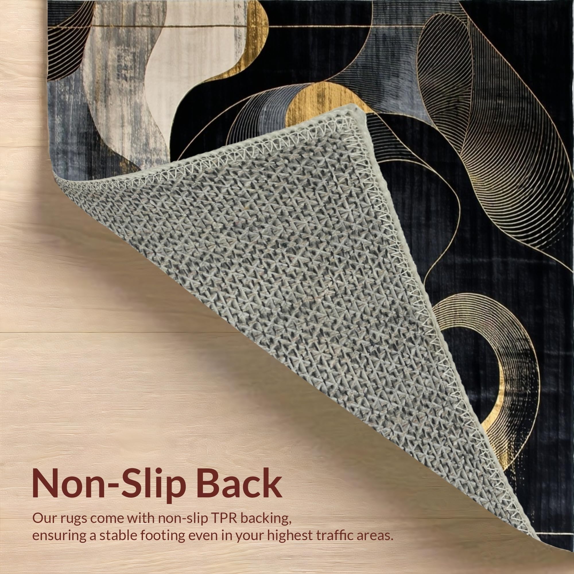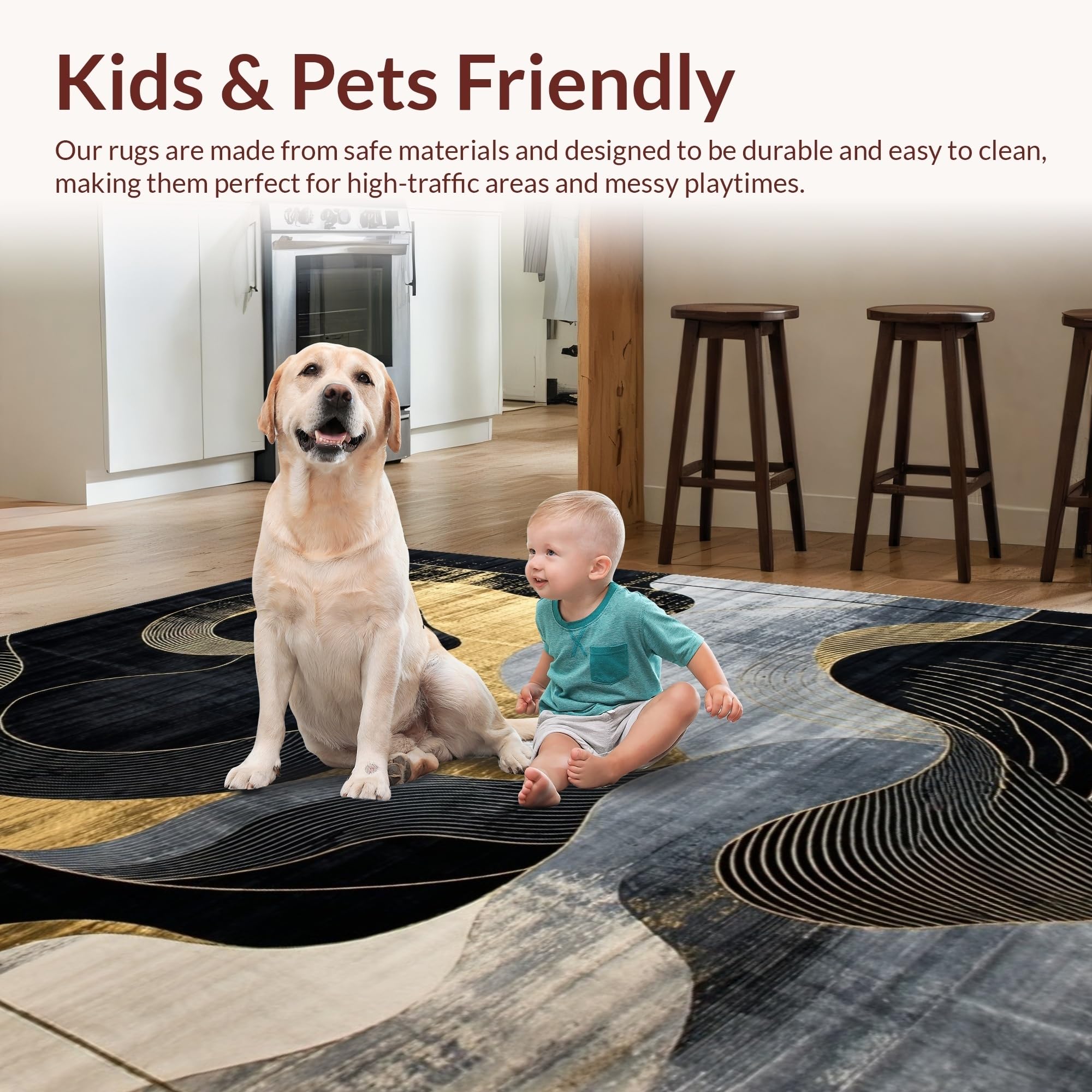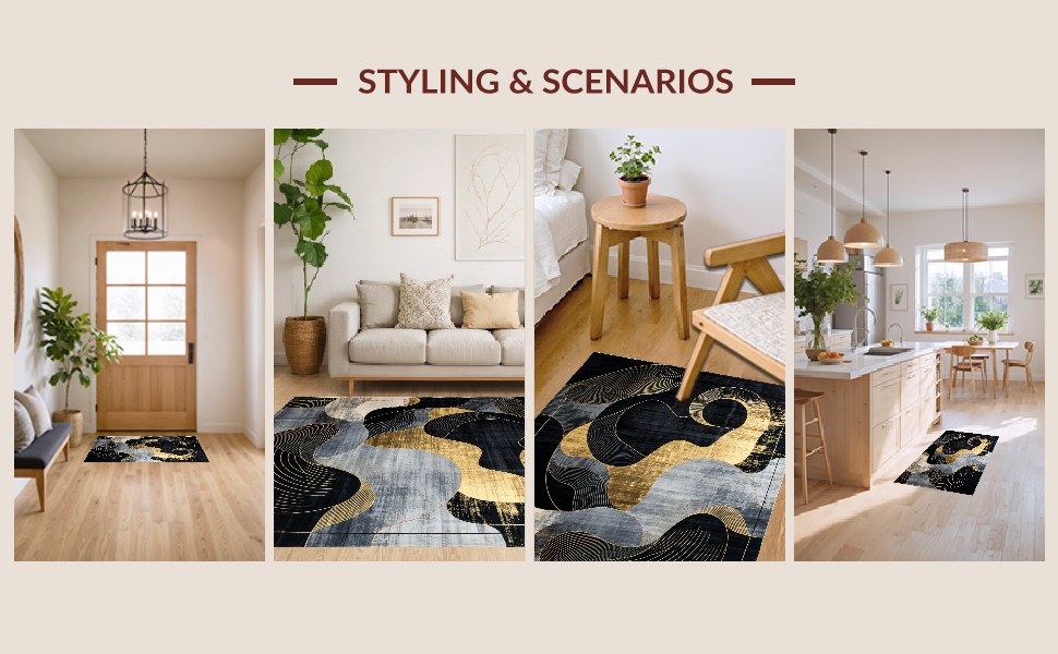 Ultra Soft Area Rug, Non Slip, Stain Resistant, Washable Area Rugs for Living Room, Bedroom, Chic Modern Abstract Contrast(Black) Overview: