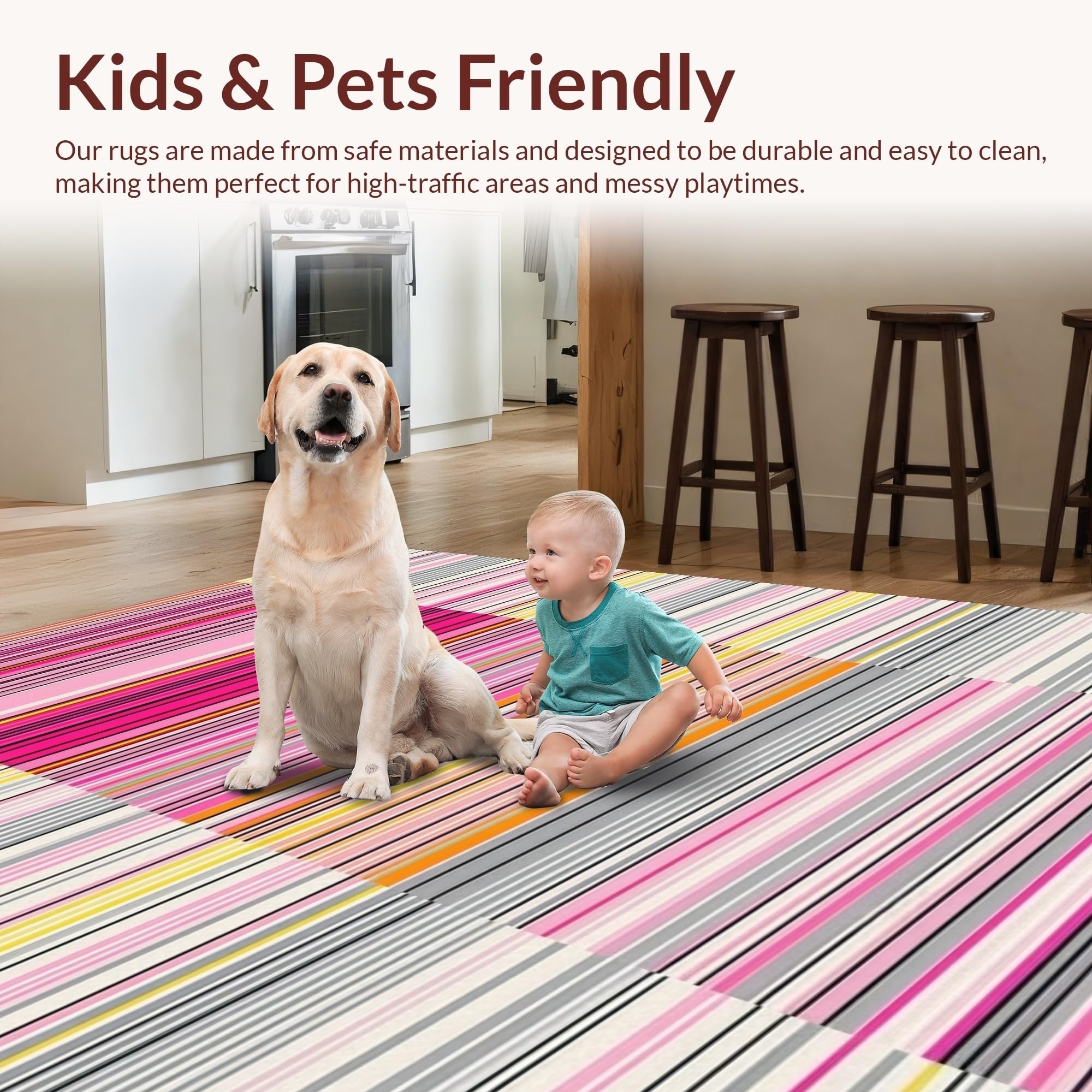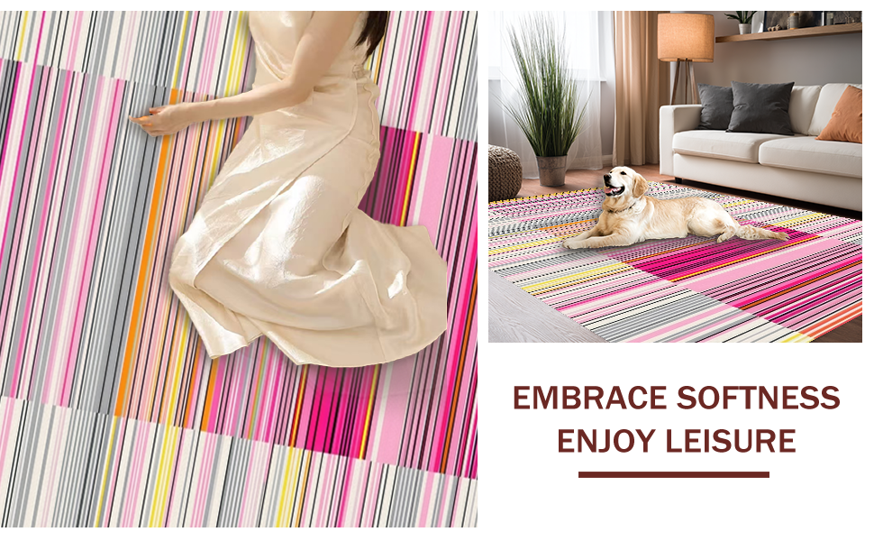 Ultra Soft Area Rug, Non Slip, Stain Resistant, Washable Area Rugs for Living Room, Bedroom, Chic Modern Artful Decor(Pink) Overview: