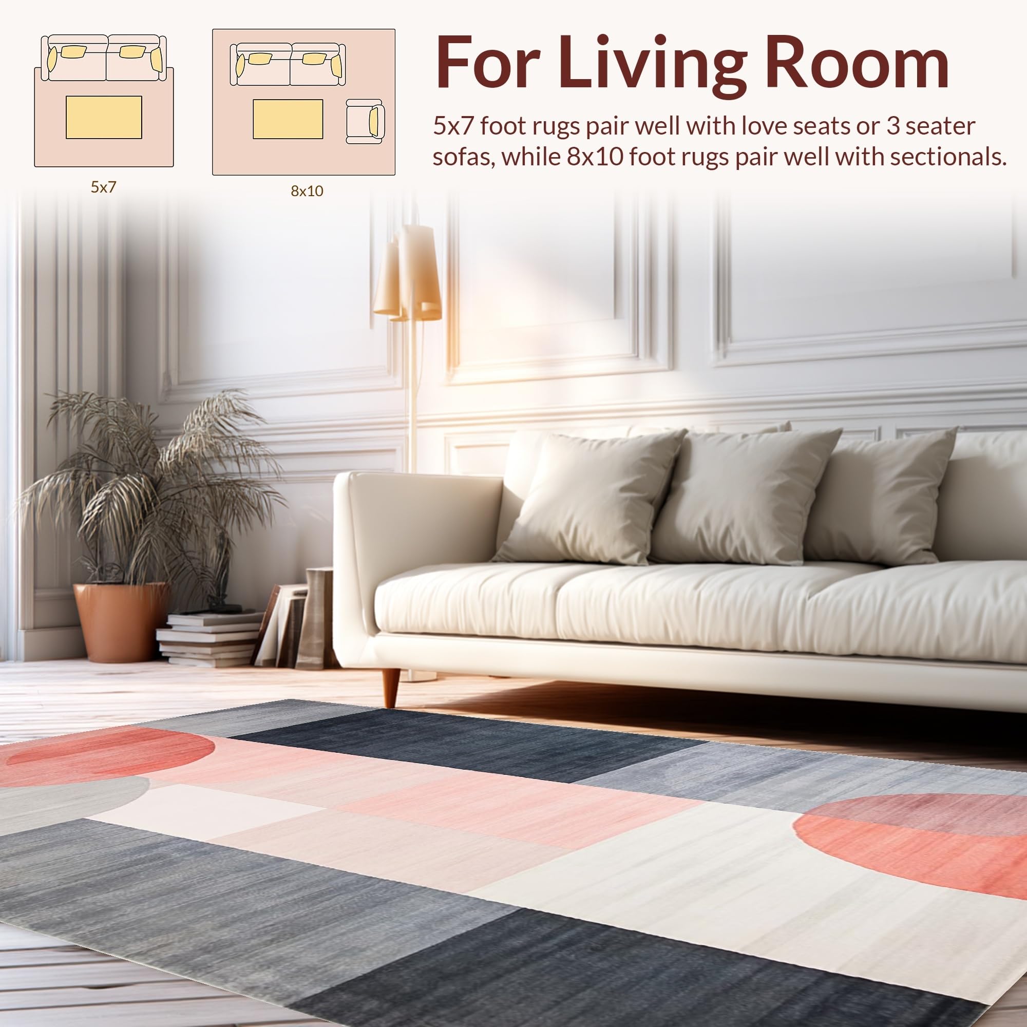 Ultra Soft Area Rug, Non Slip, Stain Resistant, Washable Area Rugs for Living Room, Bedroom, Chic Modern Blush Gray Aesthetic(Gray) Overview: