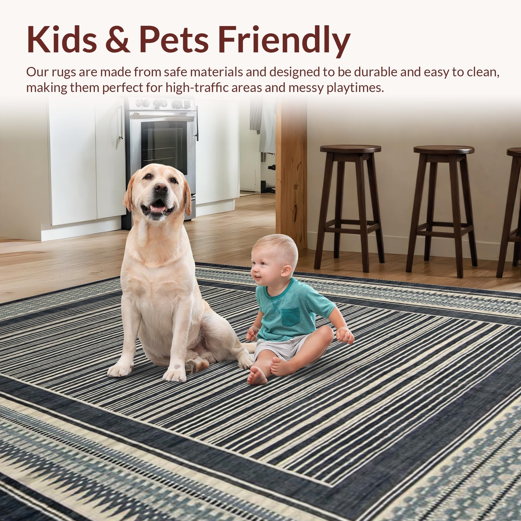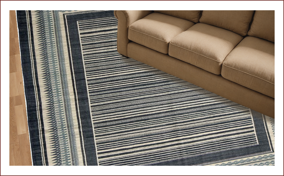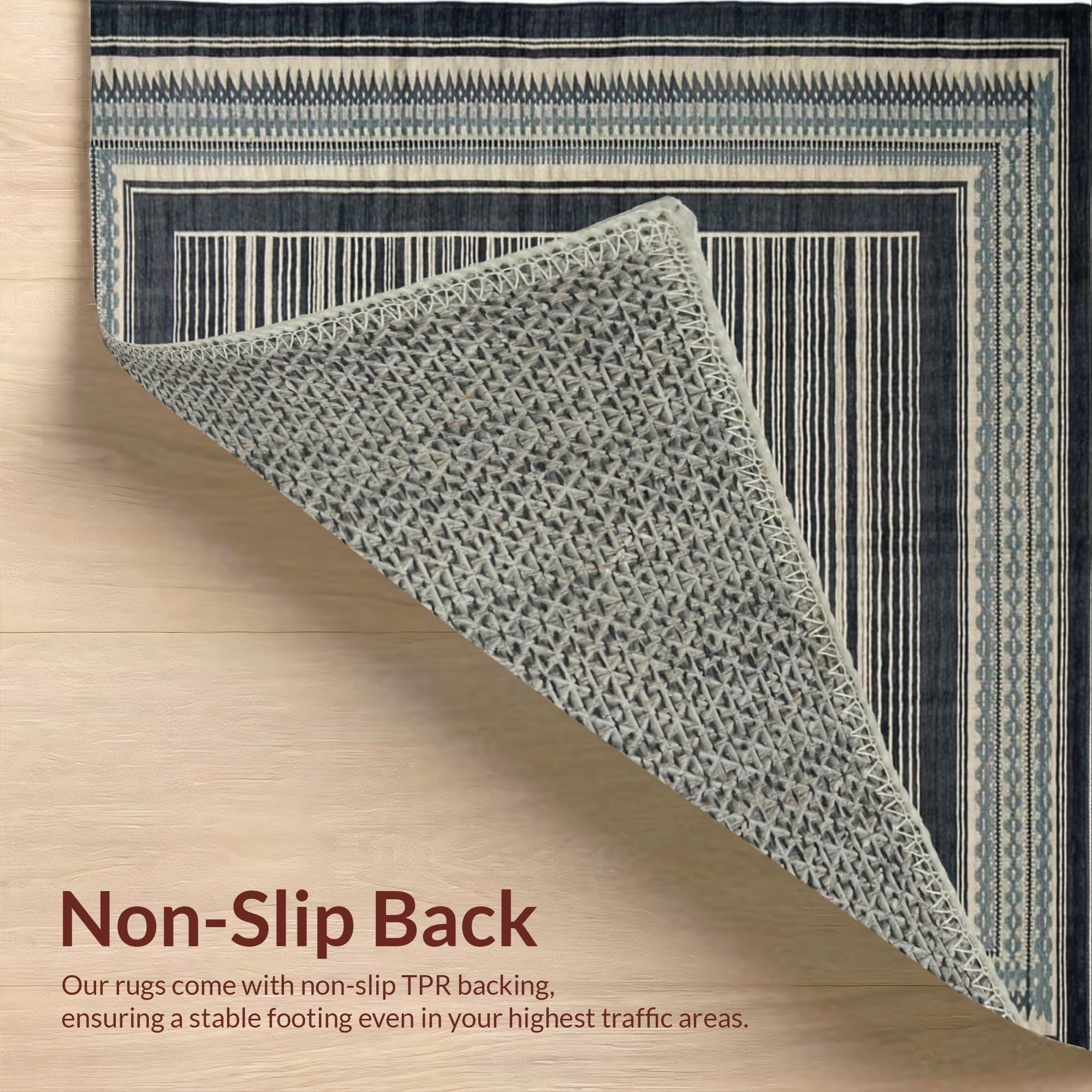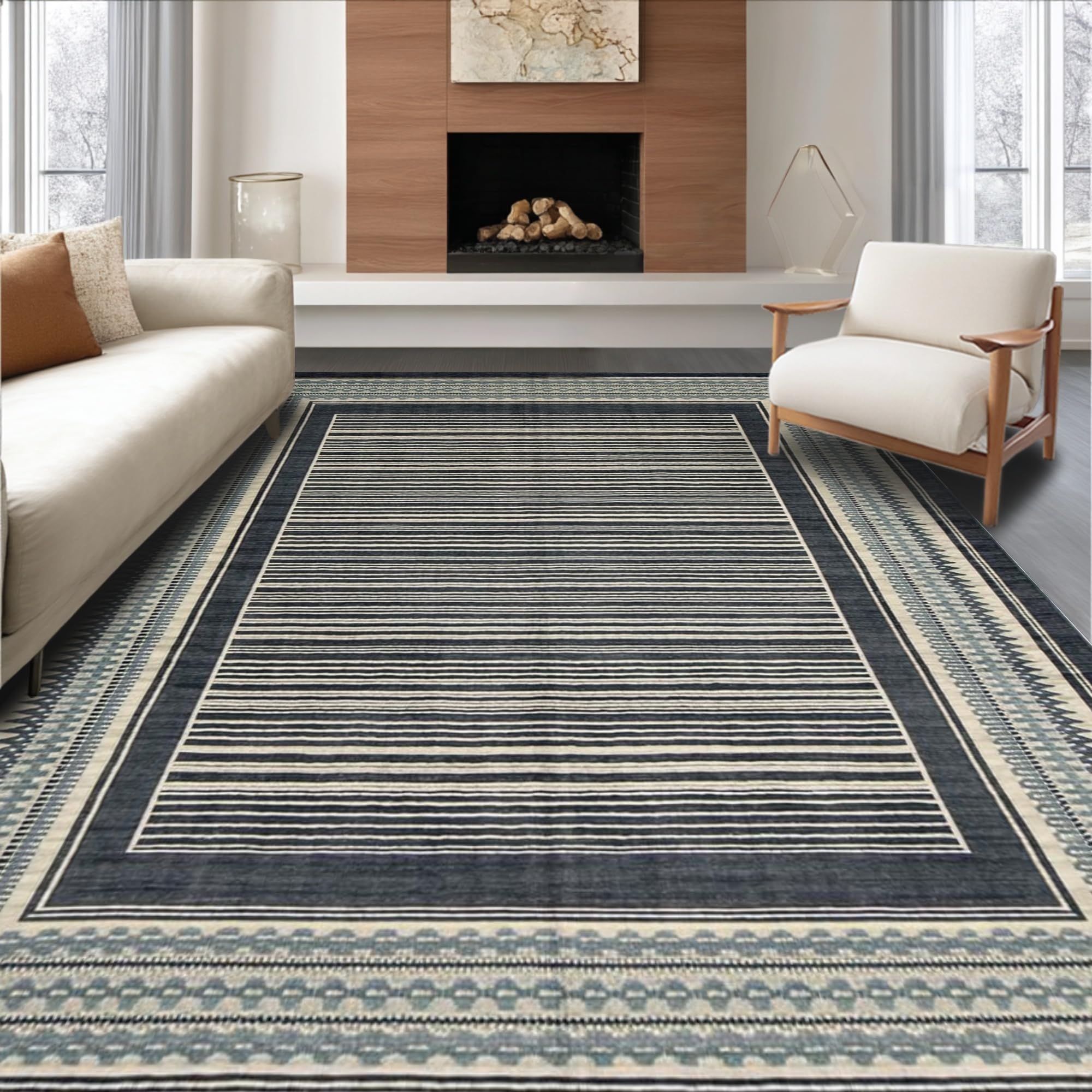 Ultra Soft Area Rug, Non Slip, Stain Resistant, Washable Area Rugs for Living Room, Bedroom, Chic Modern Border Aesthetic(Blue) Overview: