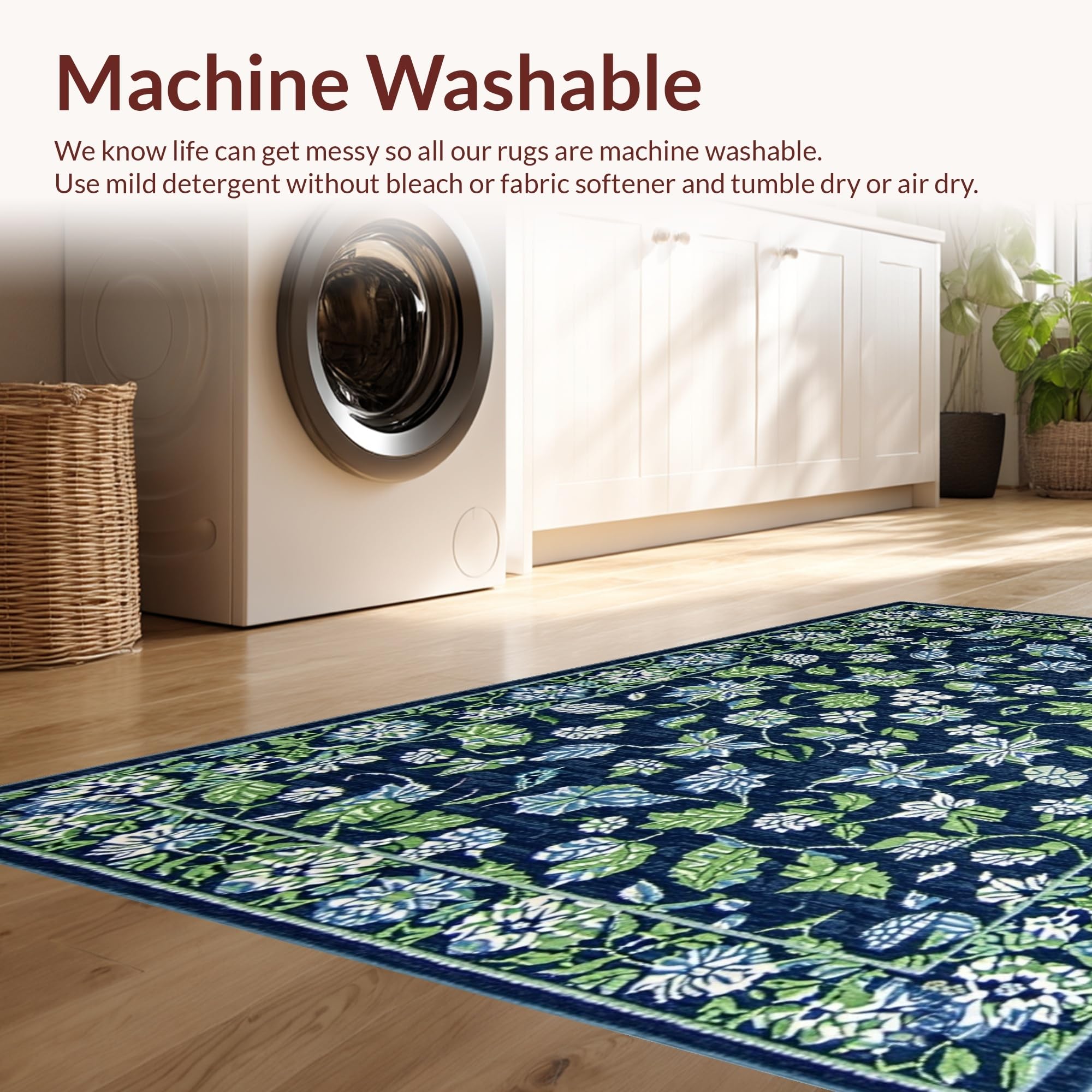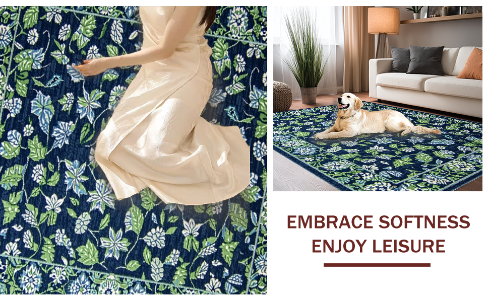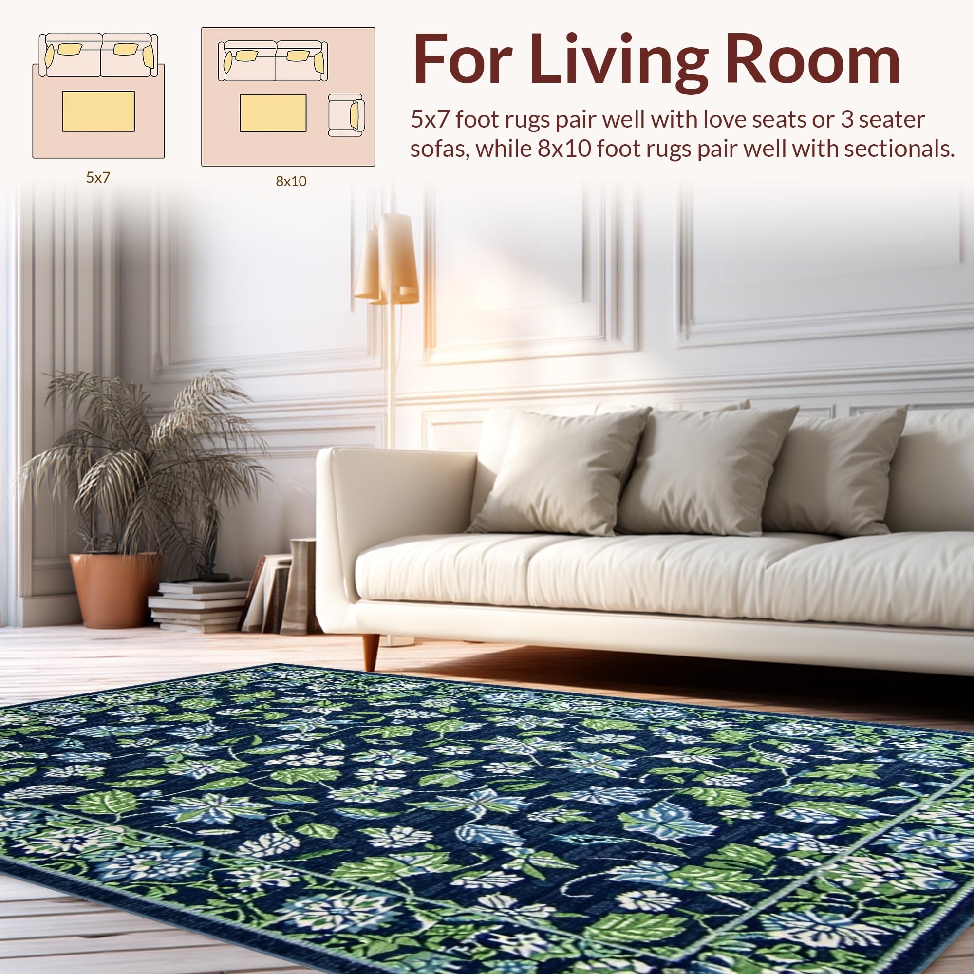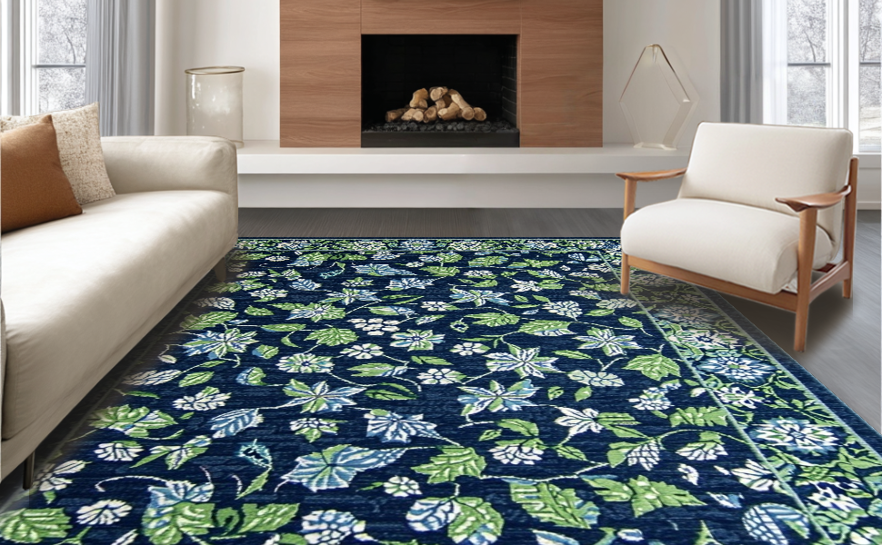 Ultra Soft Area Rug, Non Slip, Stain Resistant, Washable Area Rugs for Living Room, Bedroom, Chic Modern Botanical Inspiration(Blue) Overview: