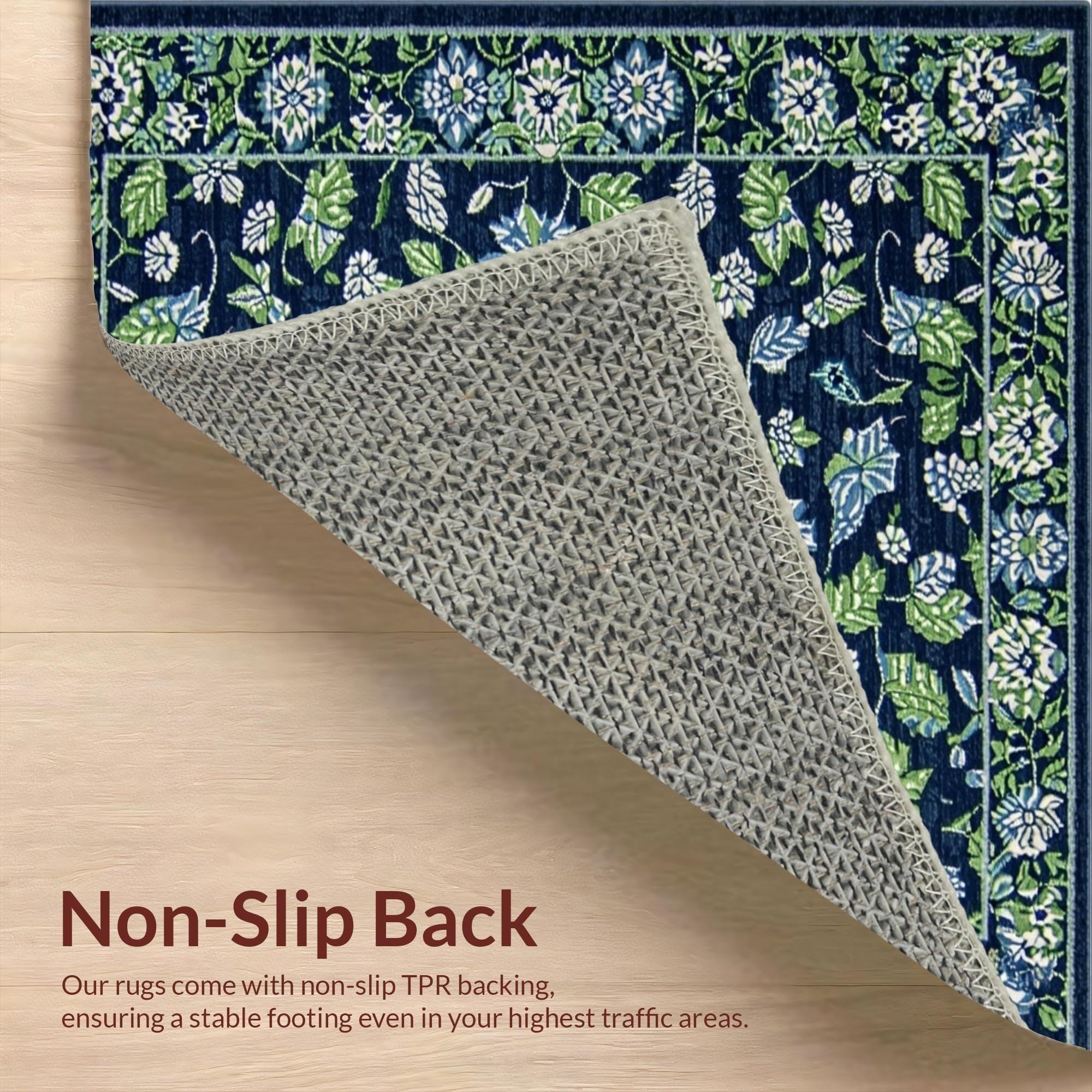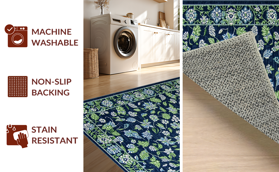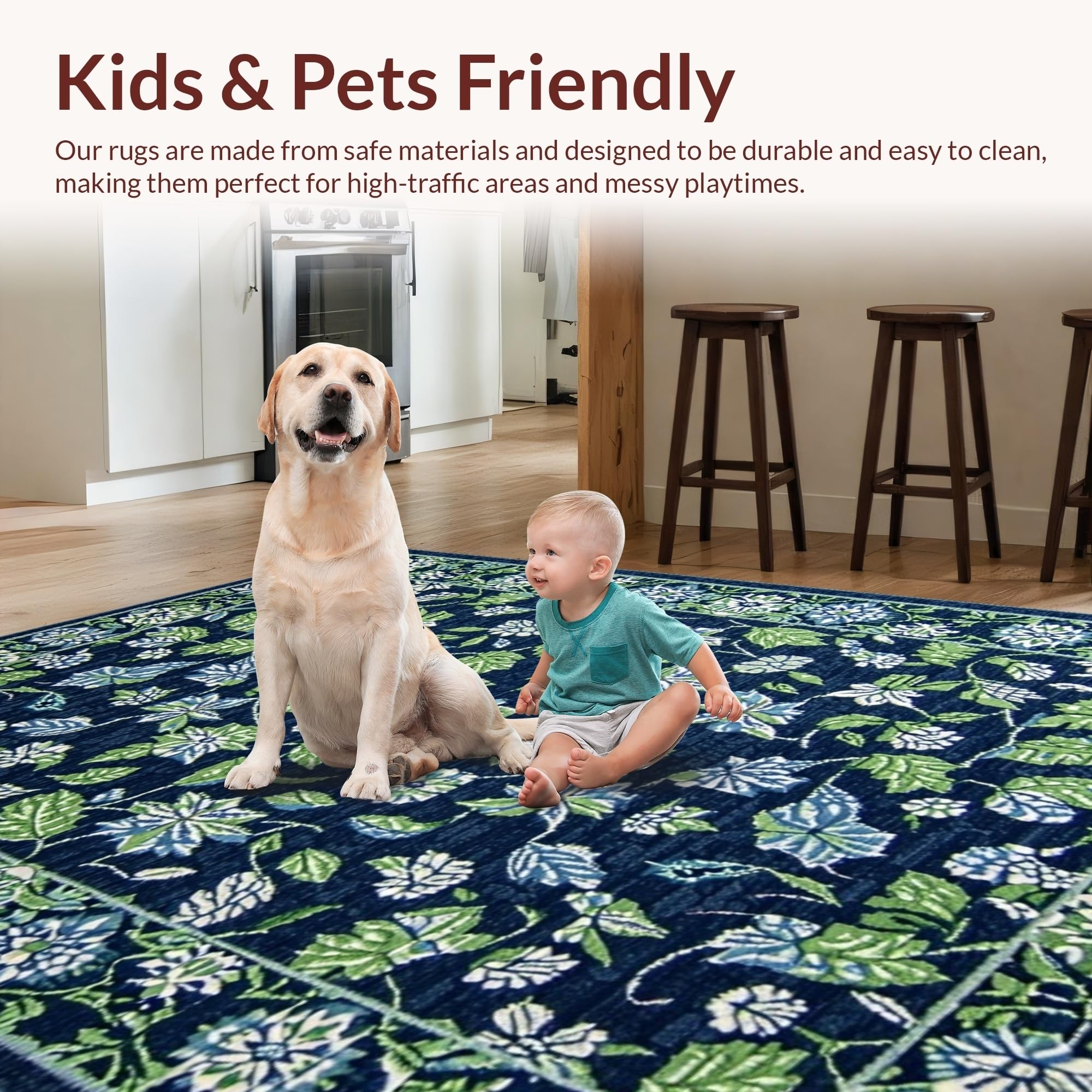 Ultra Soft Area Rug, Non Slip, Stain Resistant, Washable Area Rugs for Living Room, Bedroom, Chic Modern Botanical Inspiration(Blue) Overview: