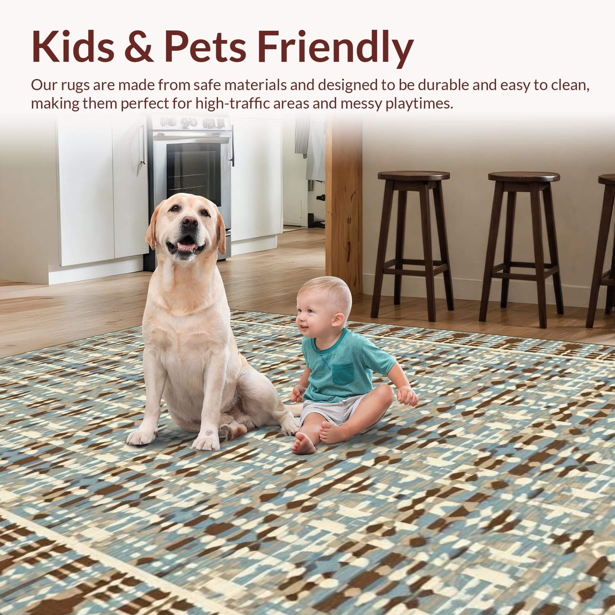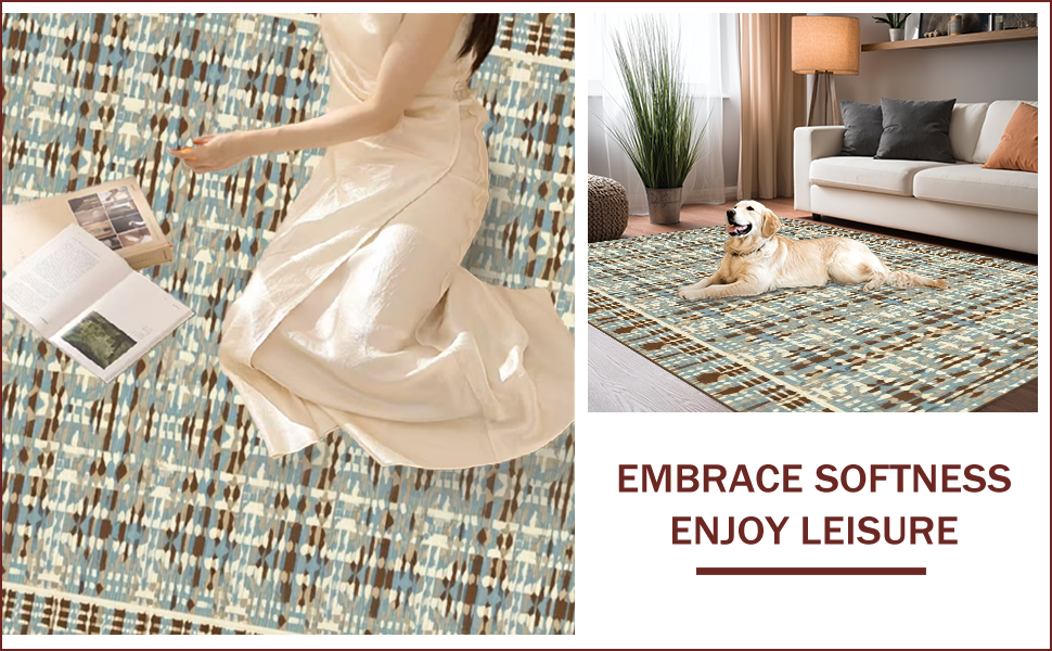 Ultra Soft Area Rug, Non Slip, Stain Resistant, Washable Area Rugs for Living Room, Bedroom, Chic Modern Checkerboard Aesthetic(Blue) Overview: