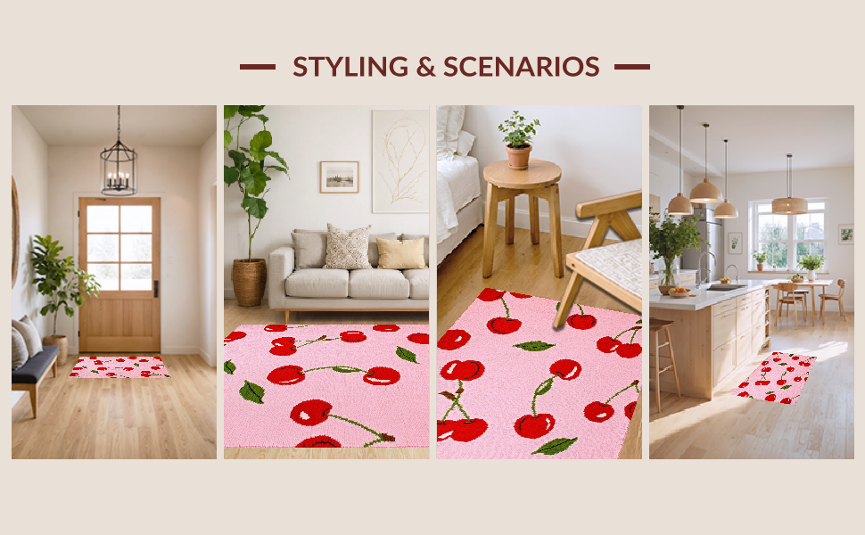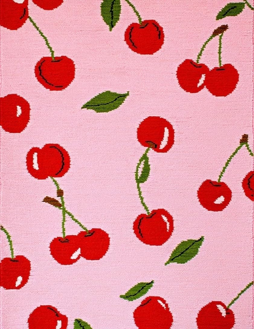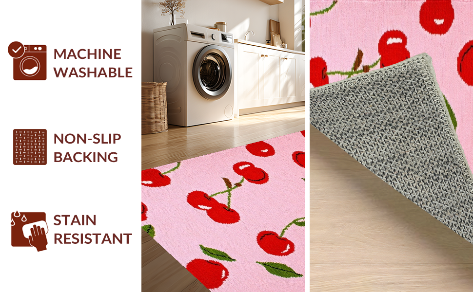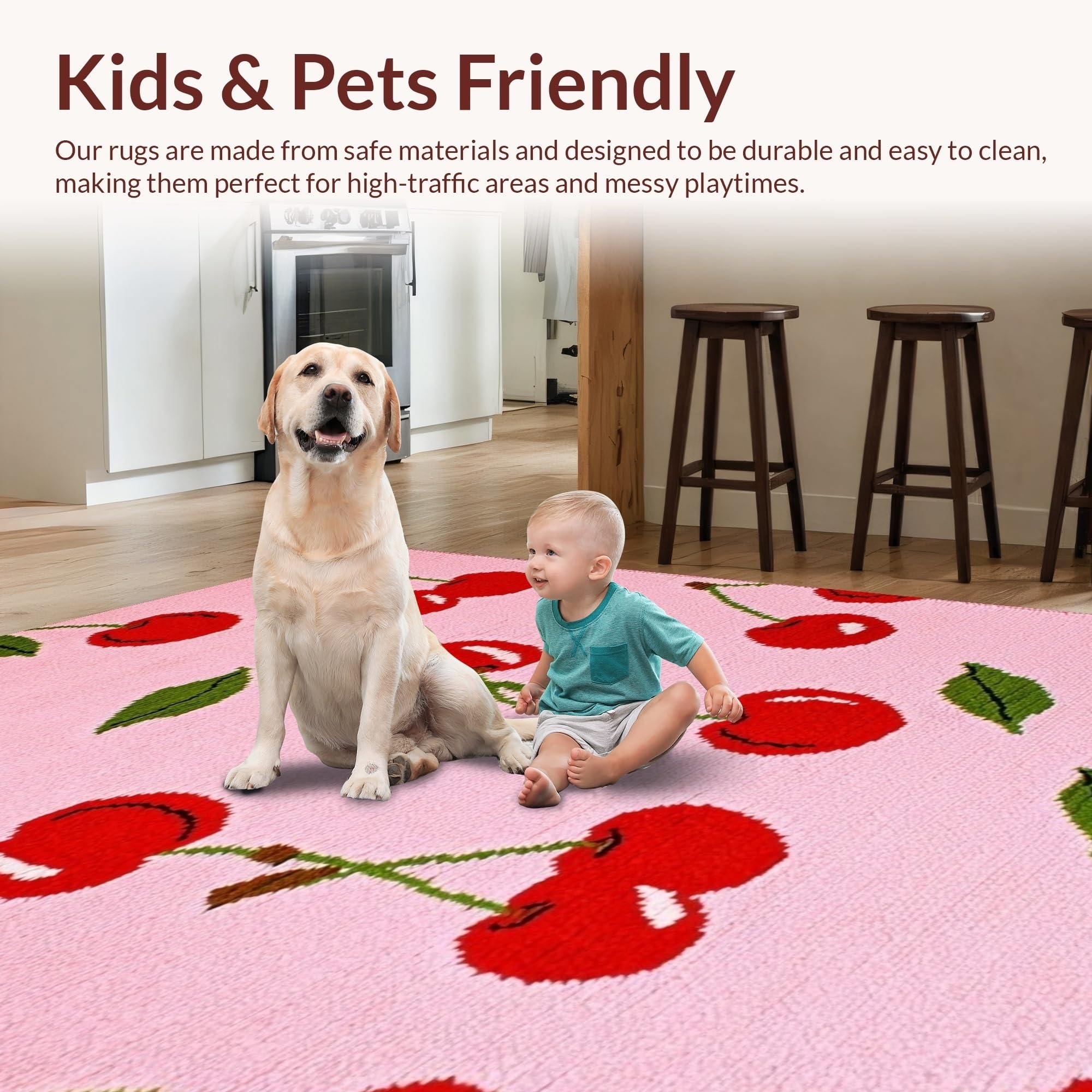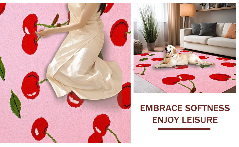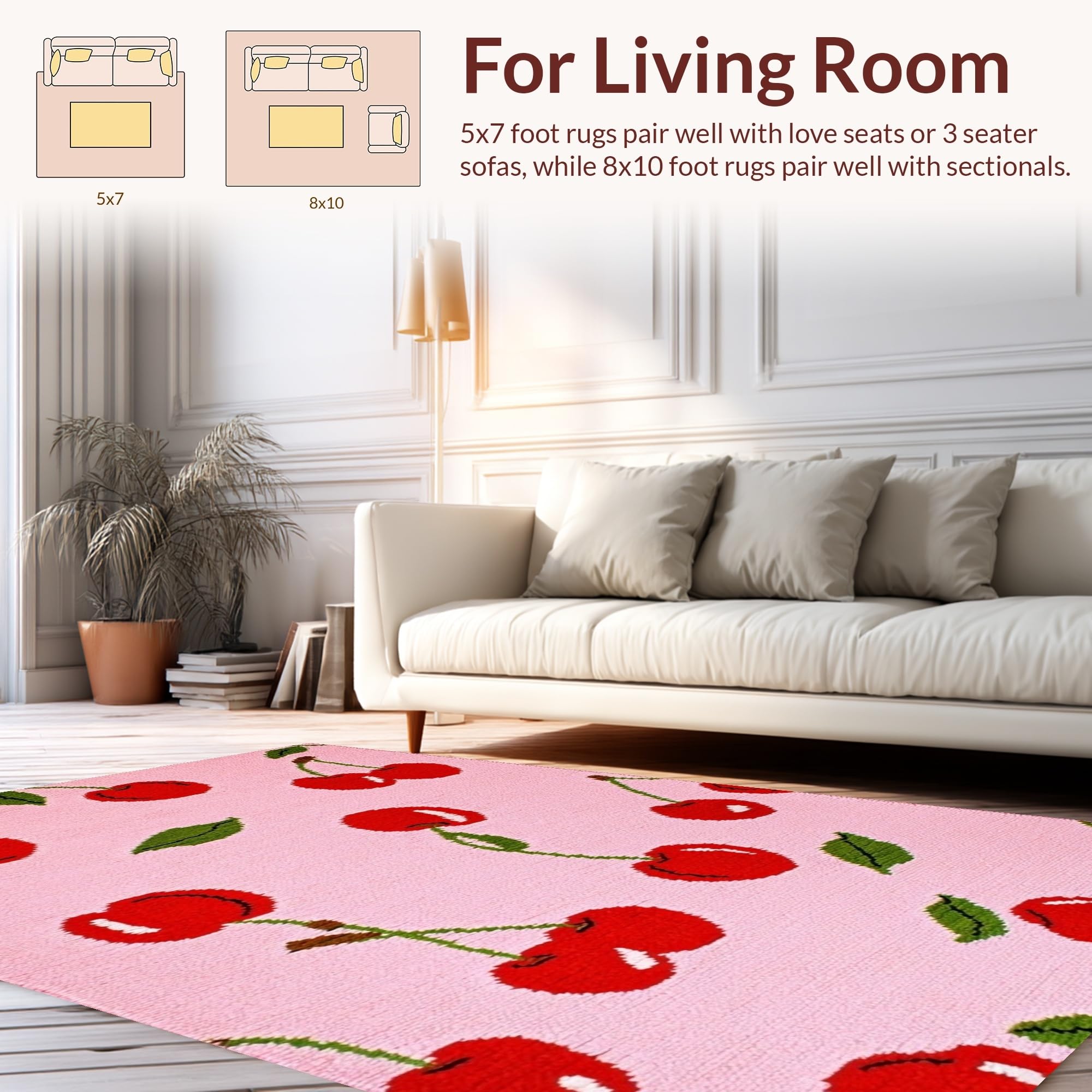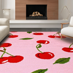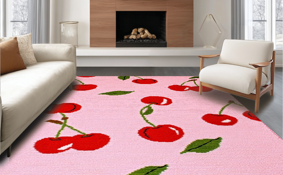 Ultra Soft Area Rug, Non Slip, Stain Resistant, Washable Area Rugs for Living Room, Bedroom, Chic Modern Cherry Illustration(Pink) Overview: