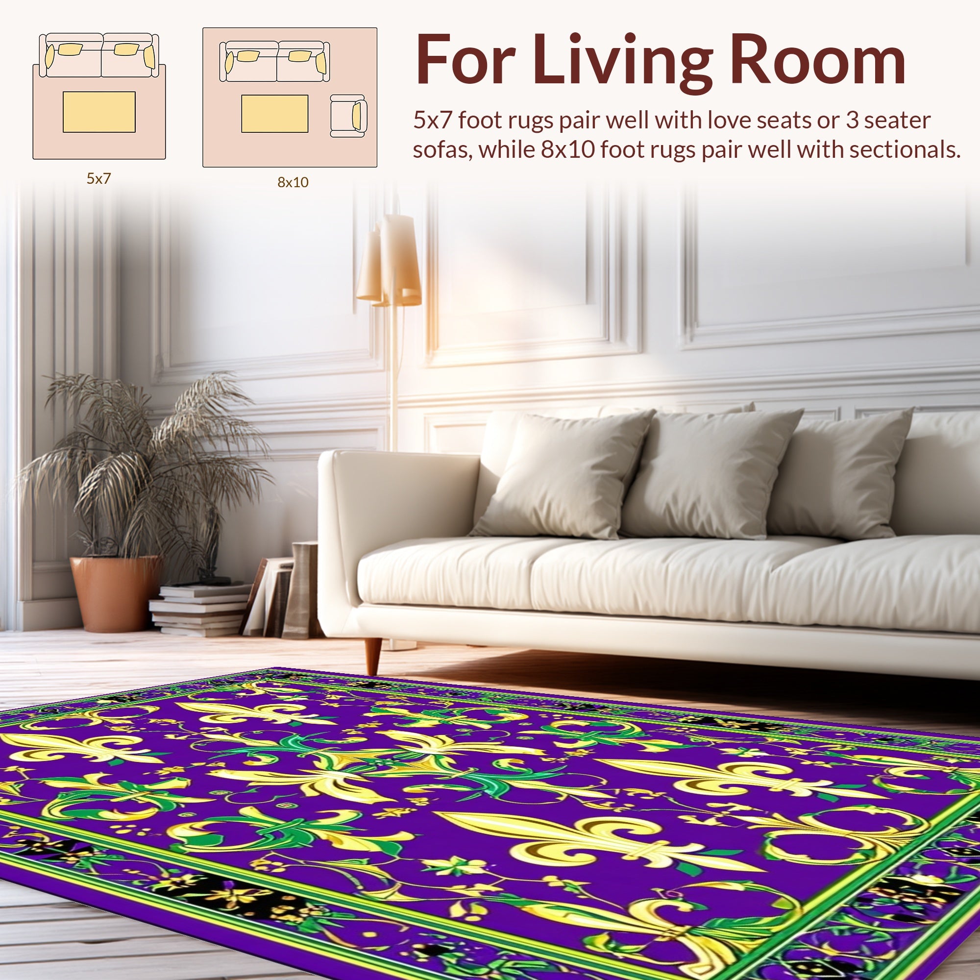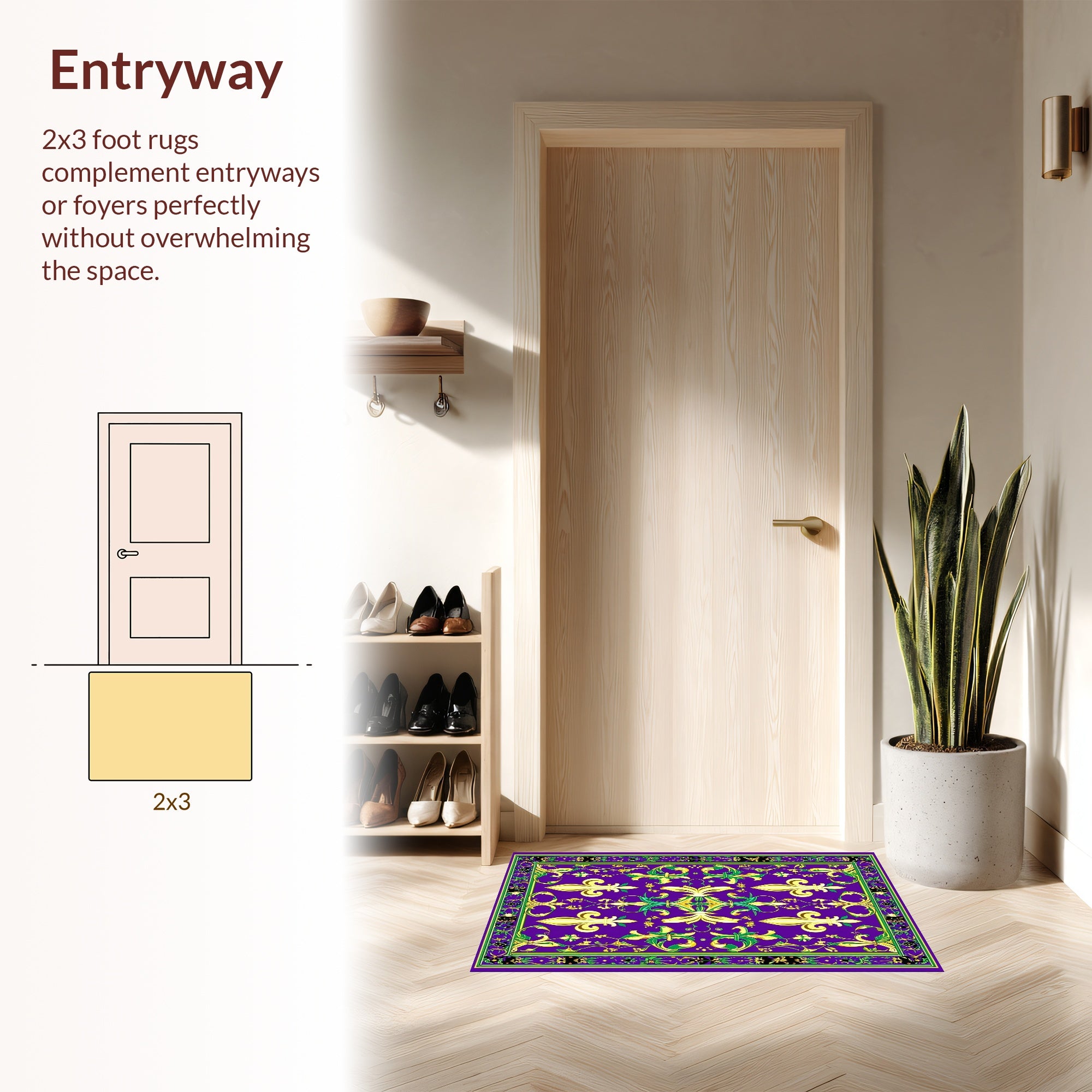 Flatwoven High Traffic Area Rug, Chic Modern Festival Motif, Non Slip, Stain Resistant, Washable Area Rugs for Living Room, Bedroom (Purple) Overview: