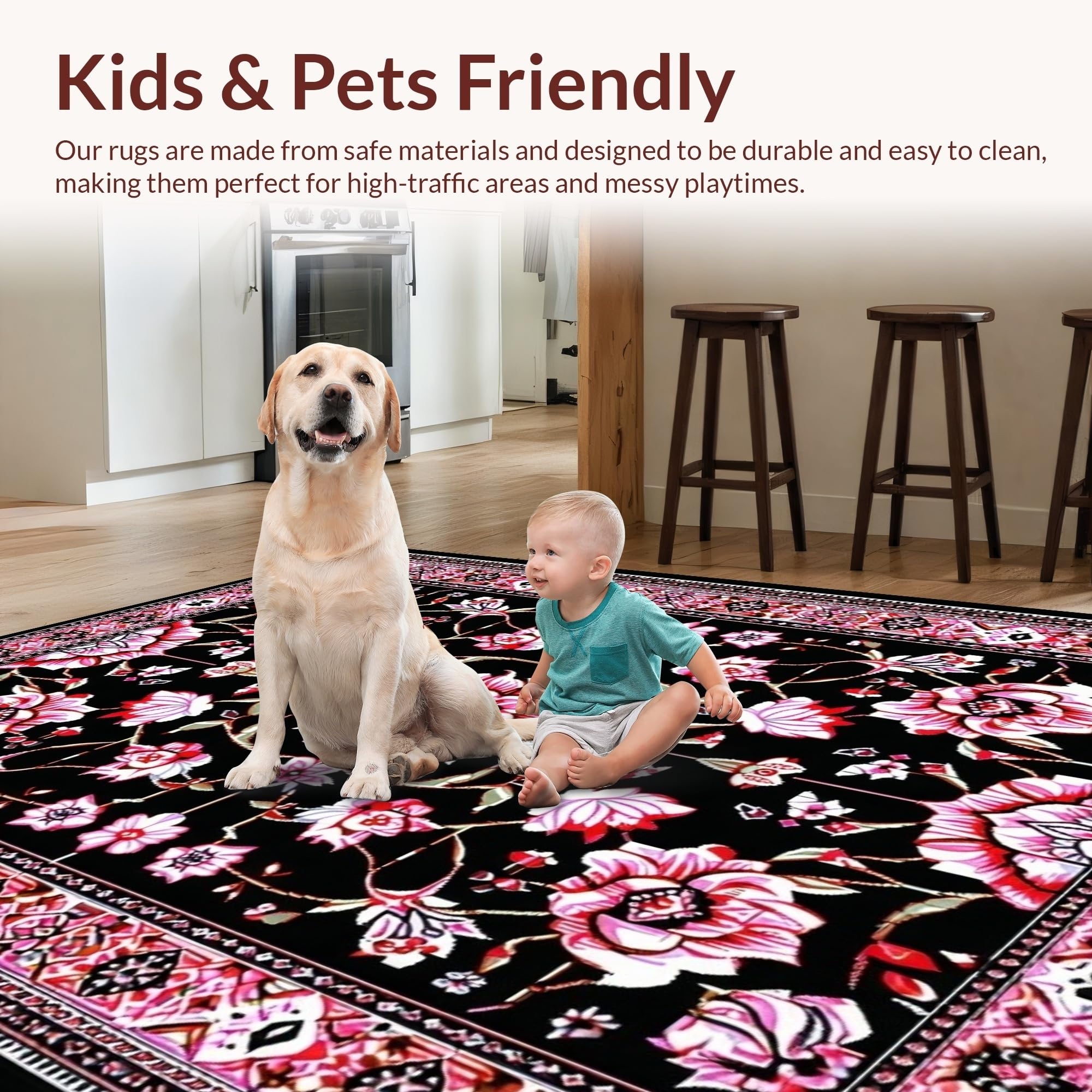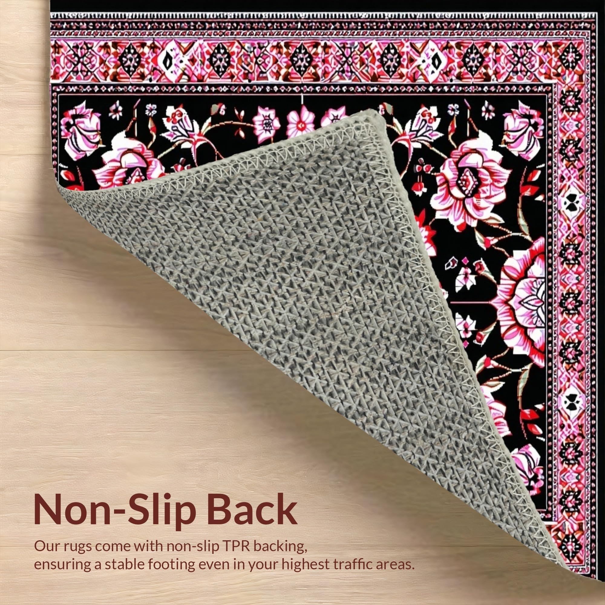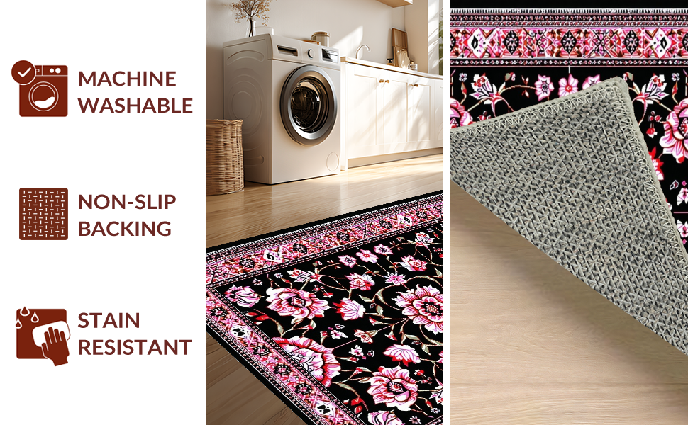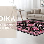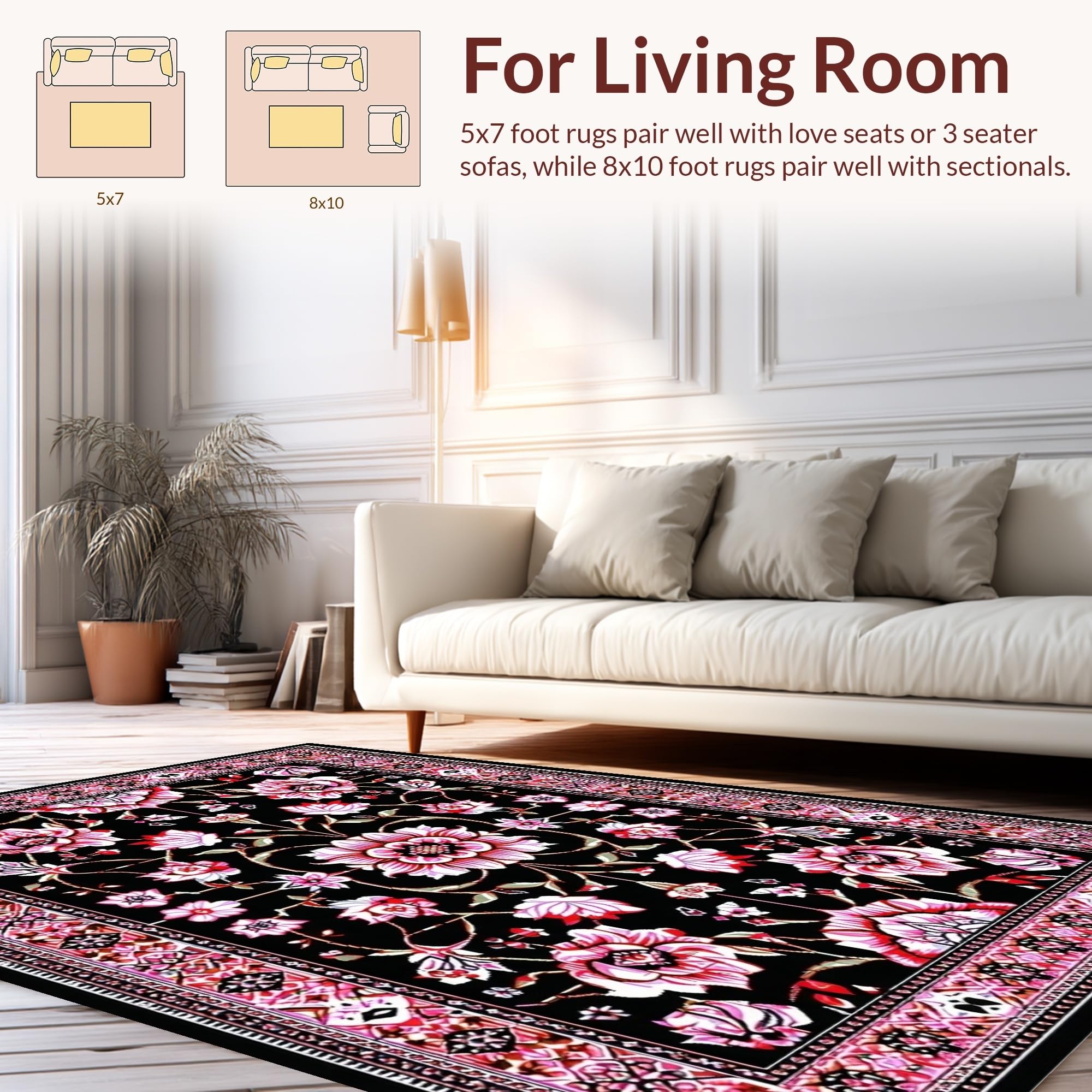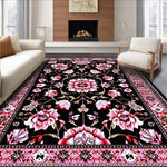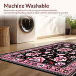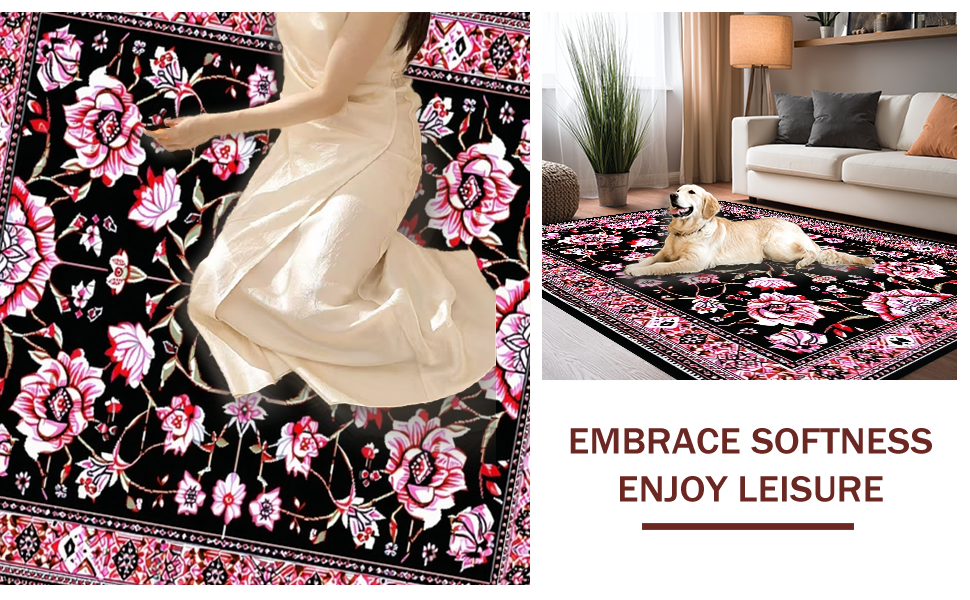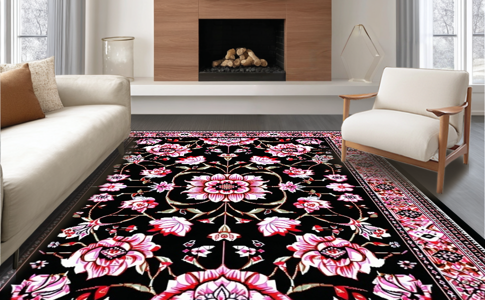 Ultra Soft Area Rug, Non Slip, Stain Resistant, Washable Area Rugs for Living Room, Bedroom, Chic Modern Flower Arrangement(Black) Overview: