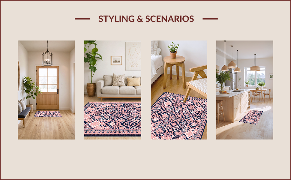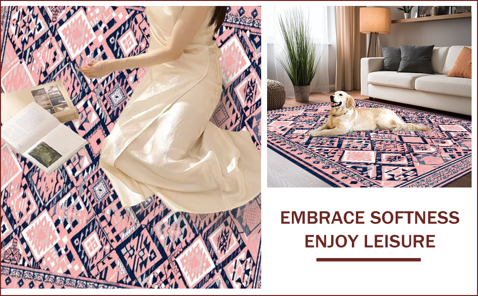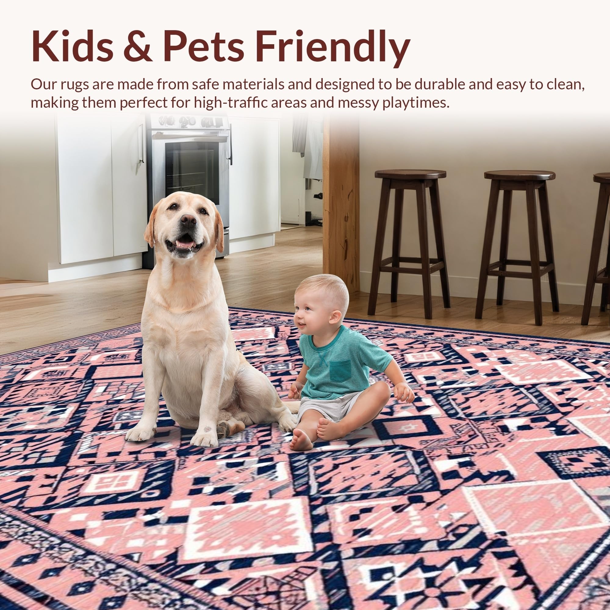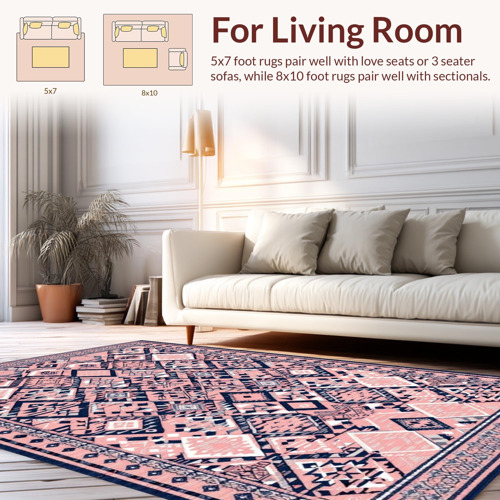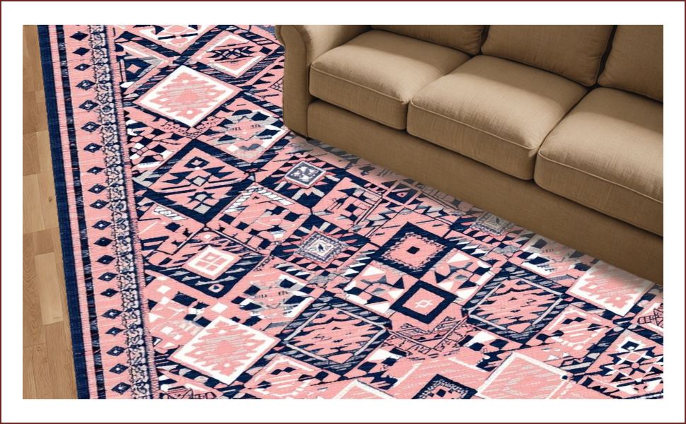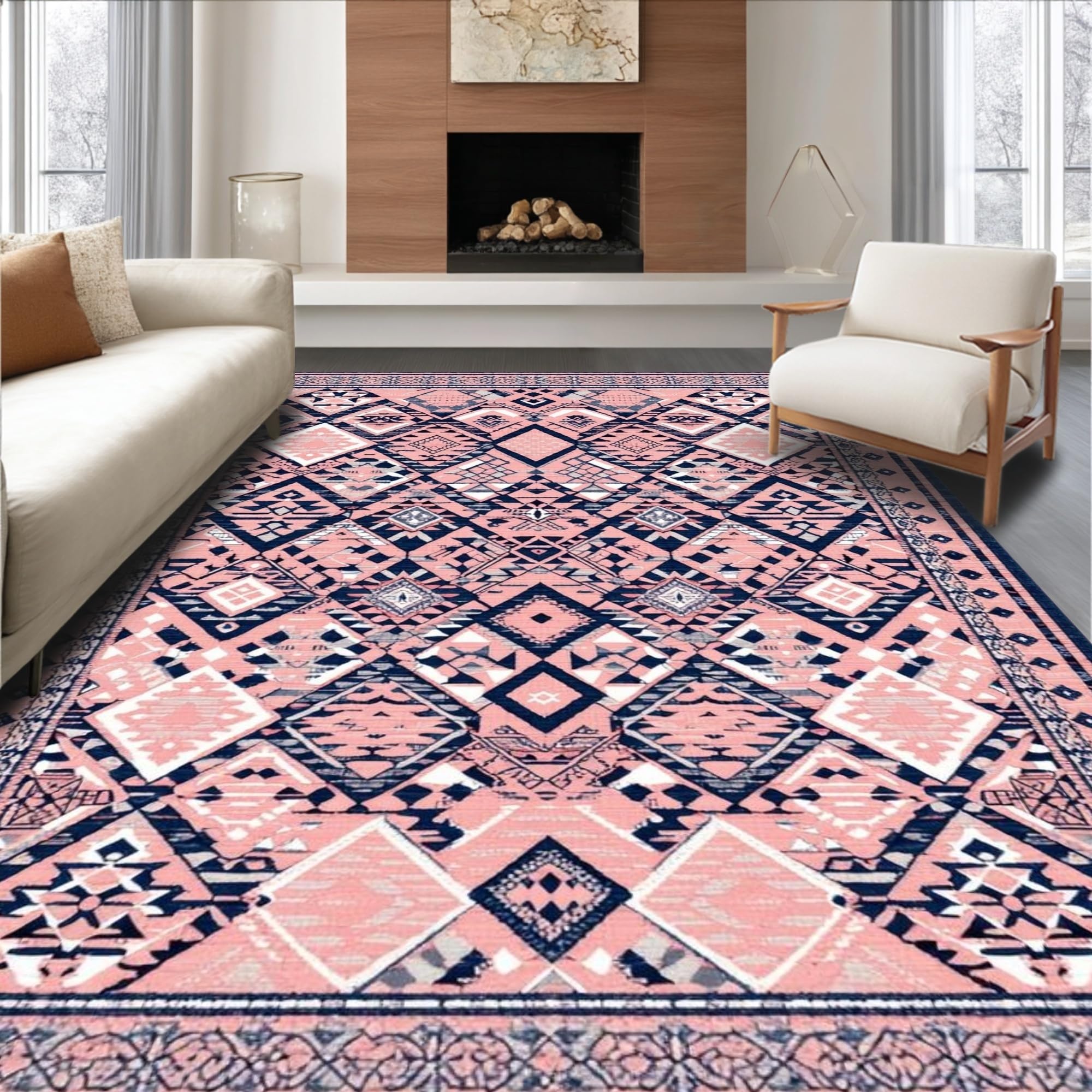 Ultra Soft Area Rug, Non Slip, Stain Resistant, Washable Area Rugs for Living Room, Bedroom, Chic Modern Geometric Harmony(Pink) Overview: