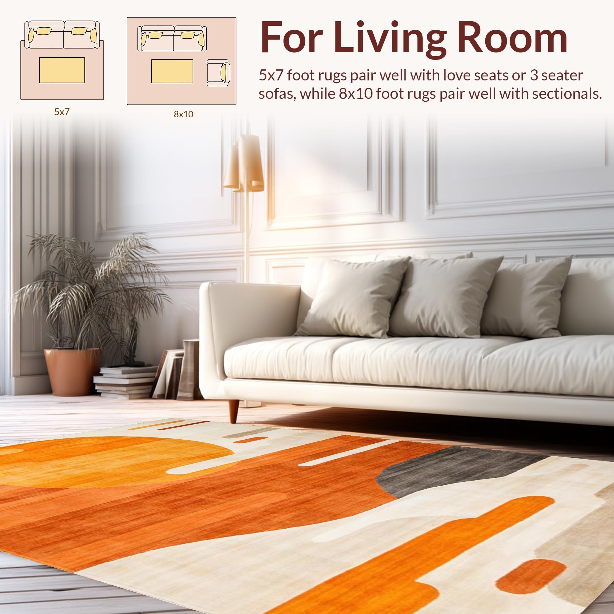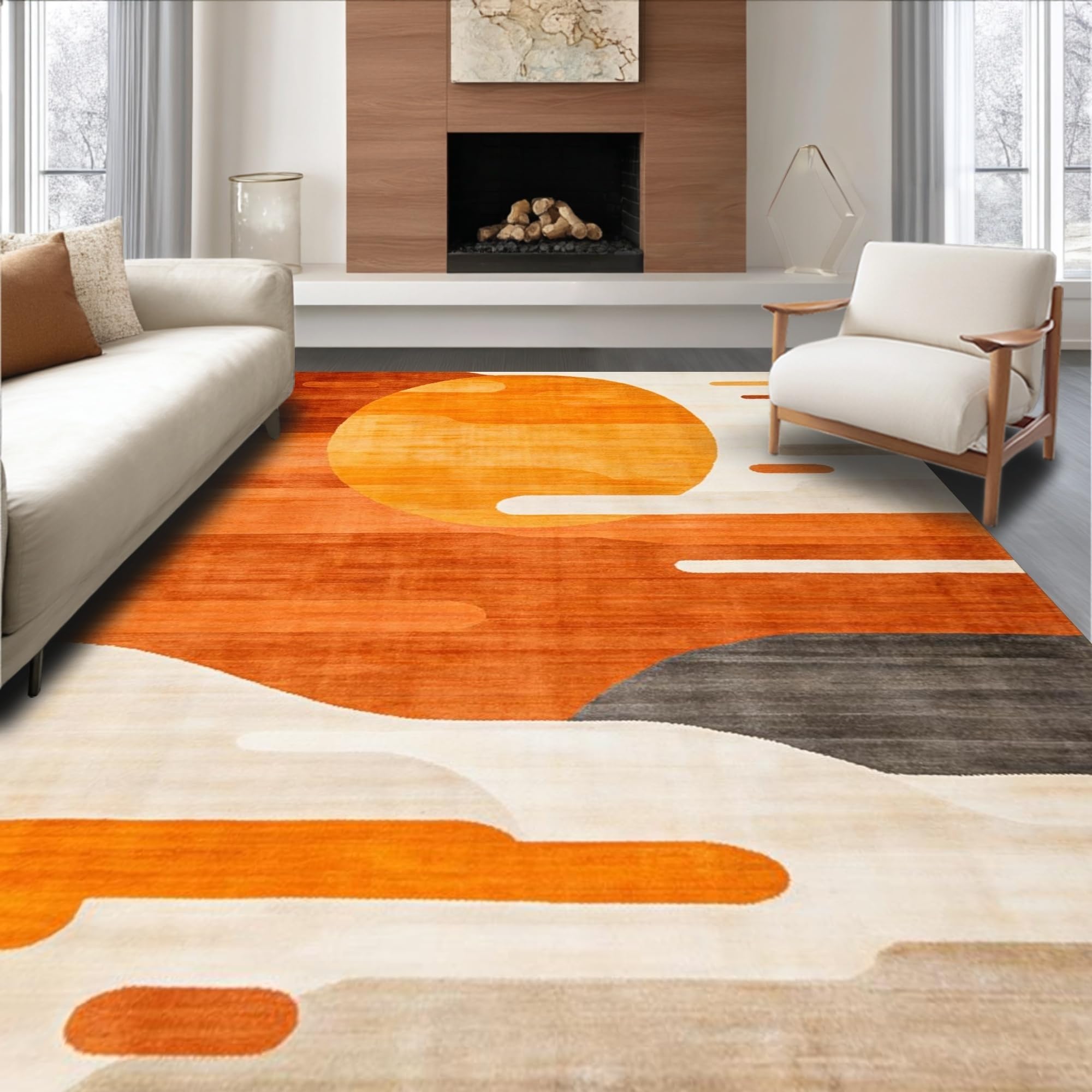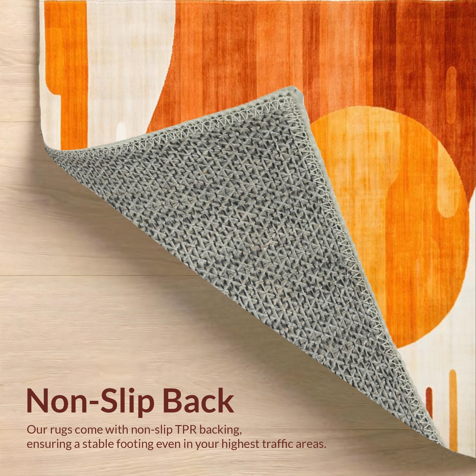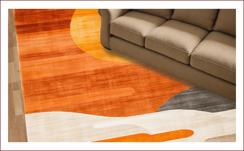 Ultra Soft Area Rug, Non Slip, Stain Resistant, Washable Area Rugs for Living Room, Bedroom, Chic Modern Geometric Sunburst Design(Orange) Overview: