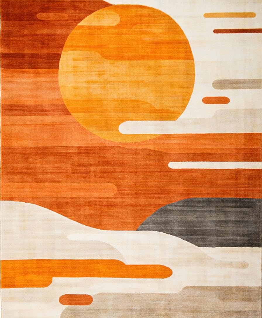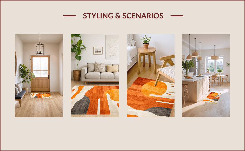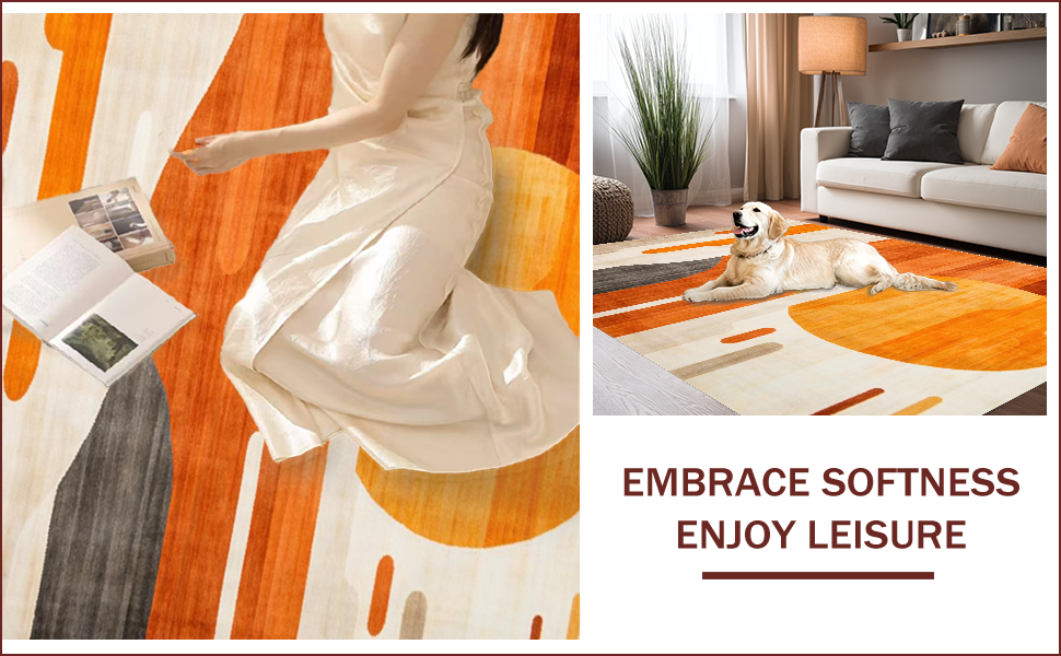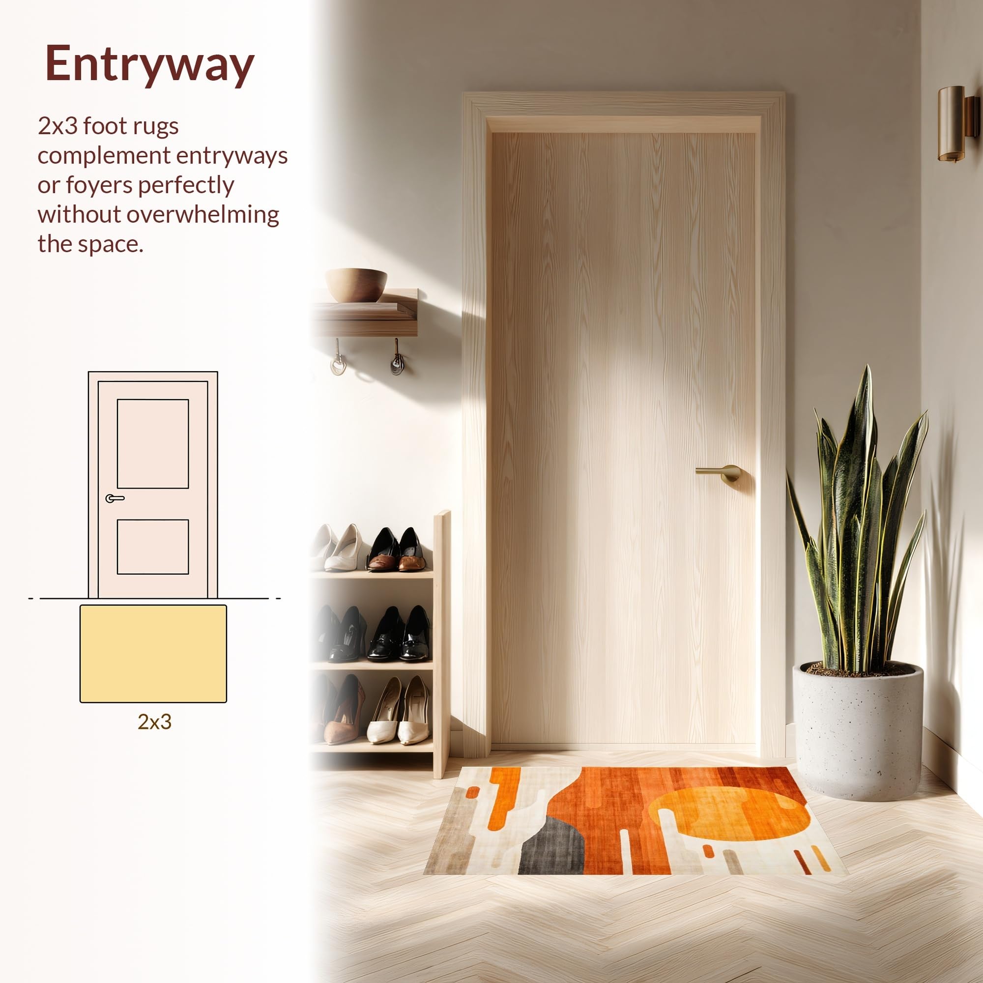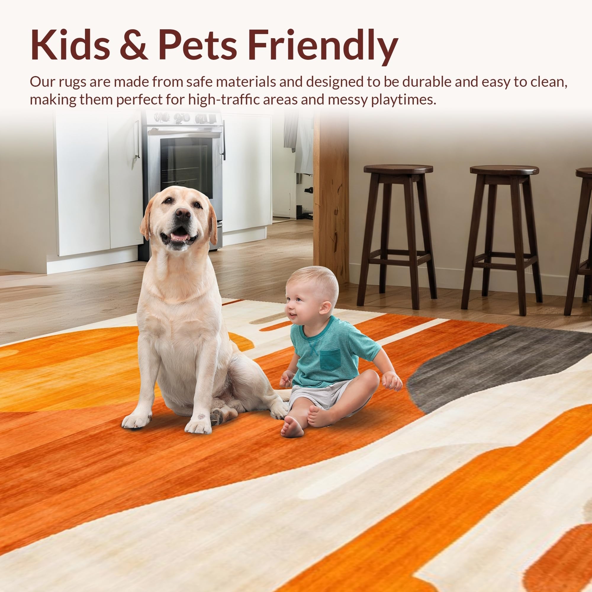 Ultra Soft Area Rug, Non Slip, Stain Resistant, Washable Area Rugs for Living Room, Bedroom, Chic Modern Geometric Sunburst Design(Orange) Overview: