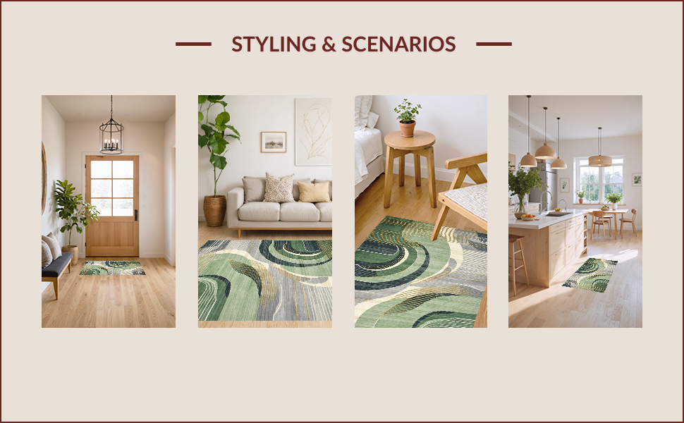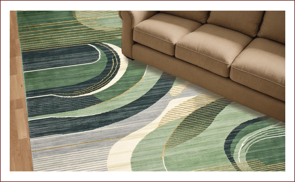 Ultra Soft Area Rug, Non Slip, Stain Resistant, Washable Area Rugs for Living Room, Bedroom, Chic Modern Organic Geometric Design(Green) Overview: