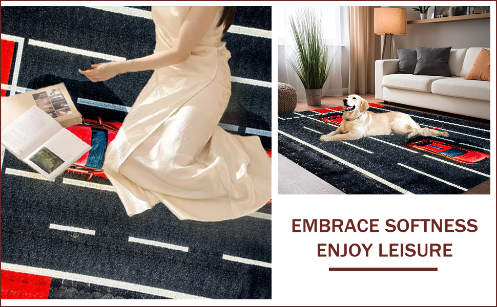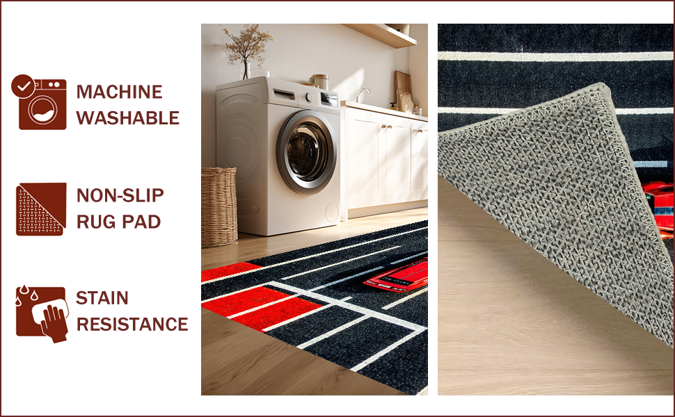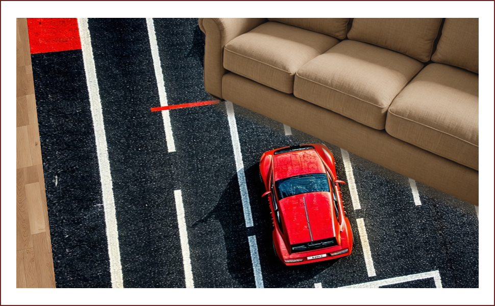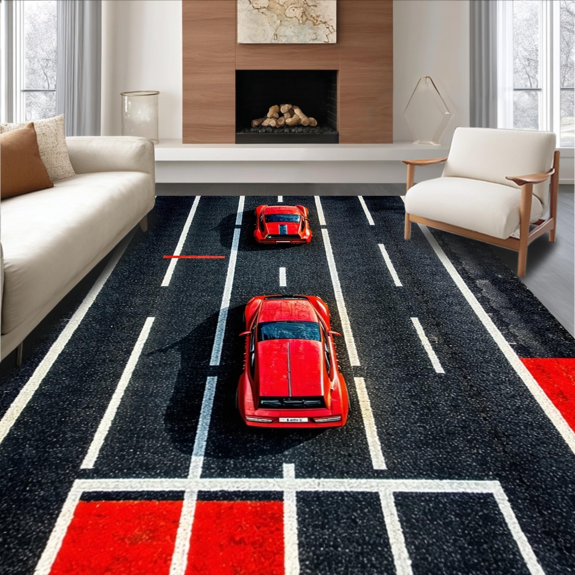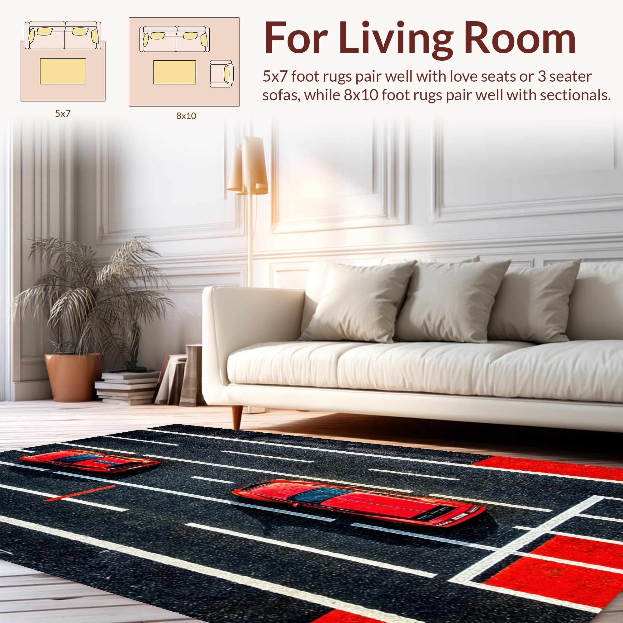 Ultra Soft Area Rug, Non Slip, Stain Resistant, Washable Area Rugs for Living Room, Bedroom, Chic Modern Race Car Motif(Red) Overview: