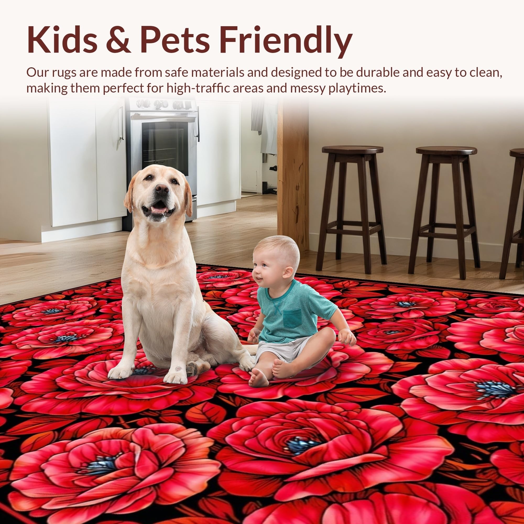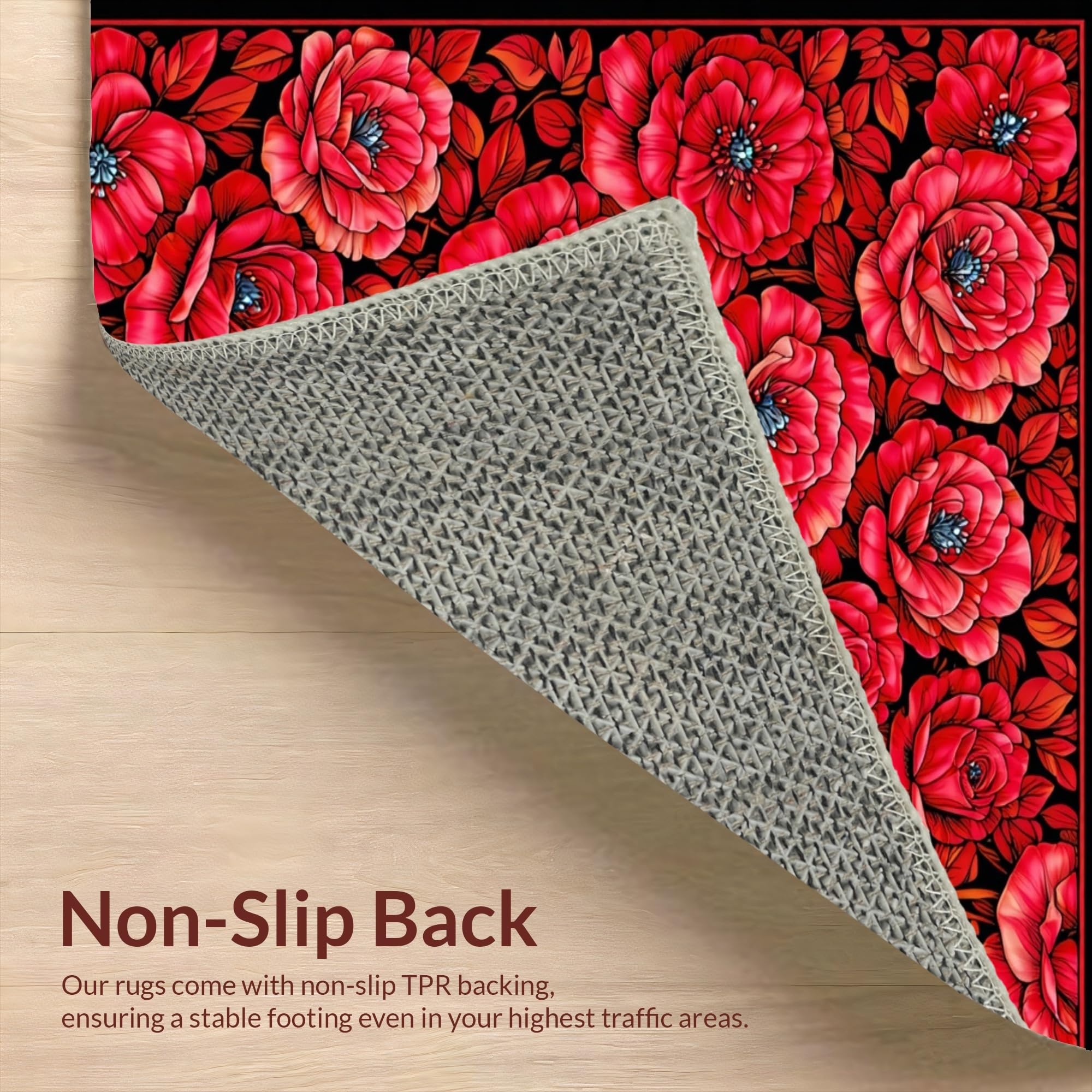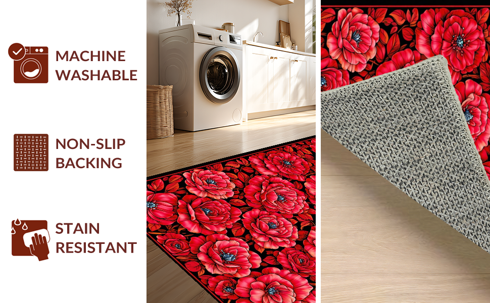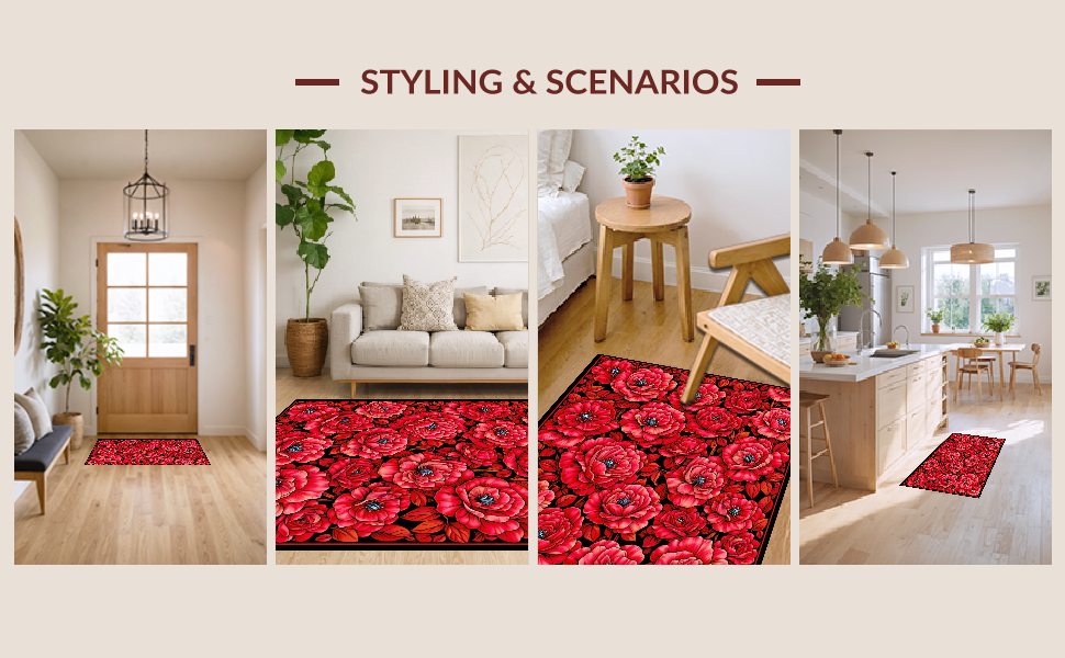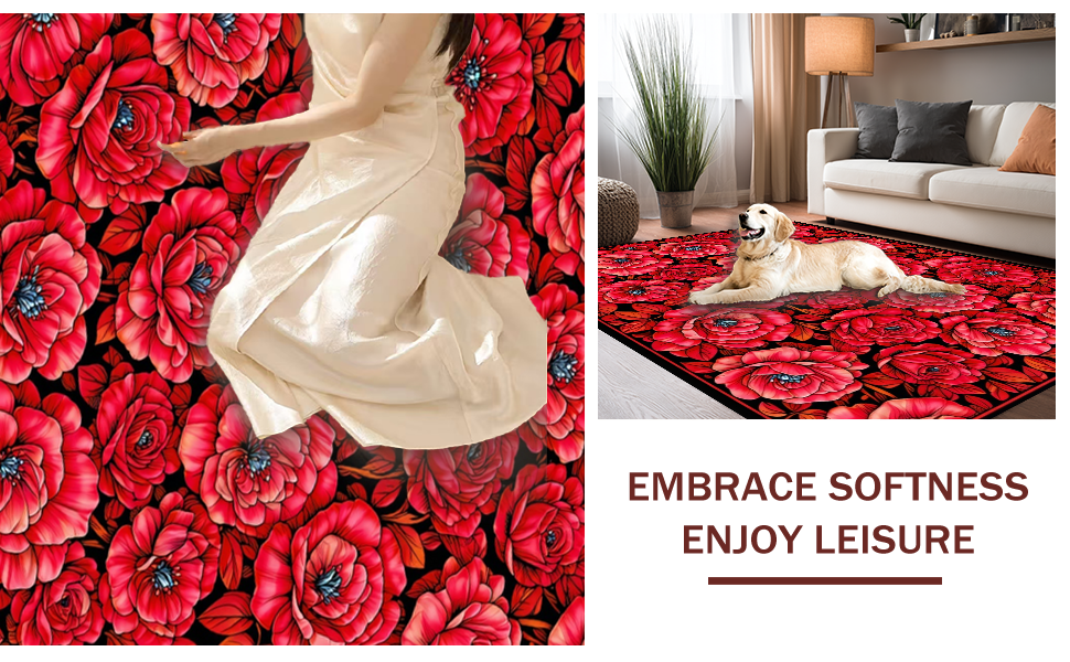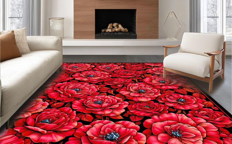 Ultra Soft Area Rug, Non Slip, Stain Resistant, Washable Area Rugs for Living Room, Bedroom, Chic Modern Rose Motif(Red) Overview:
