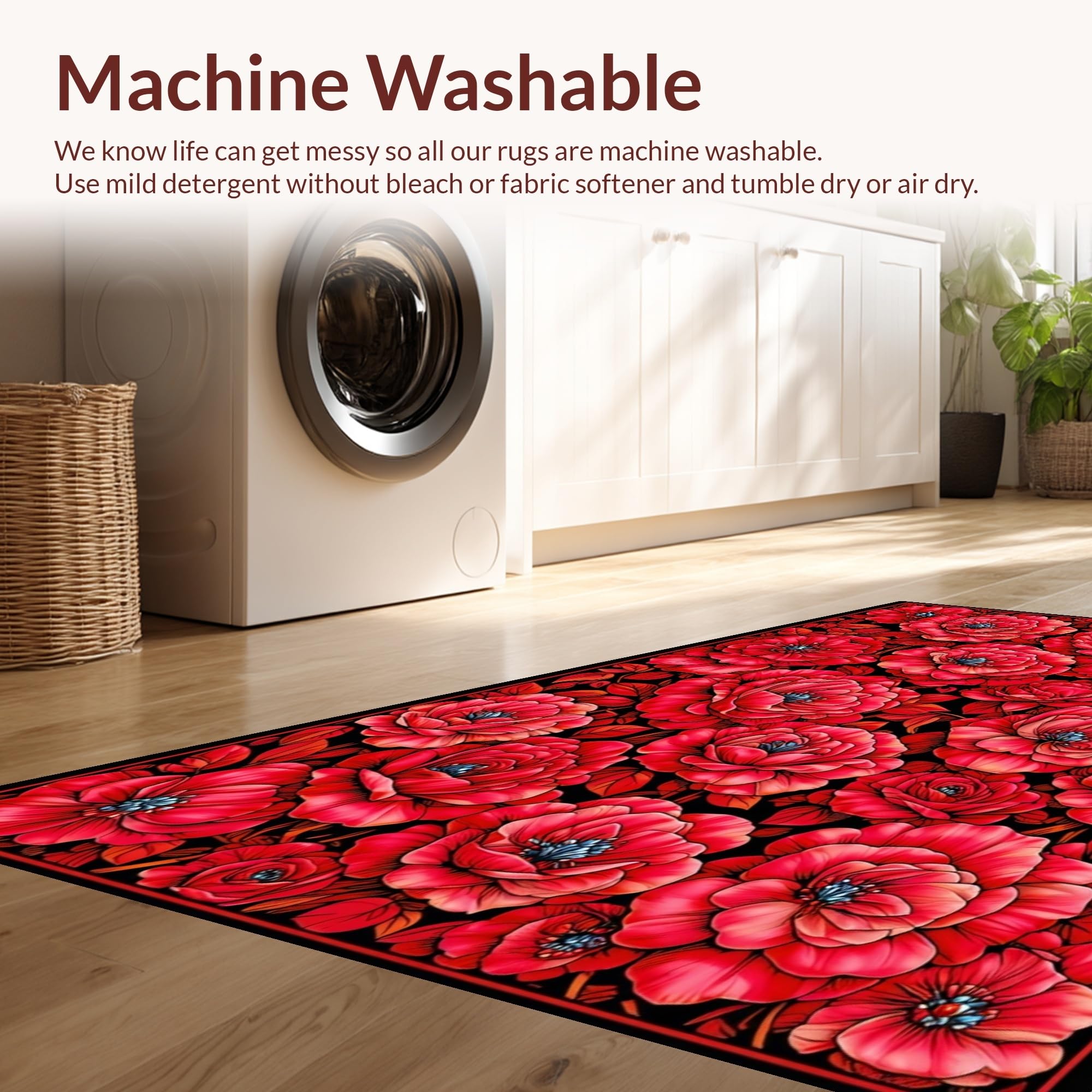 - Machine Washable: Our rugs can be easily thrown in the wash machine.