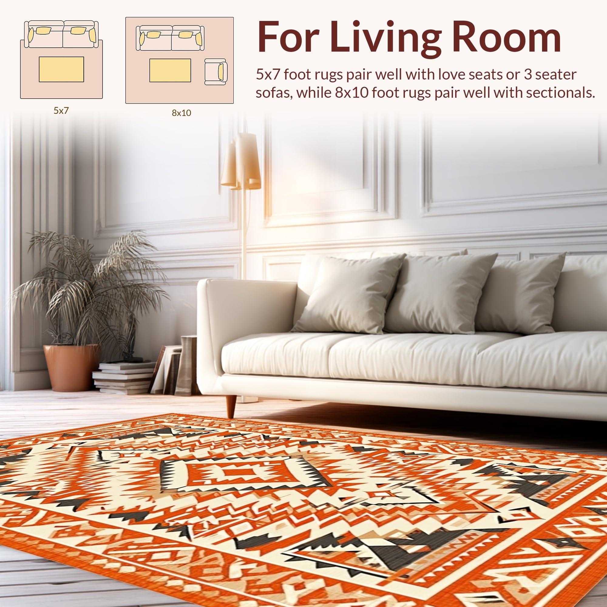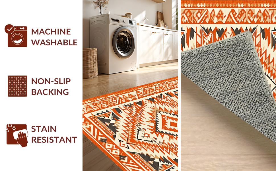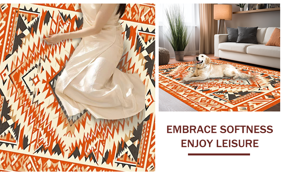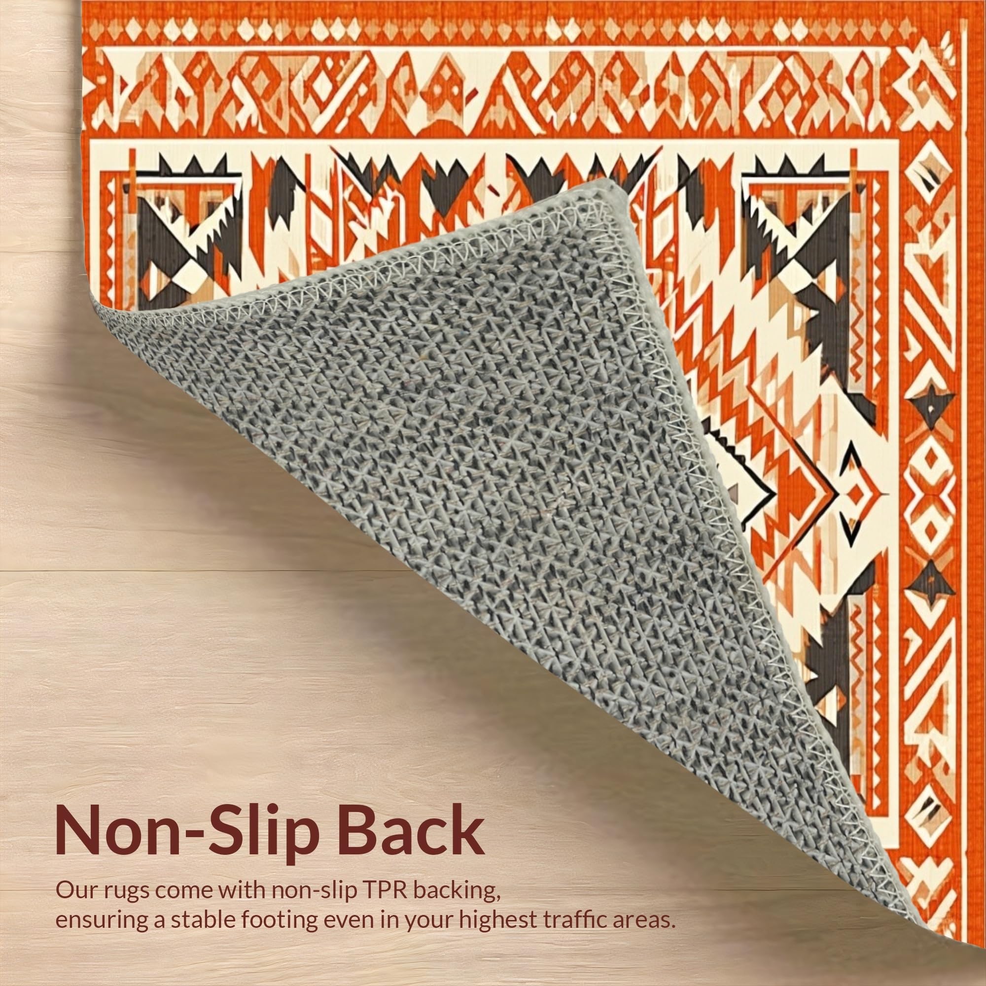 Ultra Soft Area Rug, Non Slip, Stain Resistant, Washable Area Rugs for Living Room, Bedroom, Chic Modern Textured Stripes(Orange) Overview: