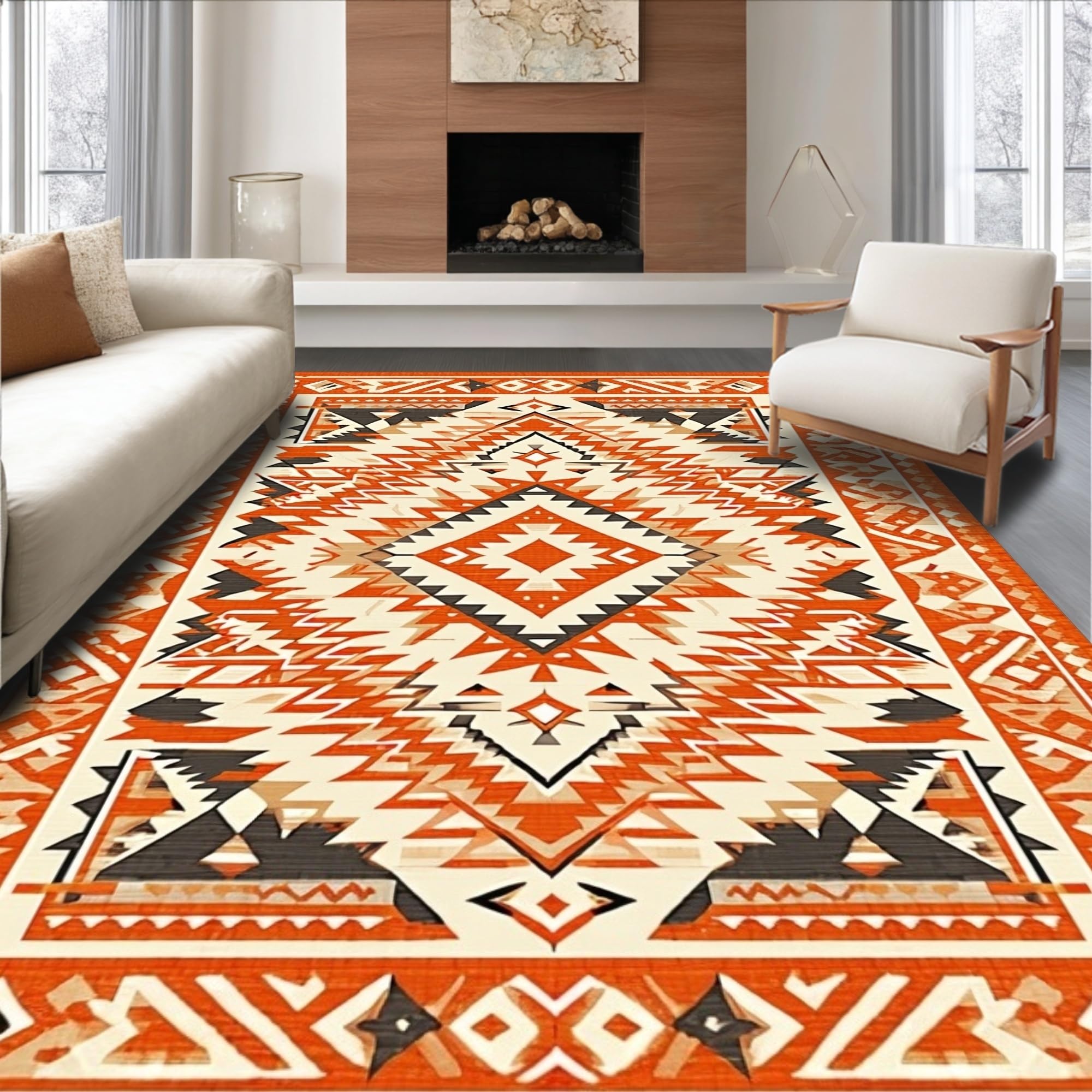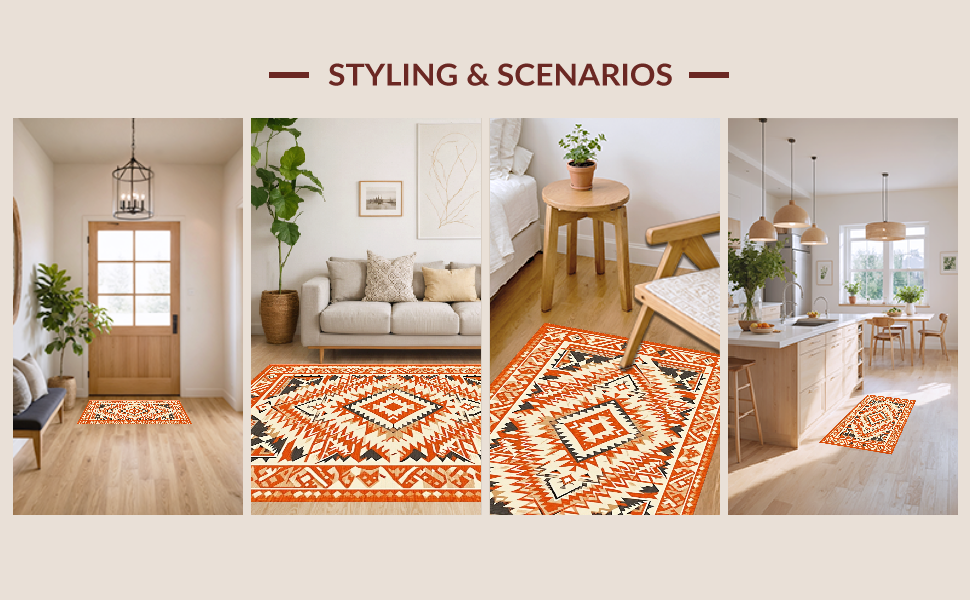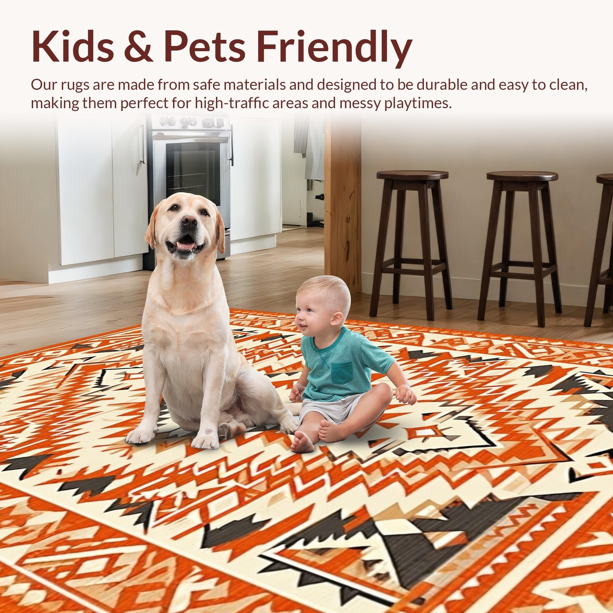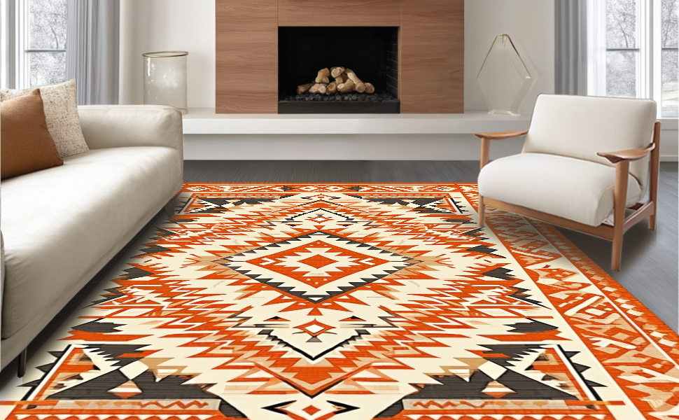 Ultra Soft Area Rug, Non Slip, Stain Resistant, Washable Area Rugs for Living Room, Bedroom, Chic Modern Textured Stripes(Orange) Overview: