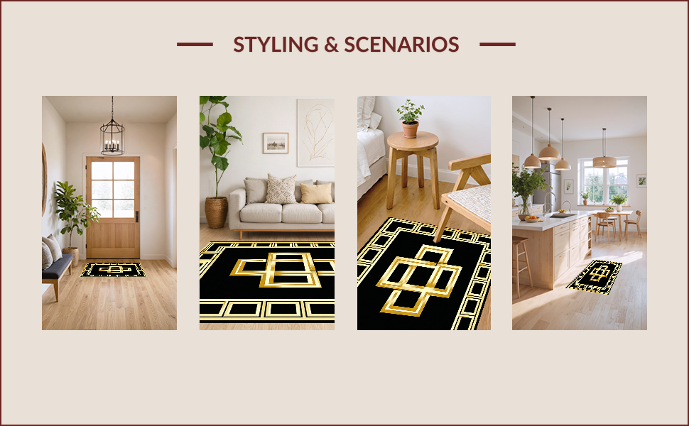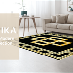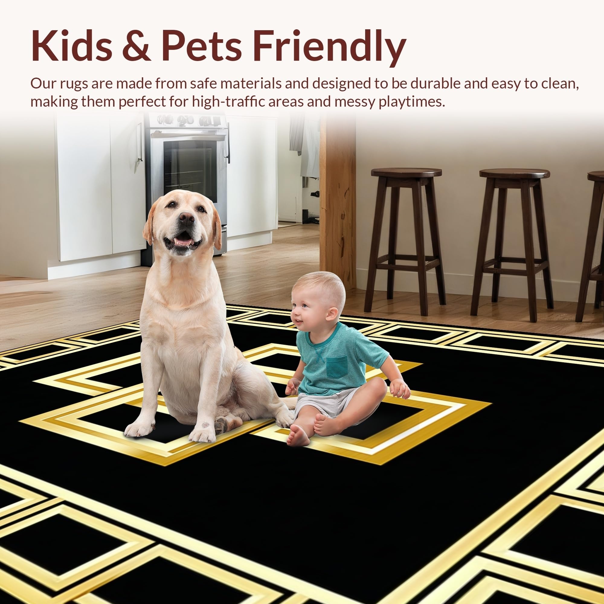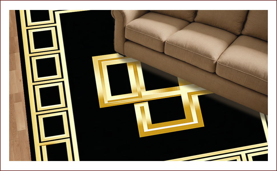 Ultra Soft Area Rug, Non Slip, Stain Resistant, Washable Area Rugs for Living Room, Bedroom, Chic Monochrome Greek Key Motif(Black) Overview: