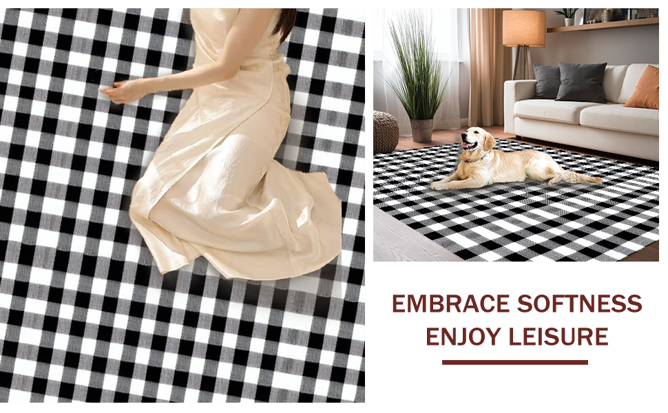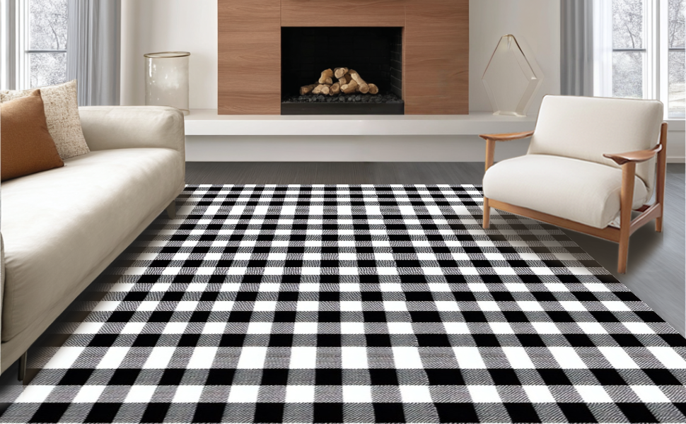 Ultra Soft Area Rug, Non Slip, Stain Resistant, Washable Area Rugs for Living Room, Bedroom, Chic Monochrome Patterned Style(Black) Overview: