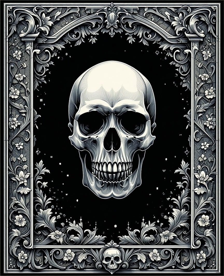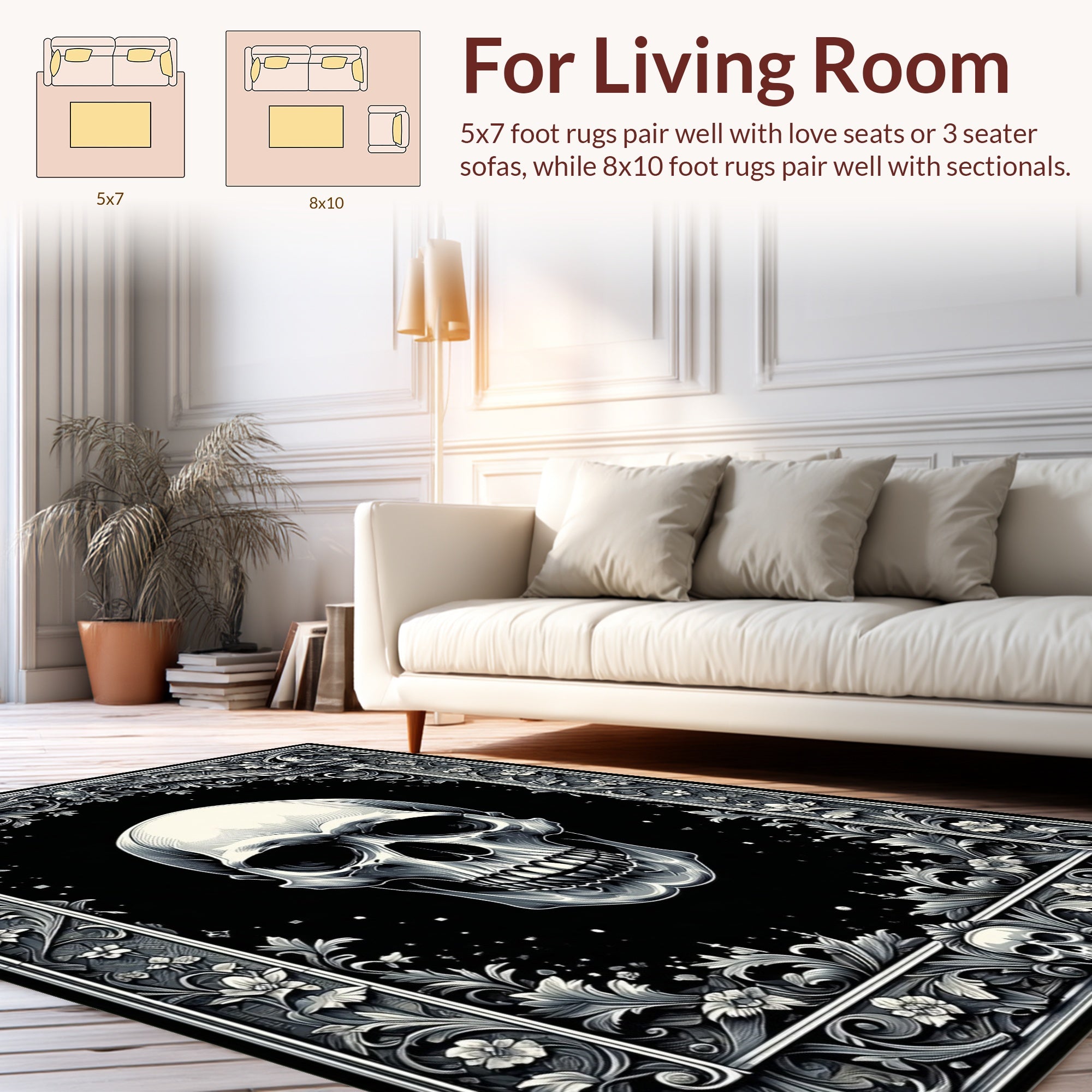 Flatwoven High Traffic Area Rug, Chic Monochrome Skull, Non Slip, Stain Resistant, Washable Area Rugs for Living Room, Bedroom (Gray) Overview: