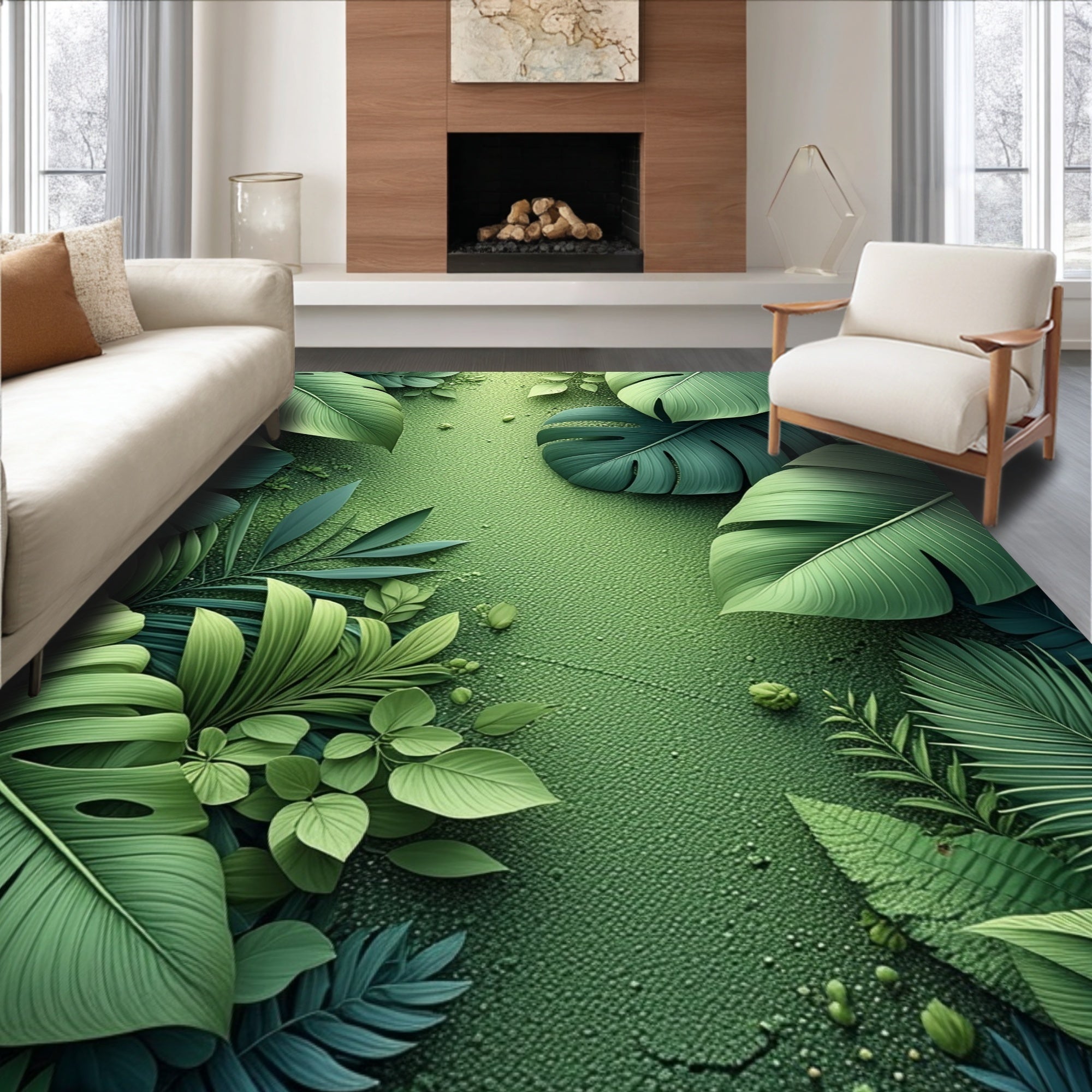 Ultra Soft Area Rug, Non Slip, Stain Resistant, Washable Area Rugs for Living Room, Bedroom, Chic Monstera Leaf Entryway High Traffic Carpet(Green) Overview: