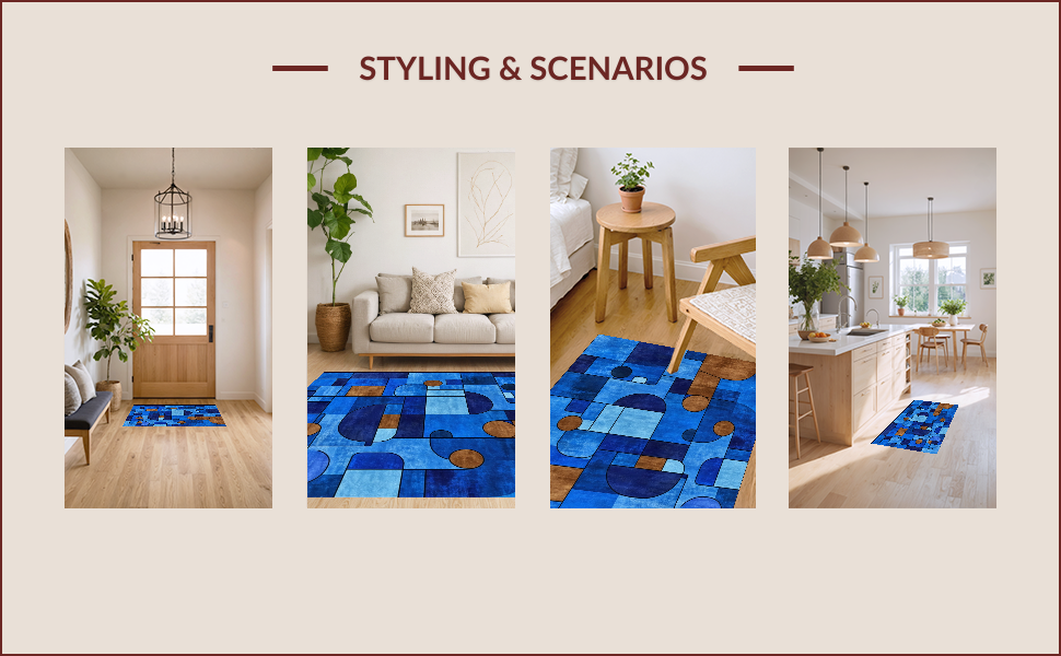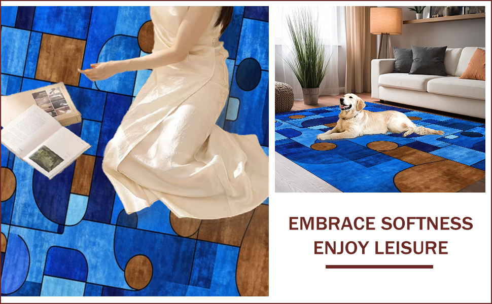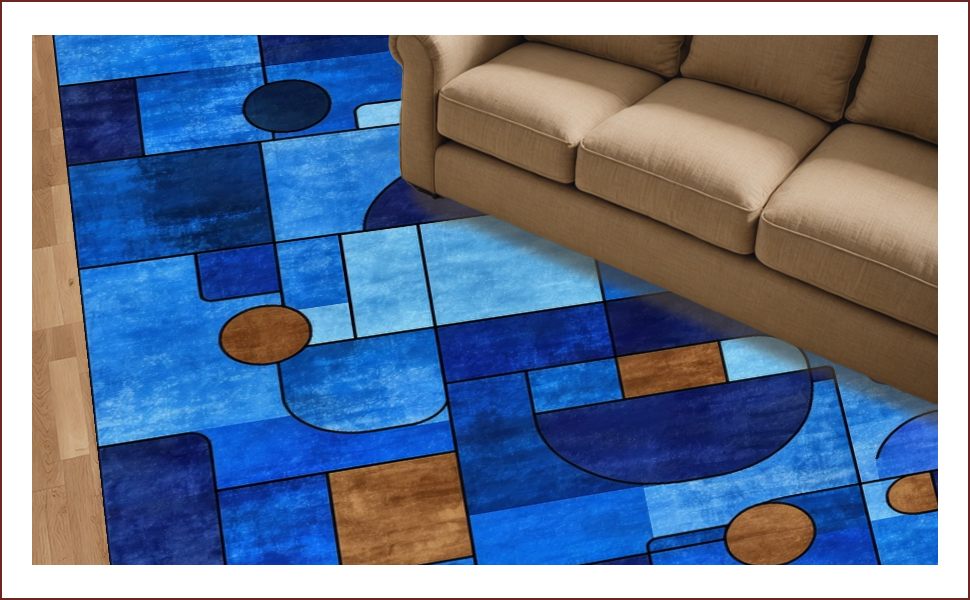 Ultra Soft Area Rug, Non Slip, Stain Resistant, Washable Area Rugs for Living Room, Bedroom, Chic Multi-Hued Contemporary Design(Blue) Overview: