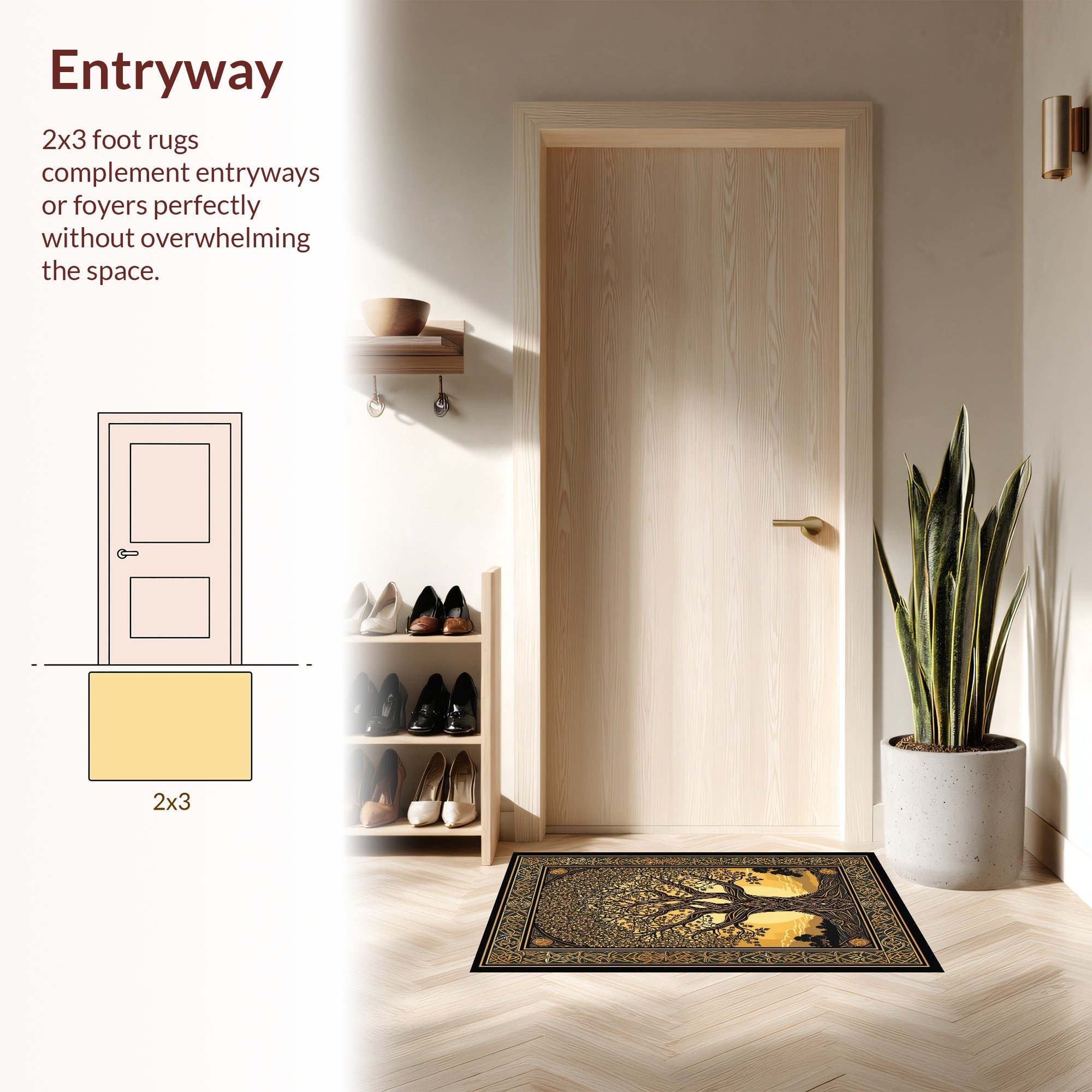 Flatwoven High Traffic Area Rug, Chic Natural Patterned Appeal, Non Slip, Stain Resistant, Washable Area Rugs for Living Room, Bedroom (Gold) Overview: