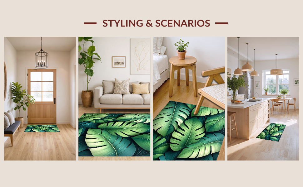 Ultra Soft Area Rug, Non Slip, Stain Resistant, Washable Area Rugs for Living Room, Bedroom, Chic Nature-Inspired Decor Piece(Green) Overview: