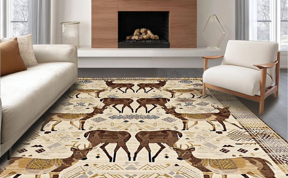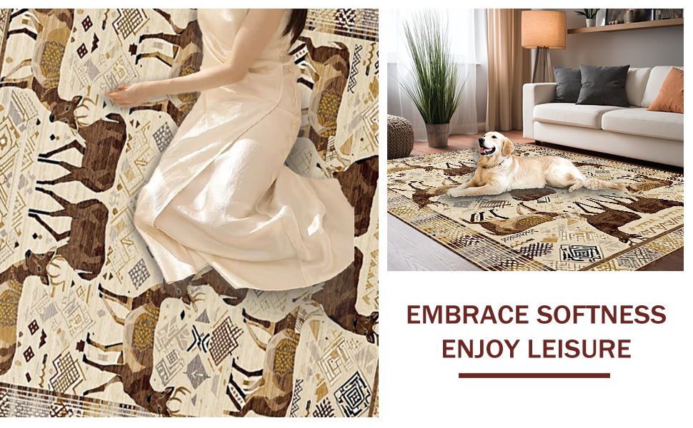 Ultra Soft Area Rug, Non Slip, Stain Resistant, Washable Area Rugs for Living Room, Bedroom, Chic Nature-Inspired Hide Design(Beige) Overview: