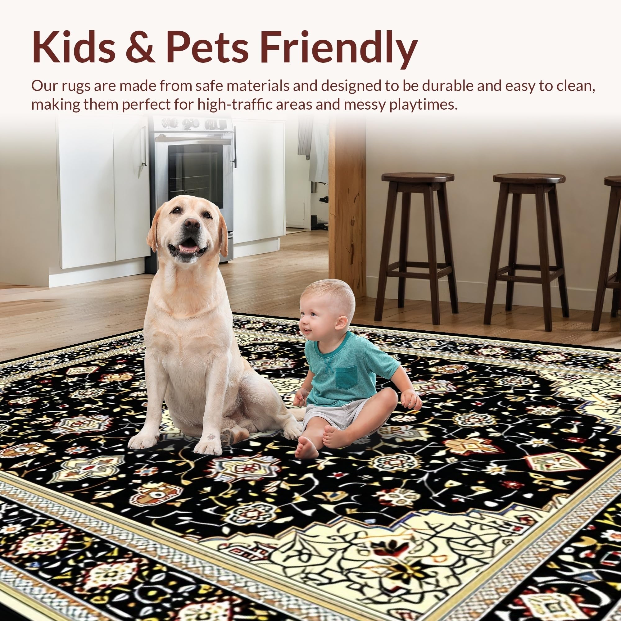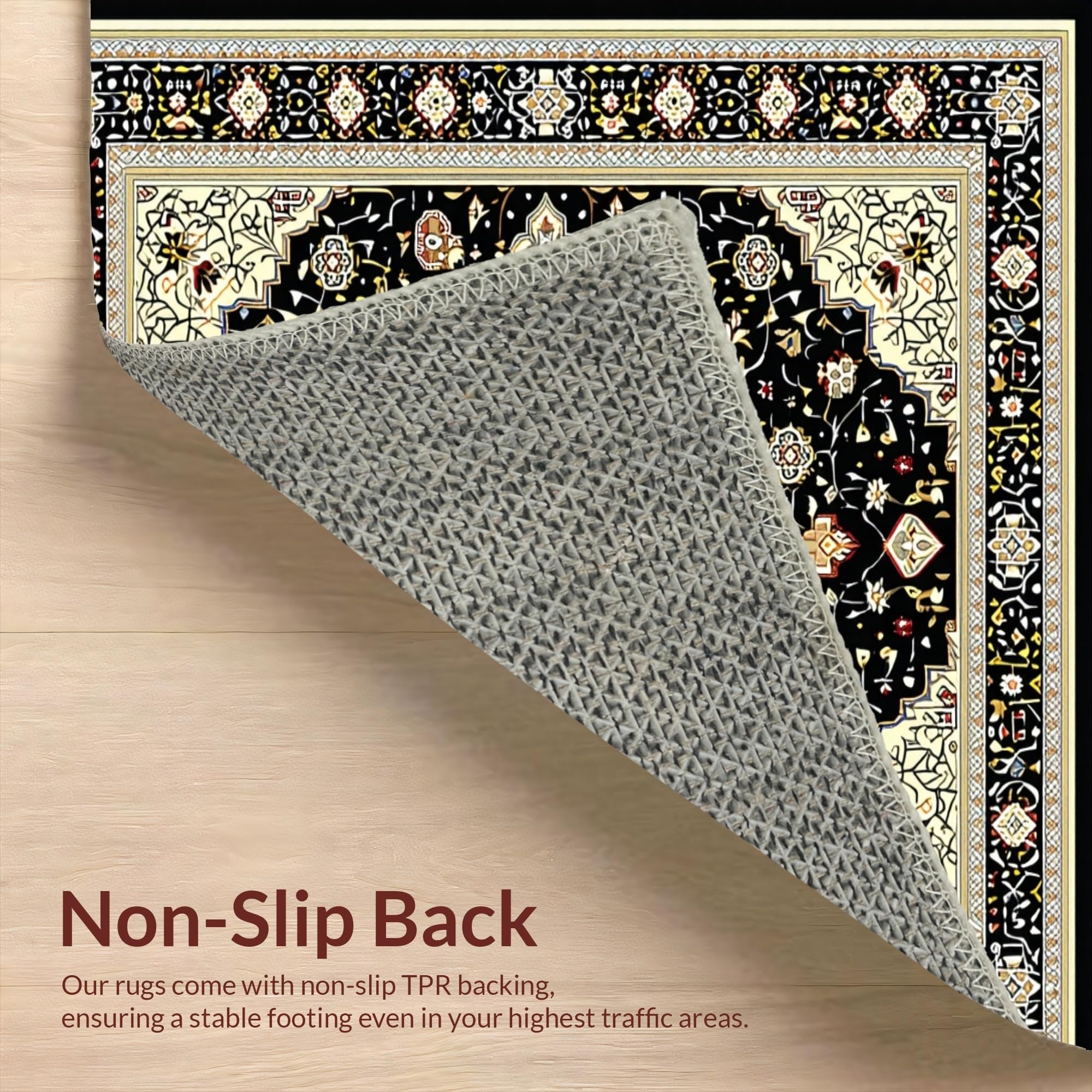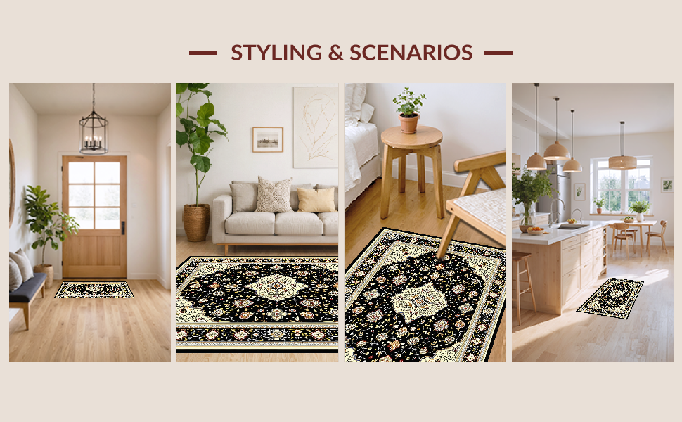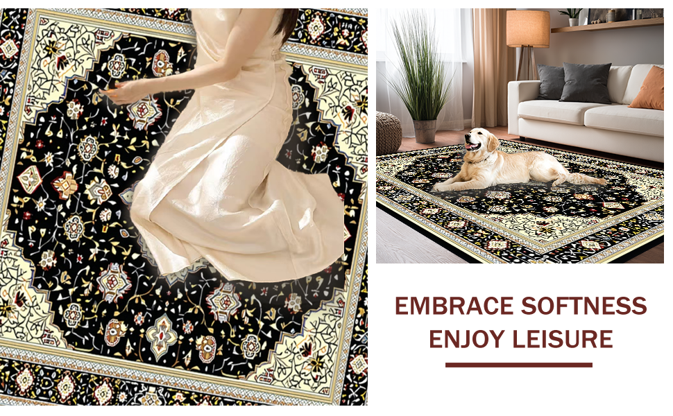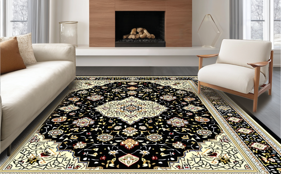 Ultra Soft Area Rug, Non Slip, Stain Resistant, Washable Area Rugs for Living Room, Bedroom, Chic Neutral Toned Lattice Arrangement(Black) Overview: