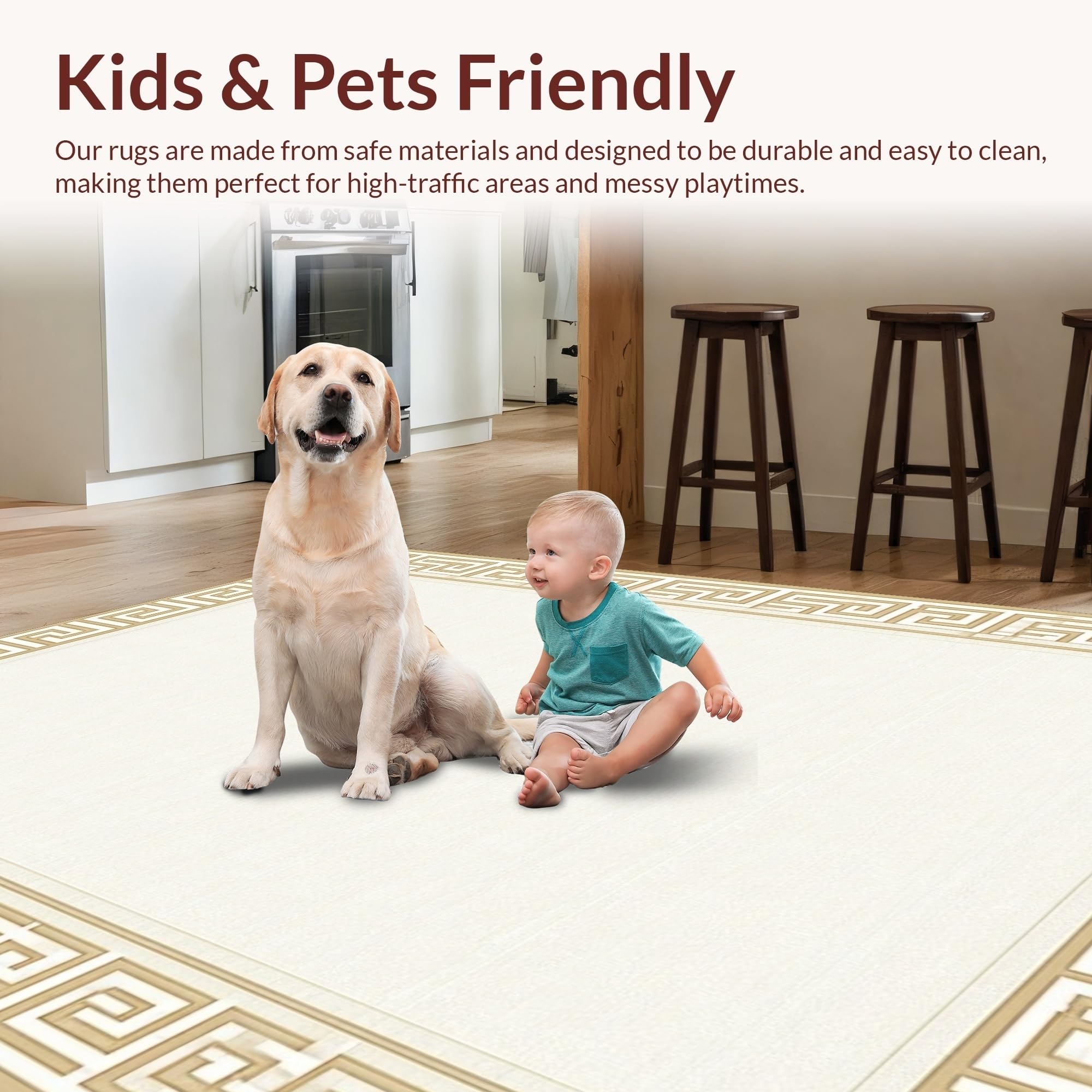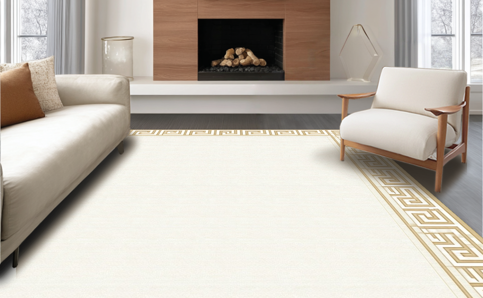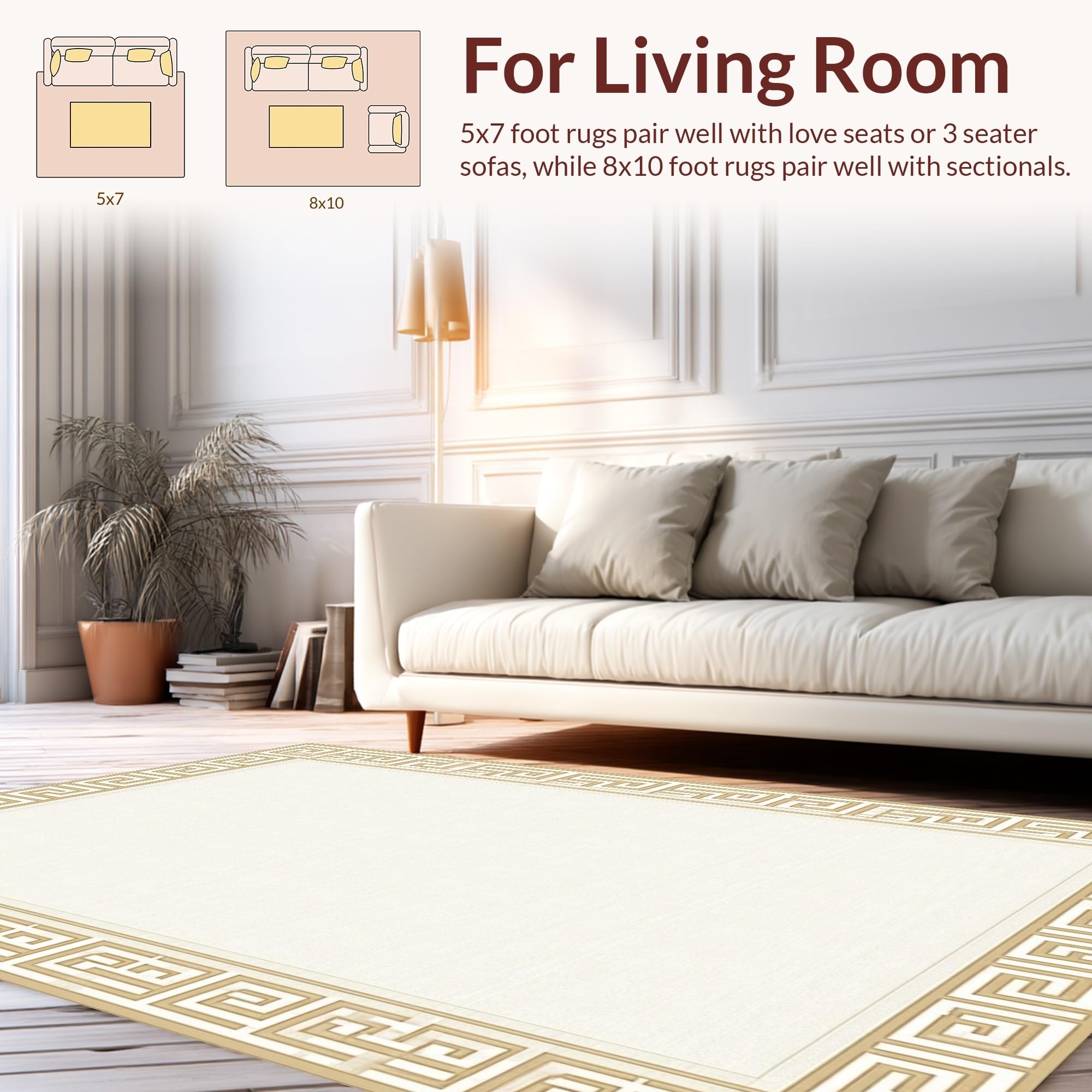 Ultra Soft Area Rug, Non Slip, Stain Resistant, Washable Area Rugs for Living Room, Bedroom, Chic Neutral Toned Lattice Style(Beige) Overview: