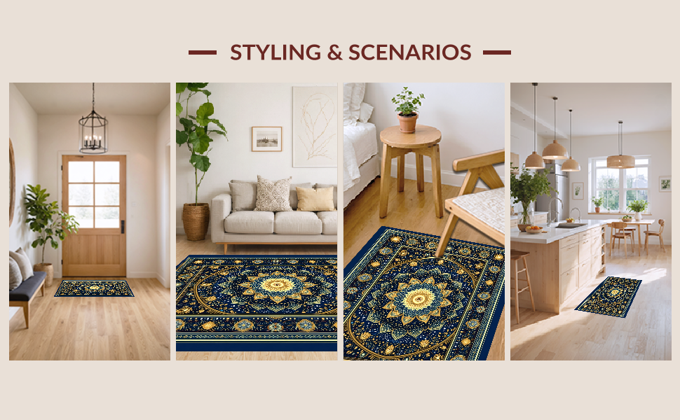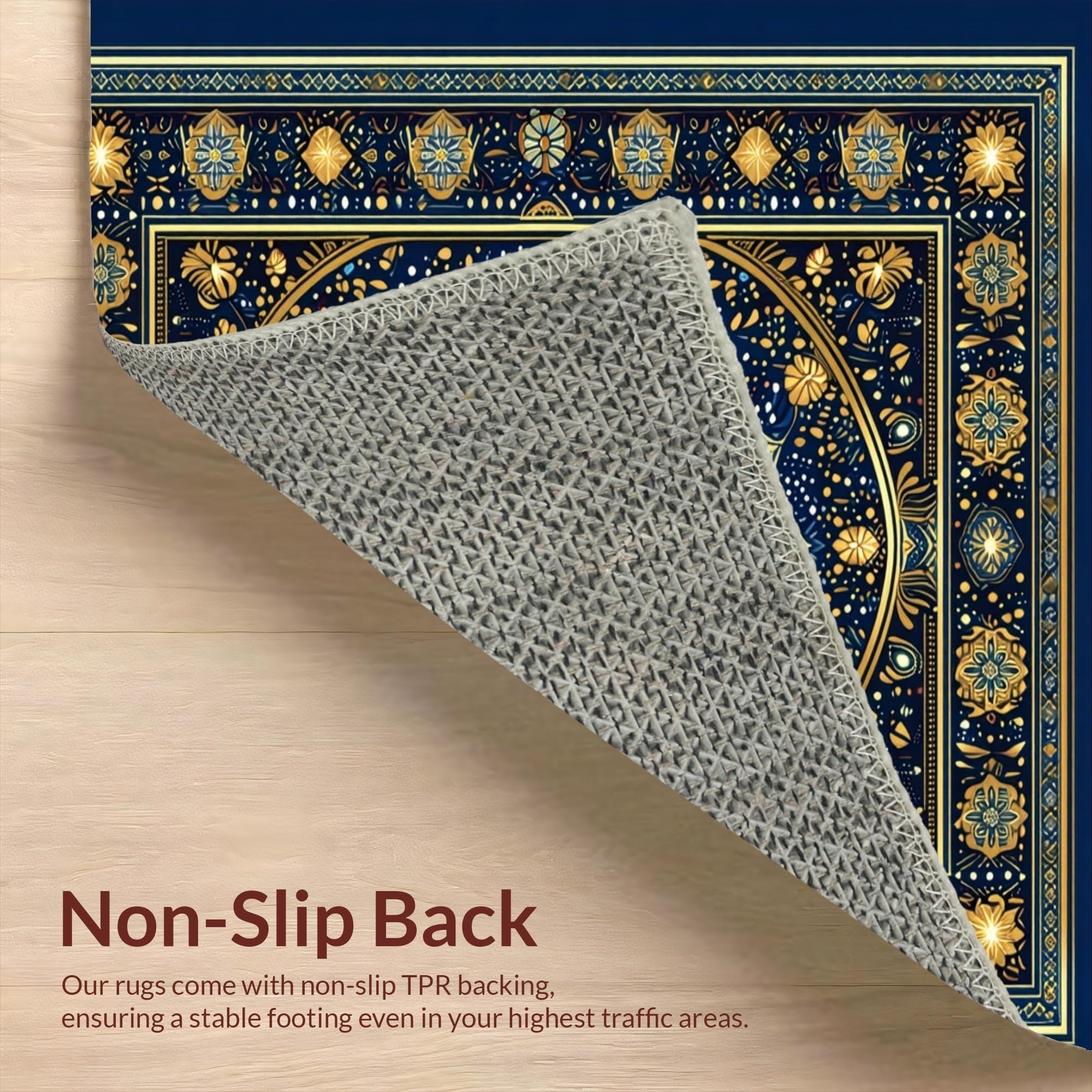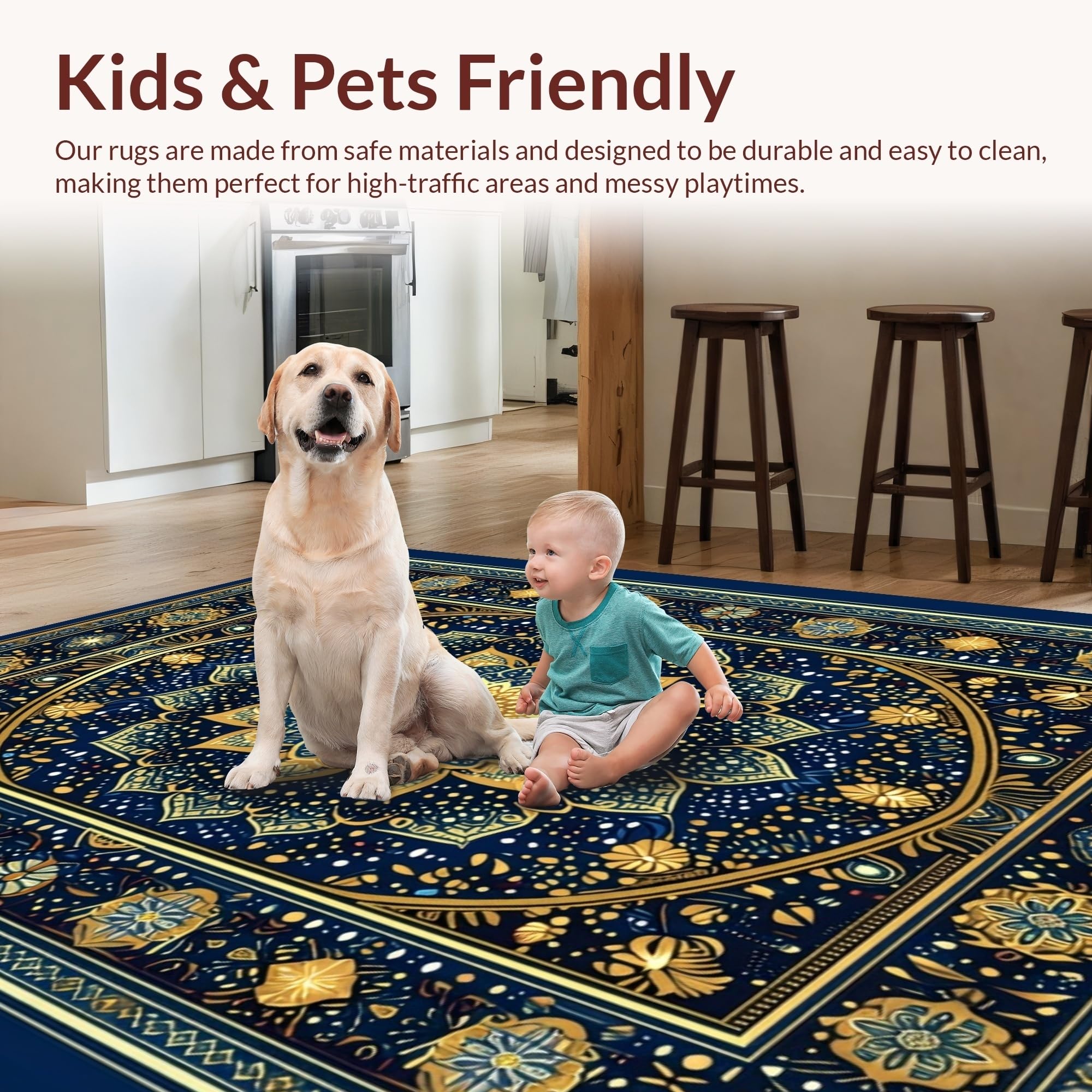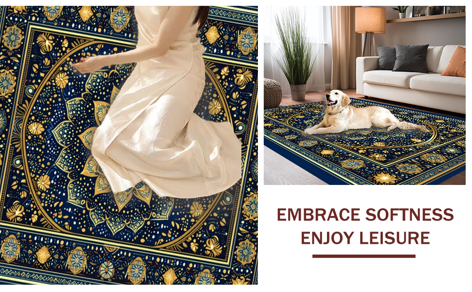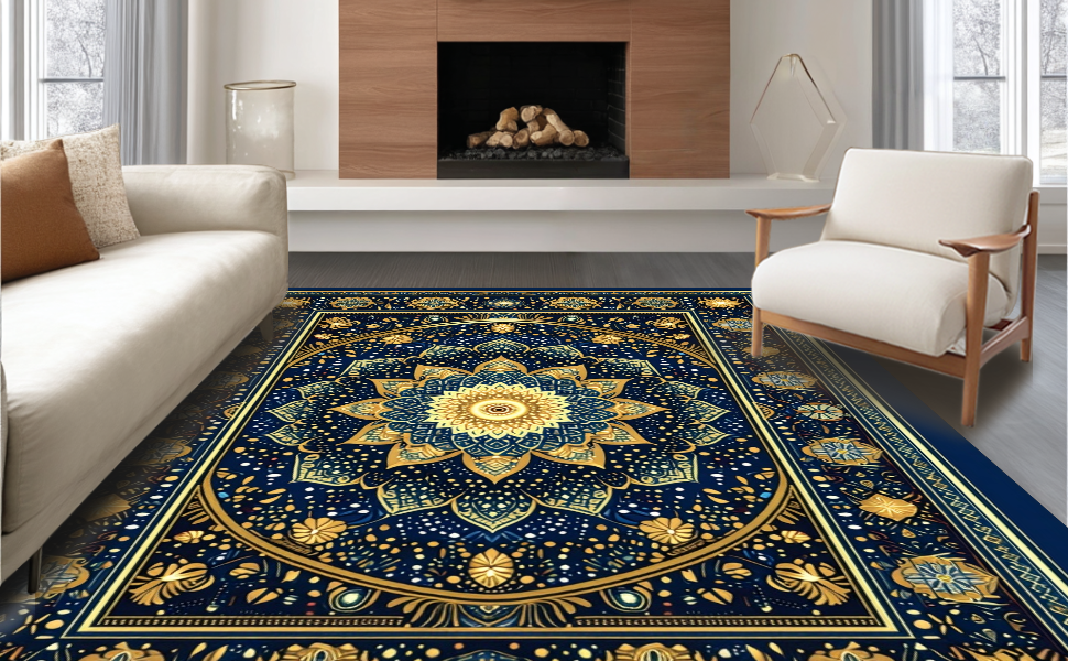 Ultra Soft Area Rug, Non Slip, Stain Resistant, Washable Area Rugs for Living Room, Bedroom, Chic Ogee Inspired Home Decor(Blue) Overview: