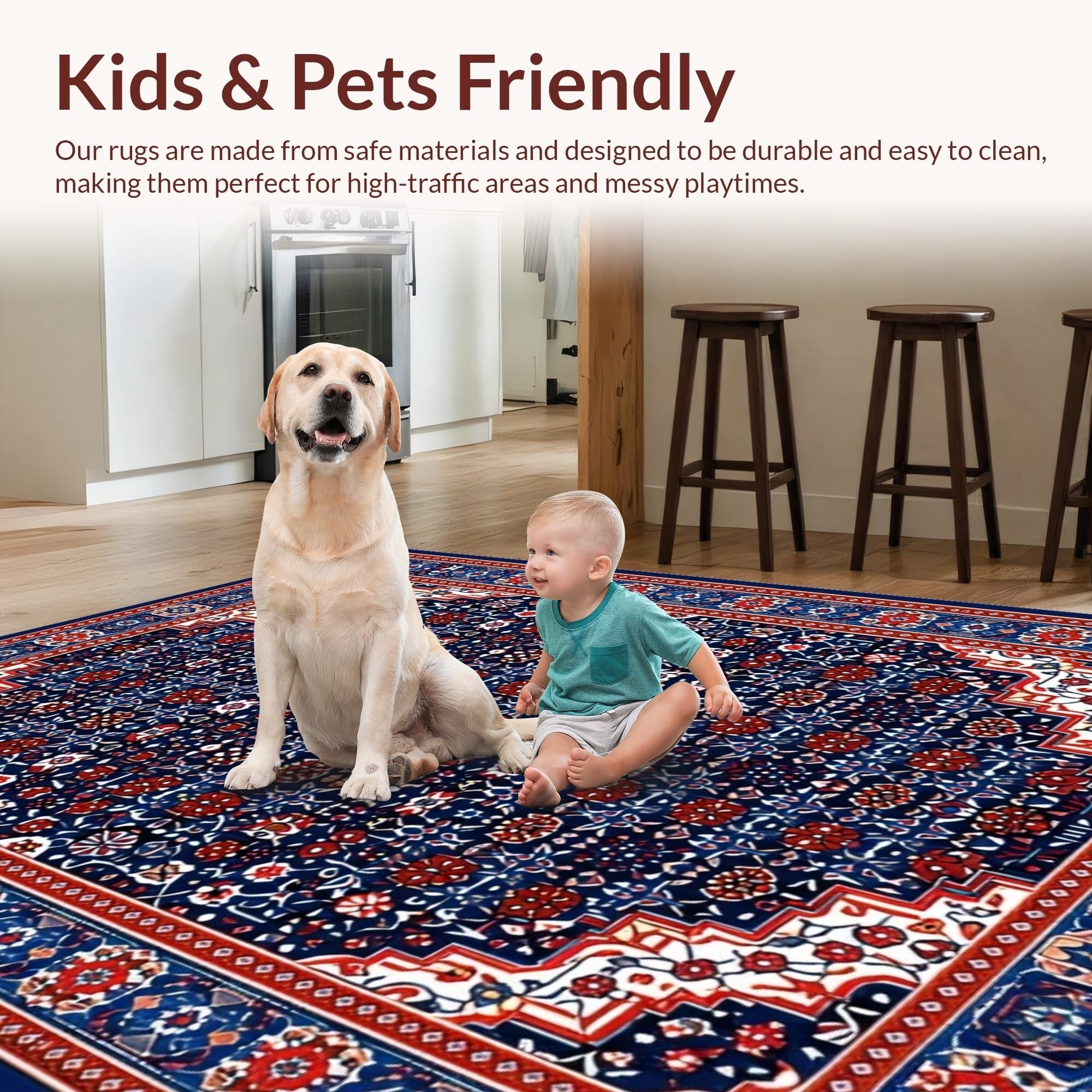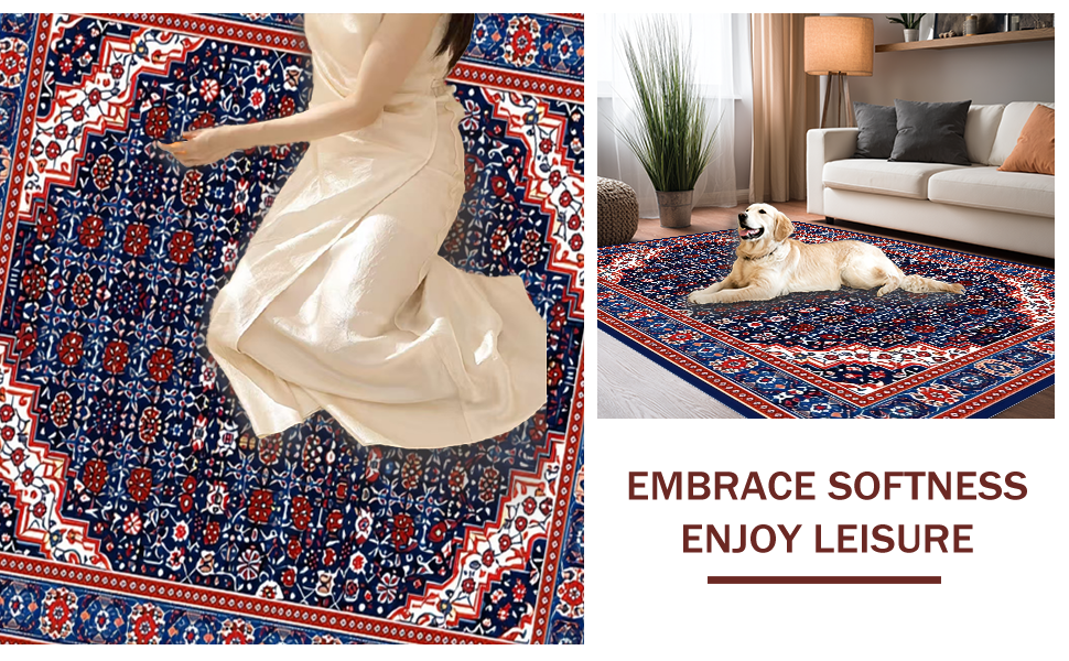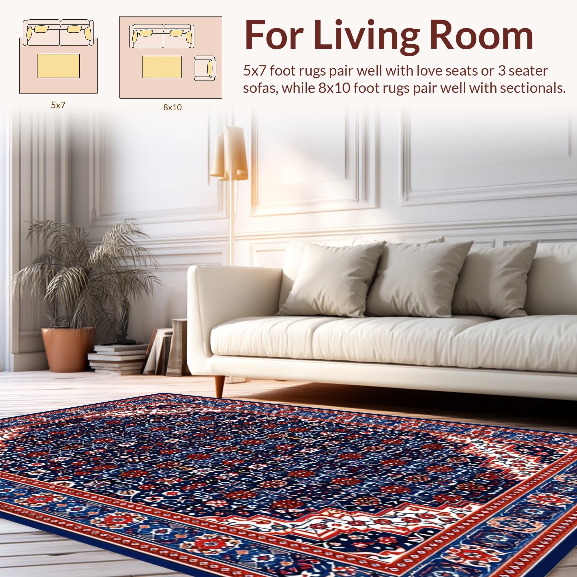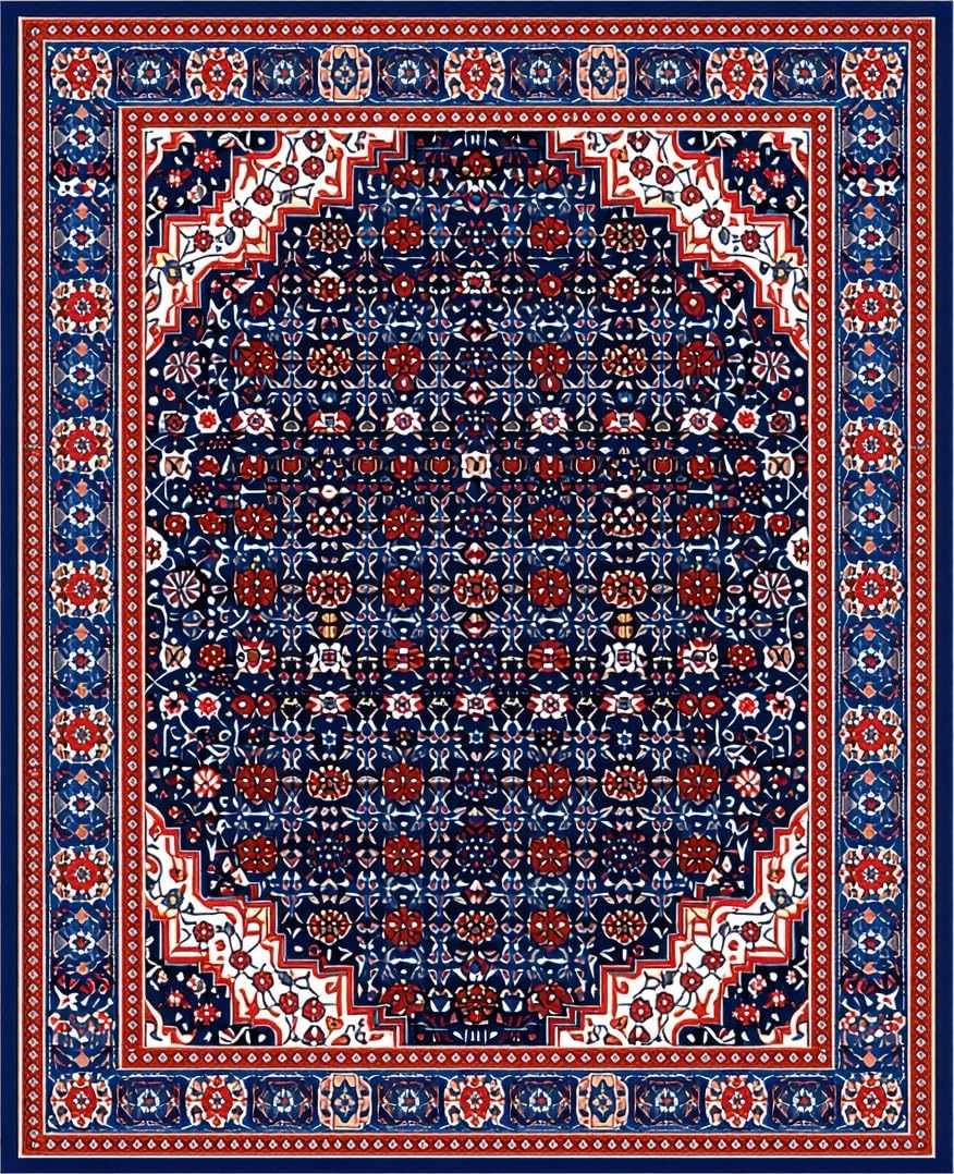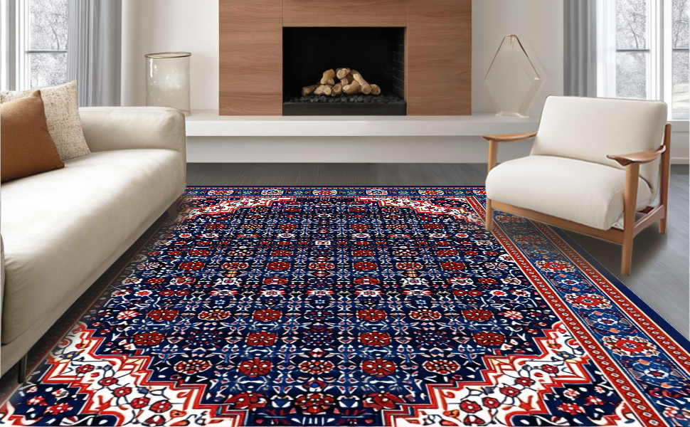 Ultra Soft Area Rug, Non Slip, Stain Resistant, Washable Area Rugs for Living Room, Bedroom, Chic Ogee Pattern with Contrast(Blue) Overview: