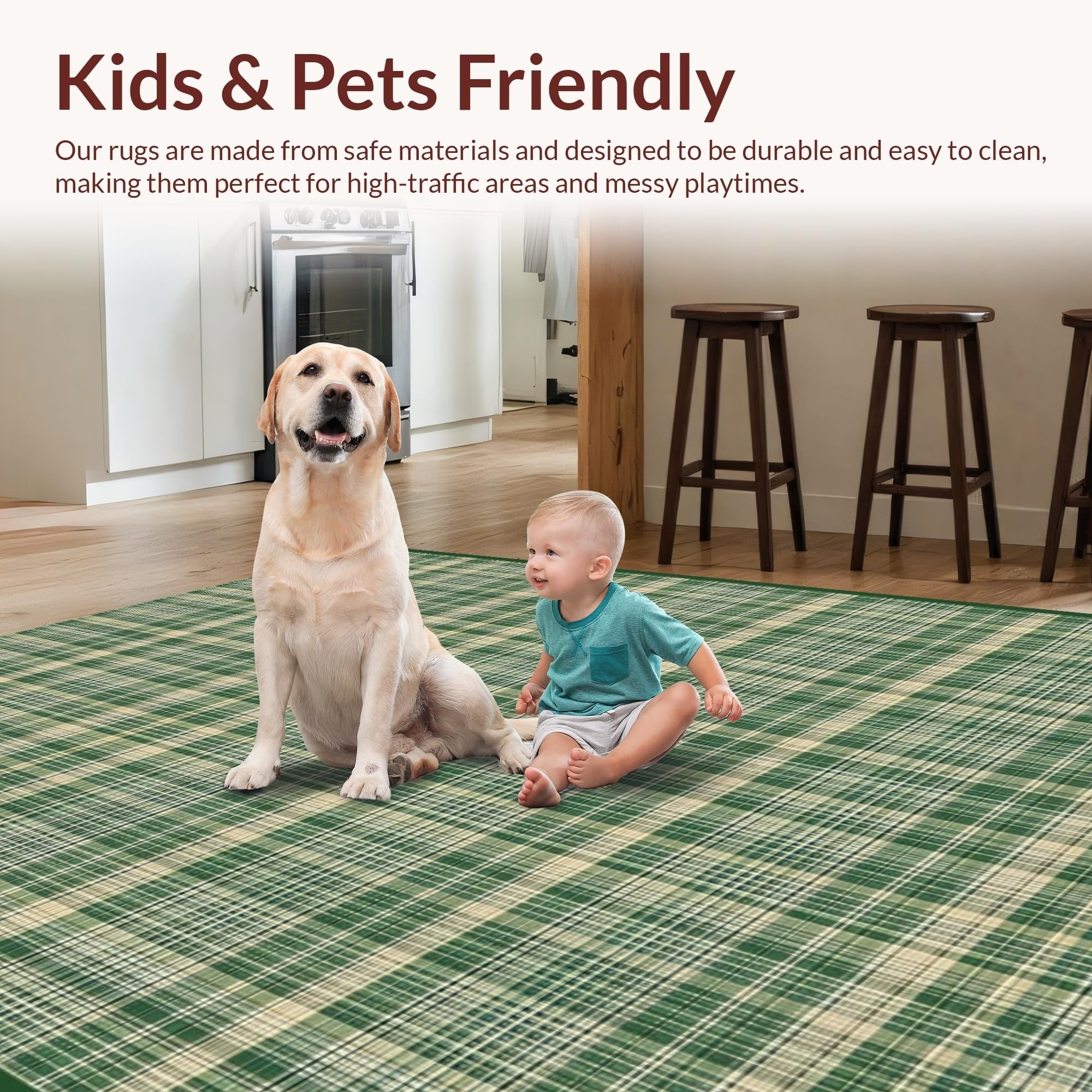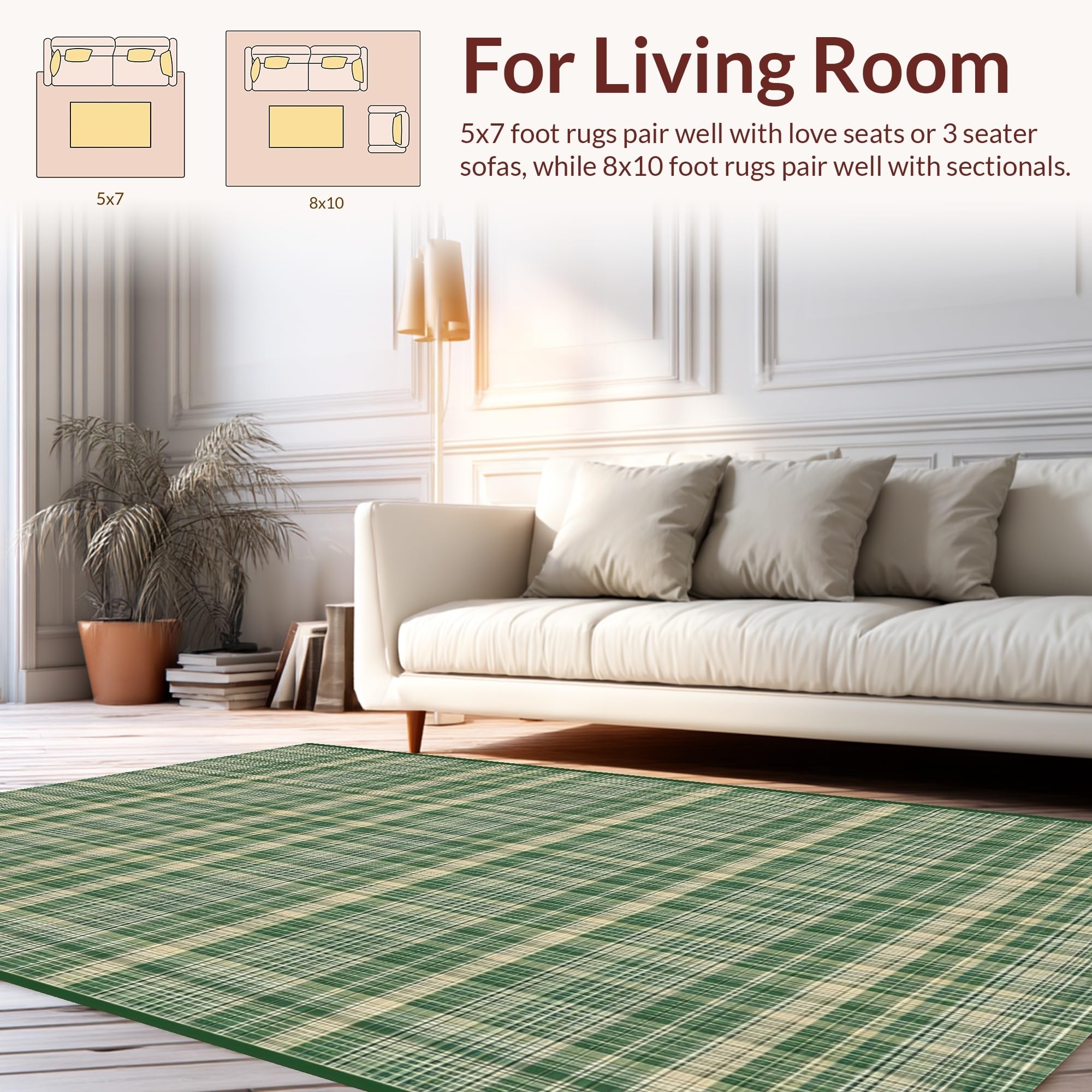 Ultra Soft Area Rug, Non Slip, Stain Resistant, Washable Area Rugs for Living Room, Bedroom, Chic Olive Green Plaid Aesthetic(Beige) Overview:
