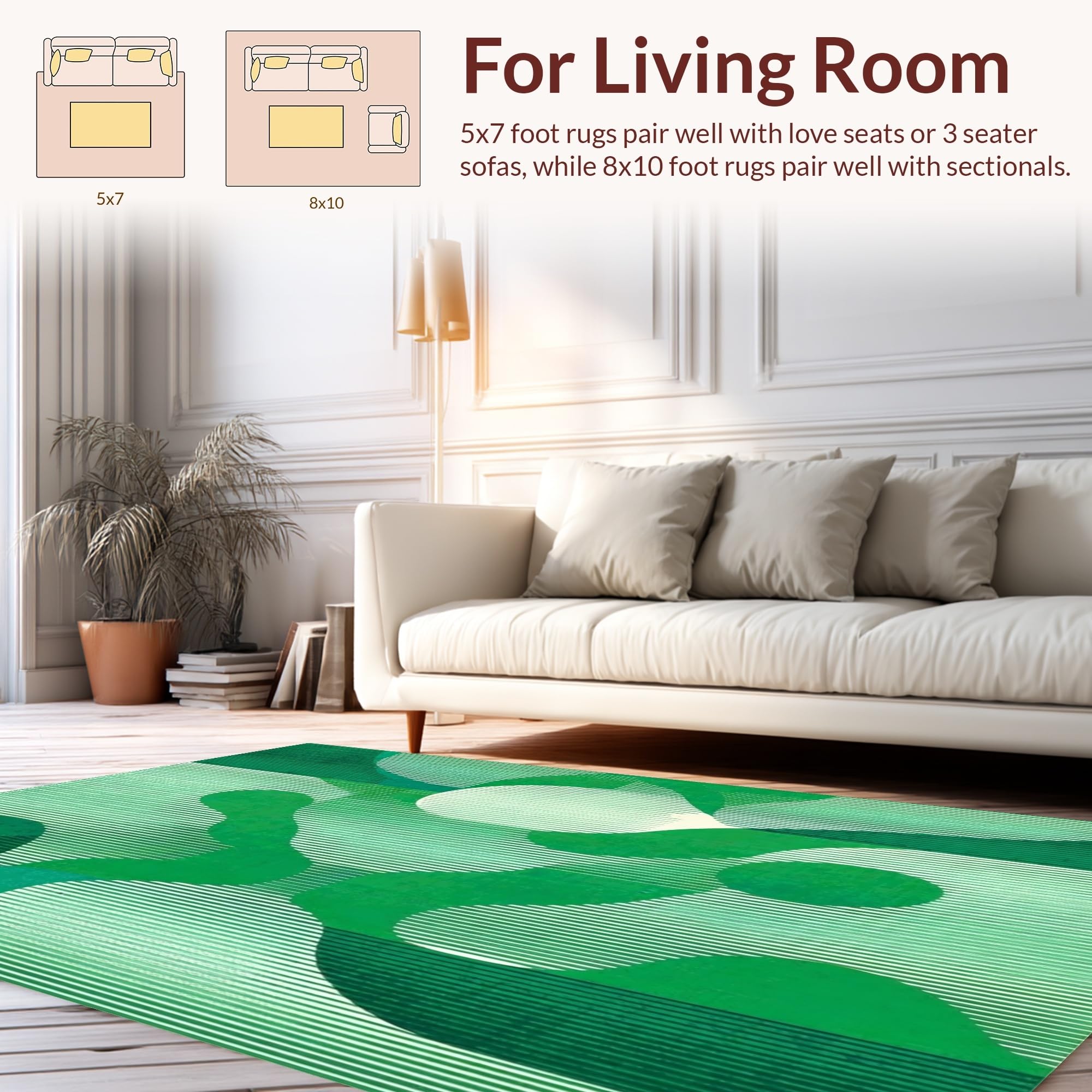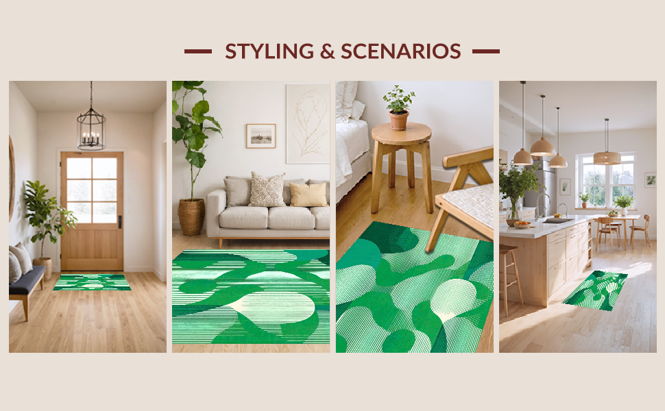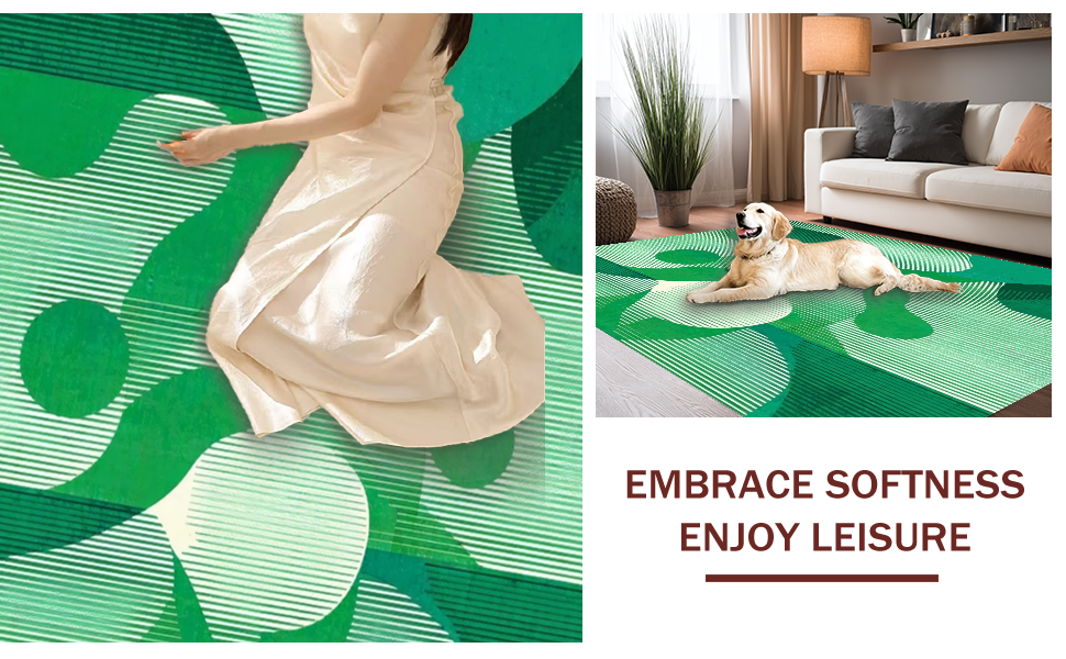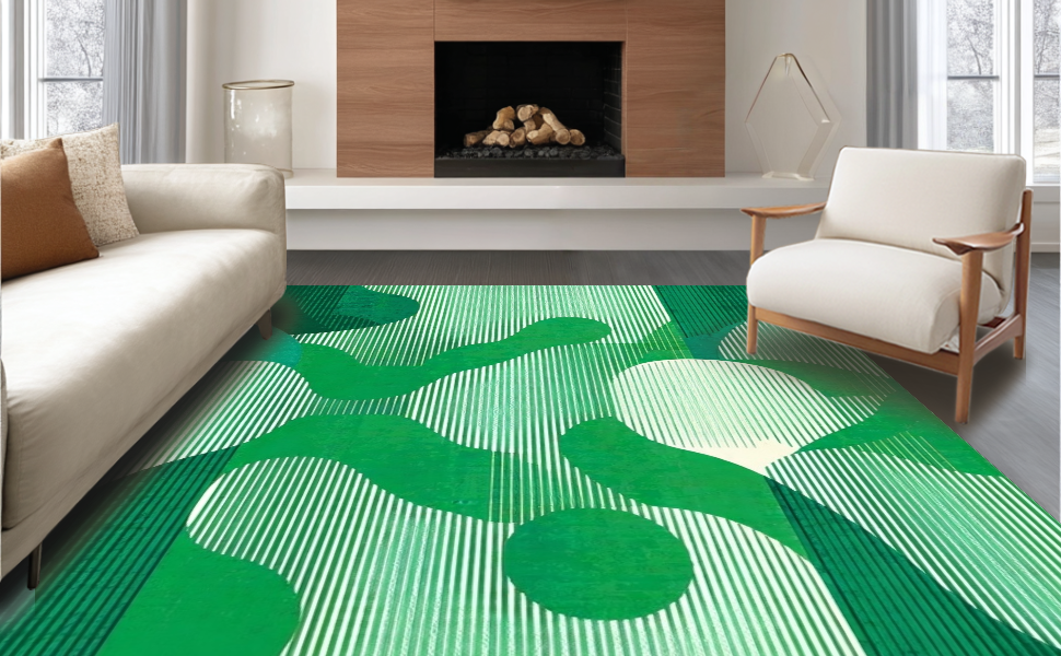 Ultra Soft Area Rug, Non Slip, Stain Resistant, Washable Area Rugs for Living Room, Bedroom, Chic Organic Scalloped Motif(Green) Overview: