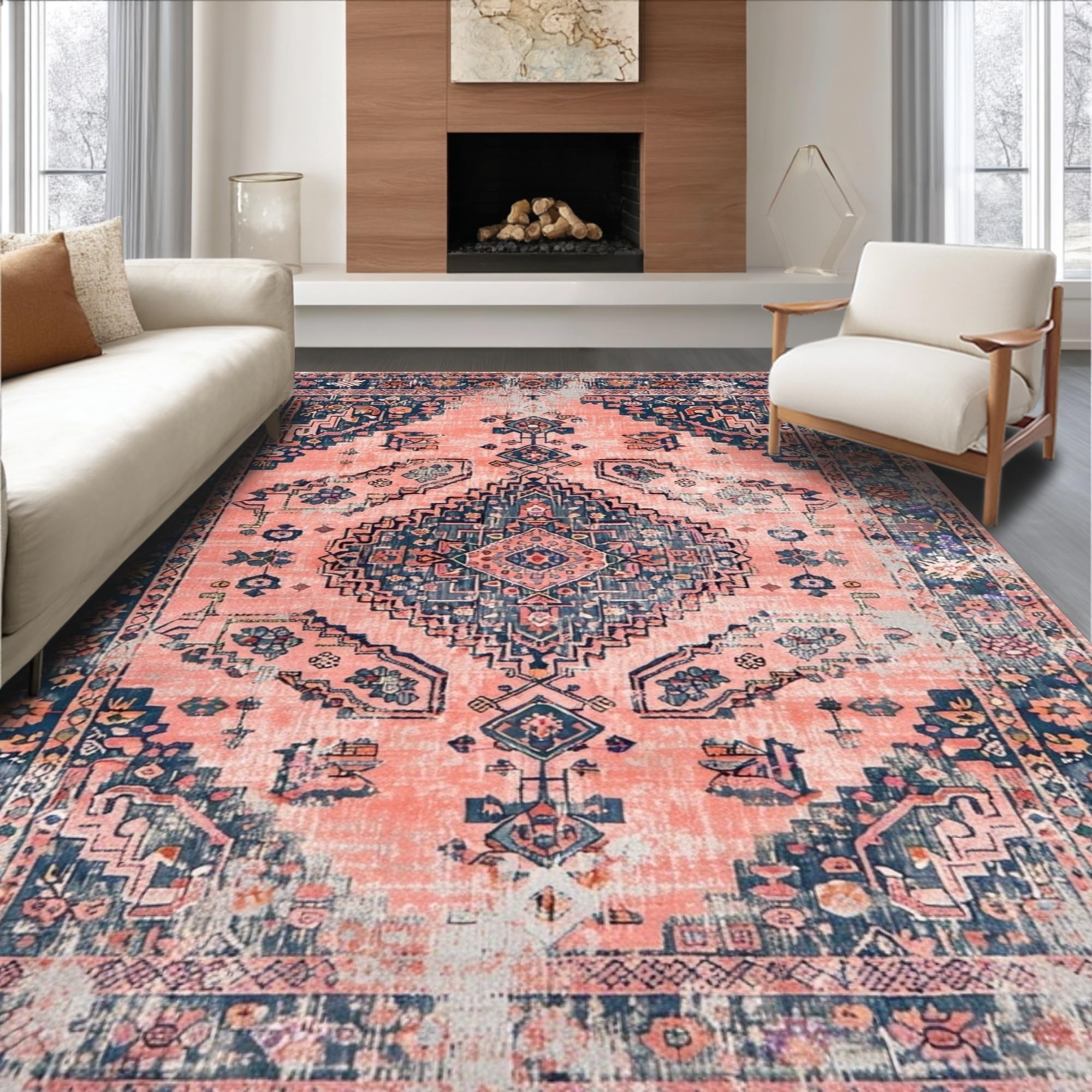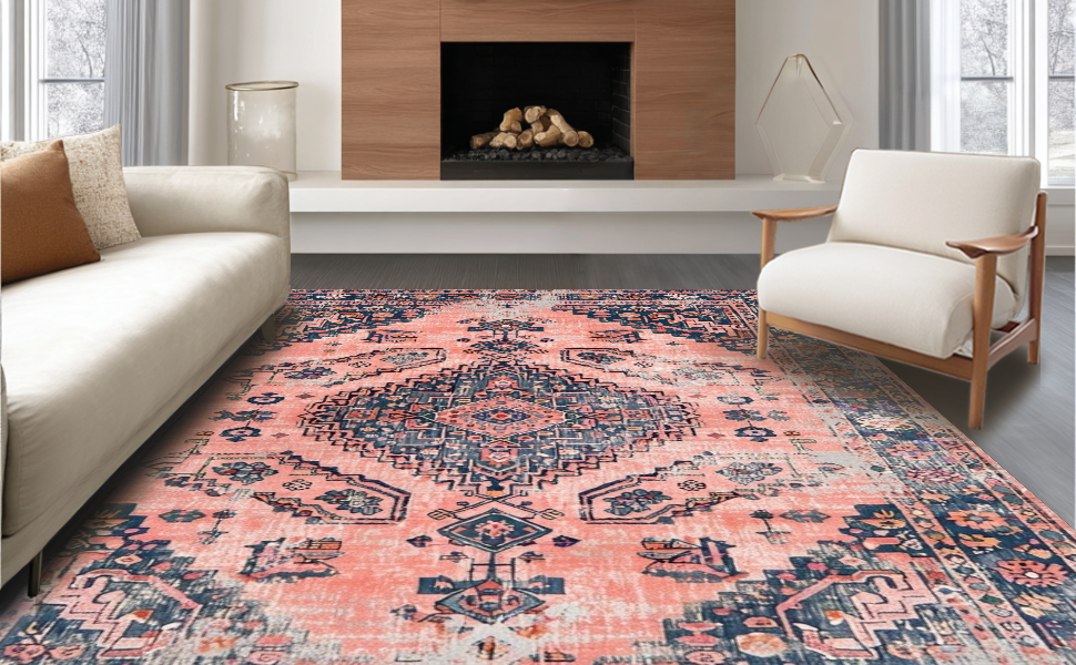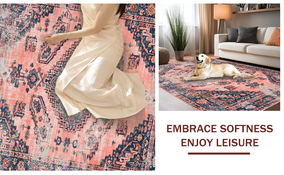 Ultra Soft Area Rug, Non Slip, Stain Resistant, Washable Area Rugs for Living Room, Bedroom, Chic Pastel Abstract Textures(Red) Overview: