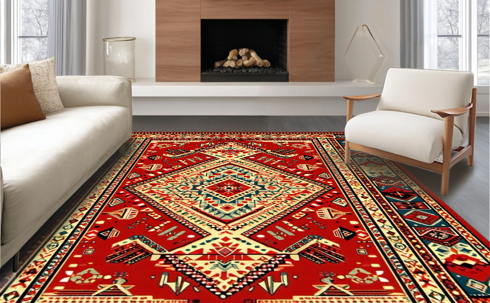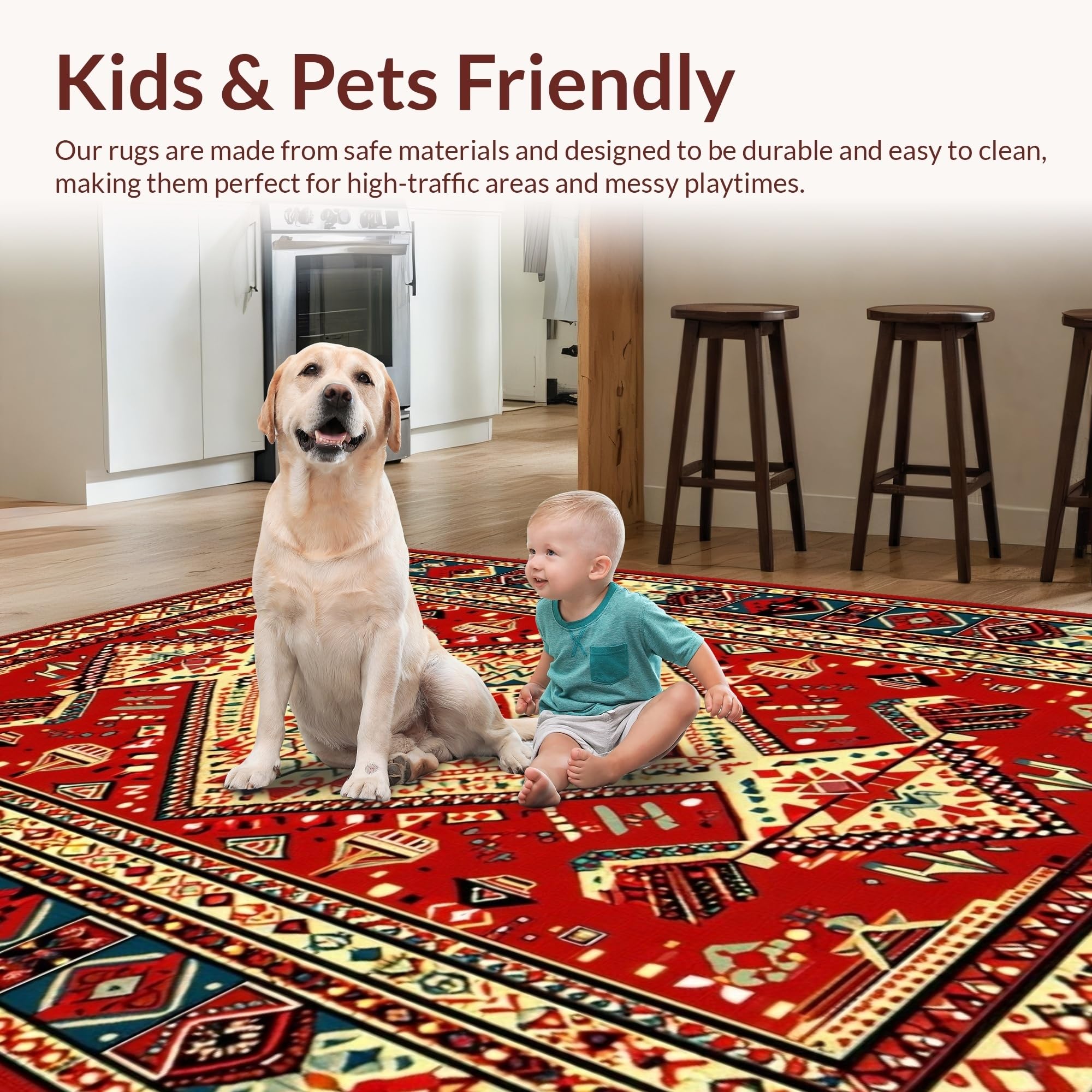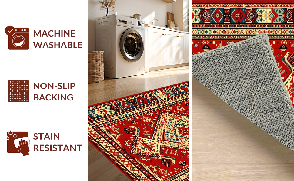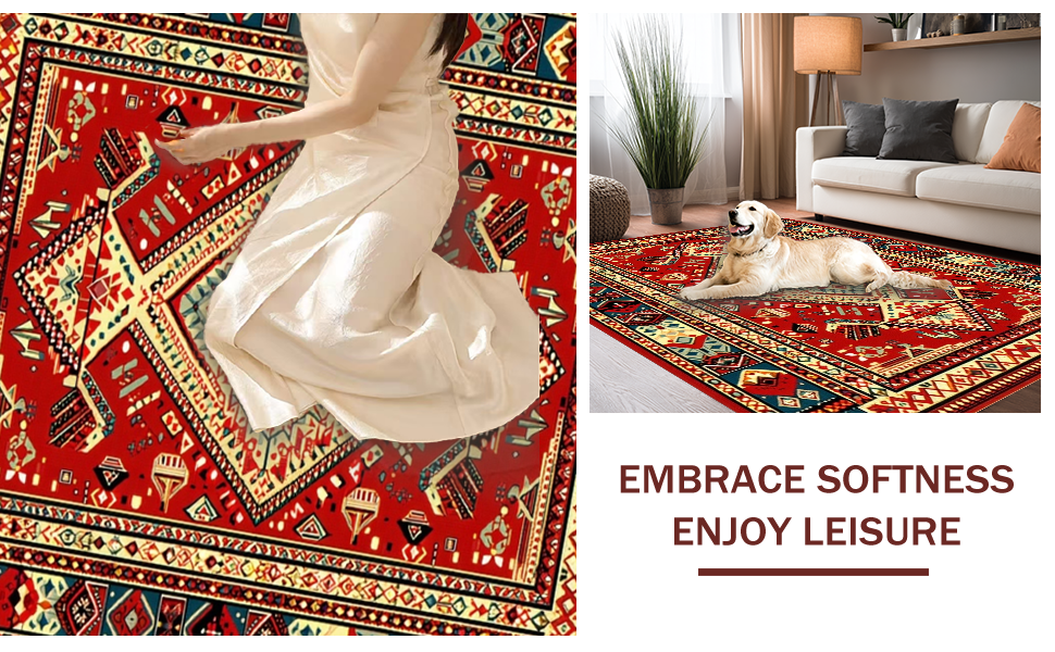 Ultra Soft Area Rug, Non Slip, Stain Resistant, Washable Area Rugs for Living Room, Bedroom, Chic Pastel Geometric Accents(Red) Overview: