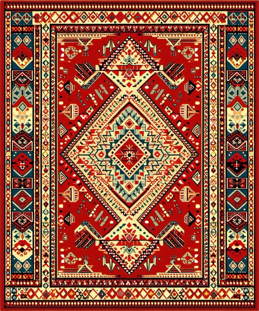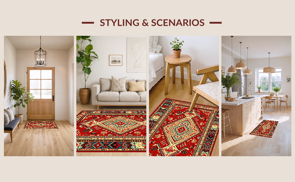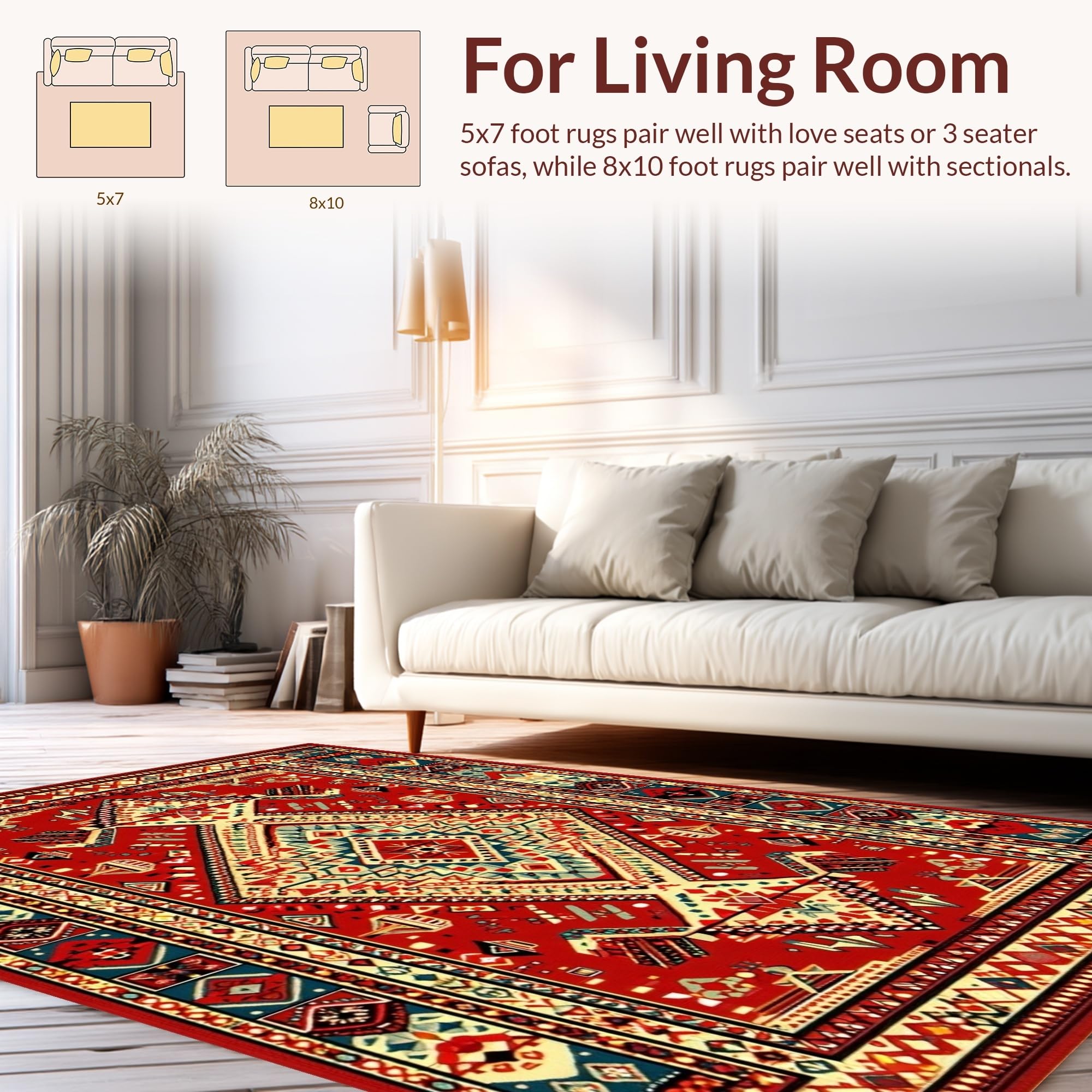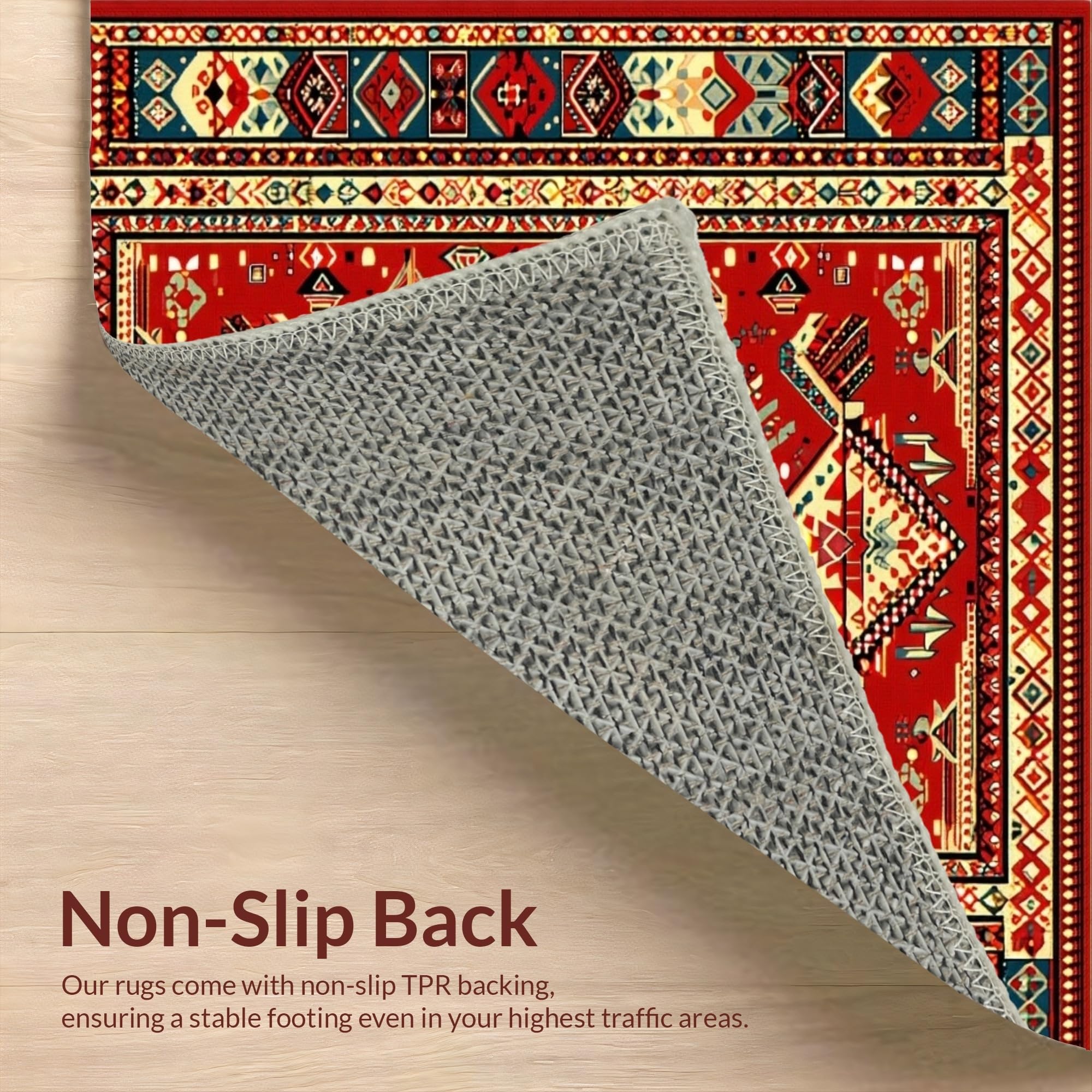 Ultra Soft Area Rug, Non Slip, Stain Resistant, Washable Area Rugs for Living Room, Bedroom, Chic Pastel Geometric Accents(Red) Overview: