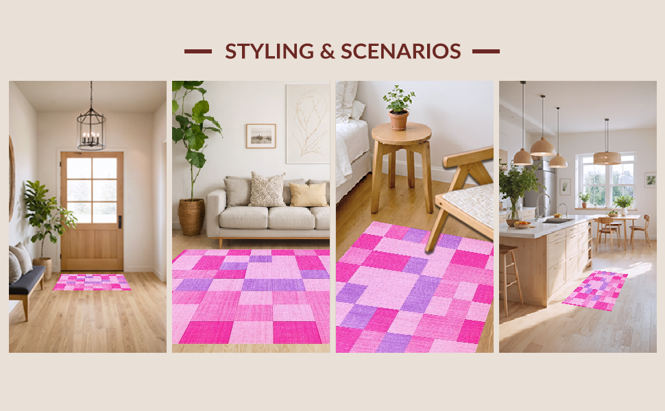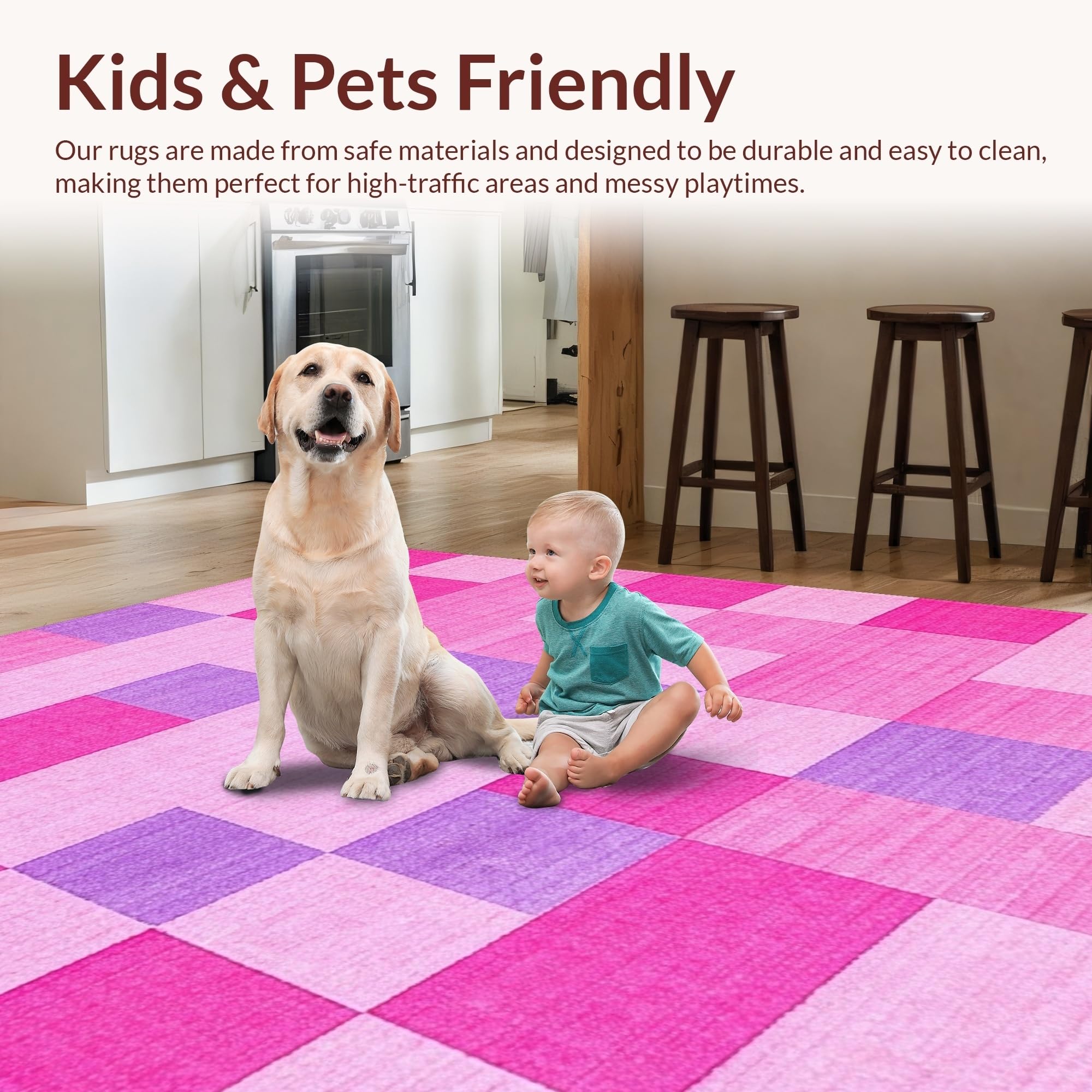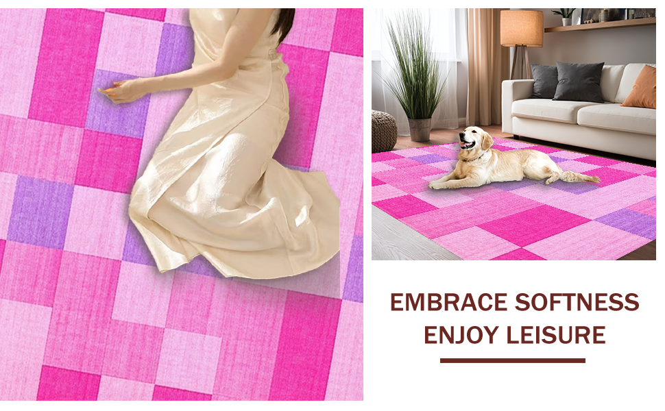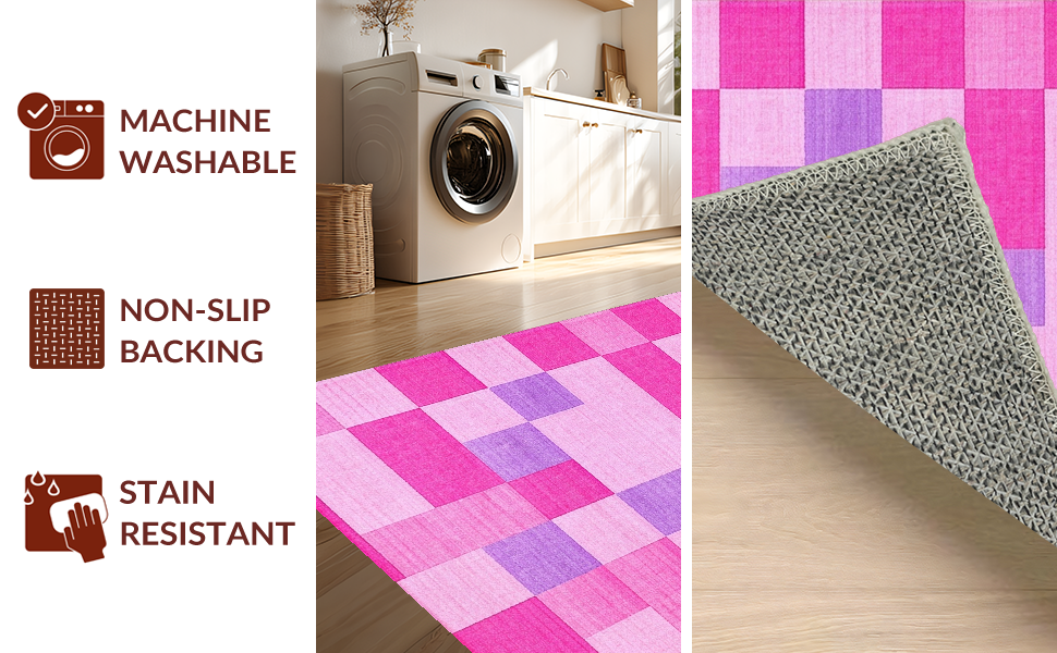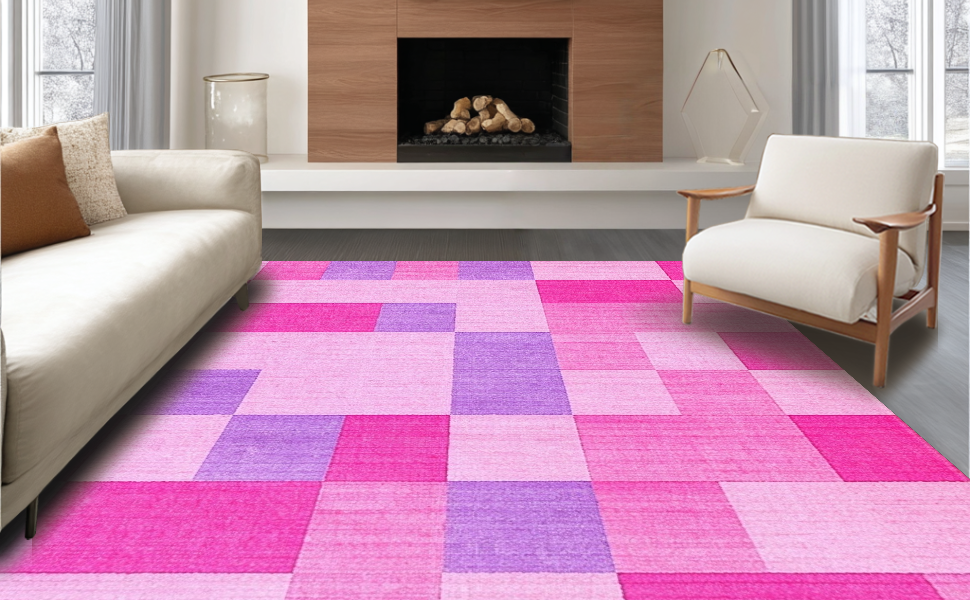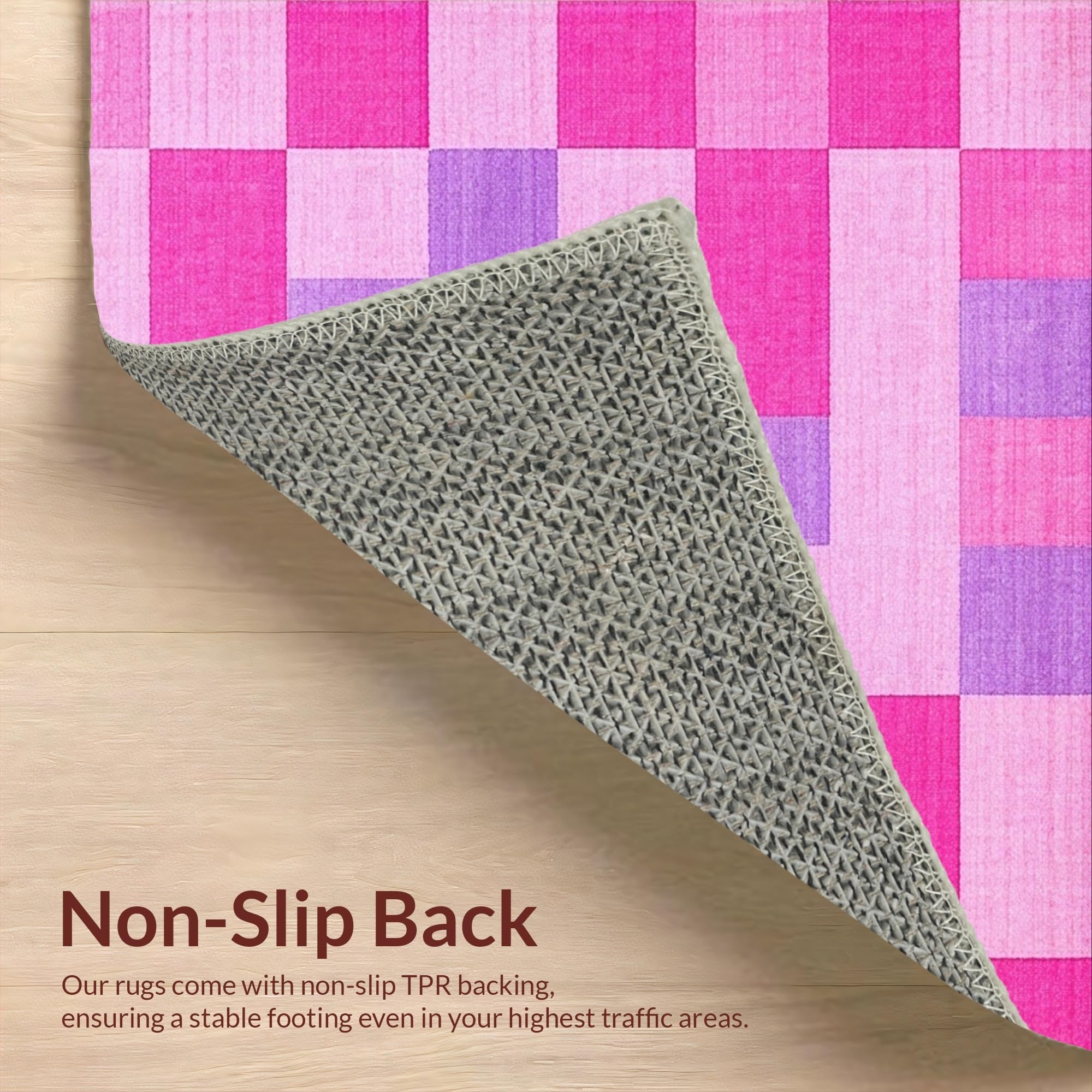 Ultra Soft Area Rug, Non Slip, Stain Resistant, Washable Area Rugs for Living Room, Bedroom, Chic Pink Checker Aesthetic(Pink) Overview: