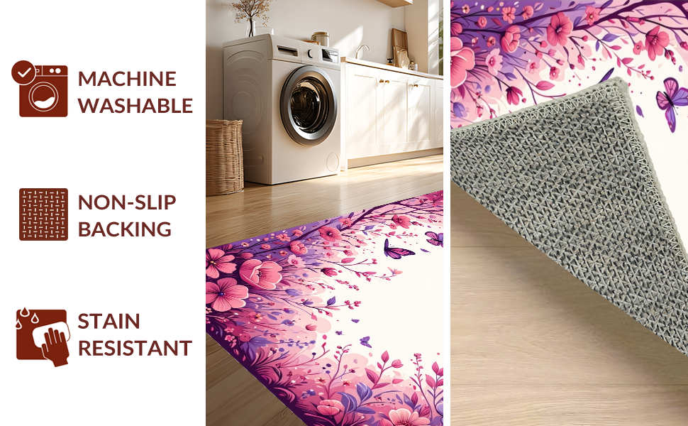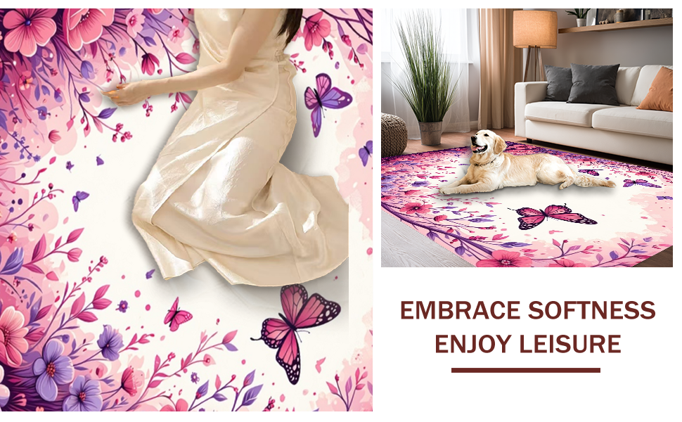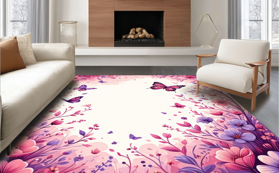 Ultra Soft Area Rug, Non Slip, Stain Resistant, Washable Area Rugs for Living Room, Bedroom, Chic Pink Floral Elegance(Pink) Overview: