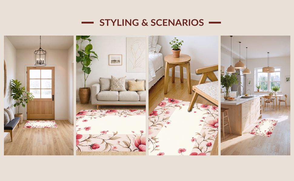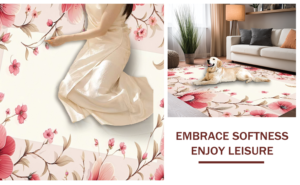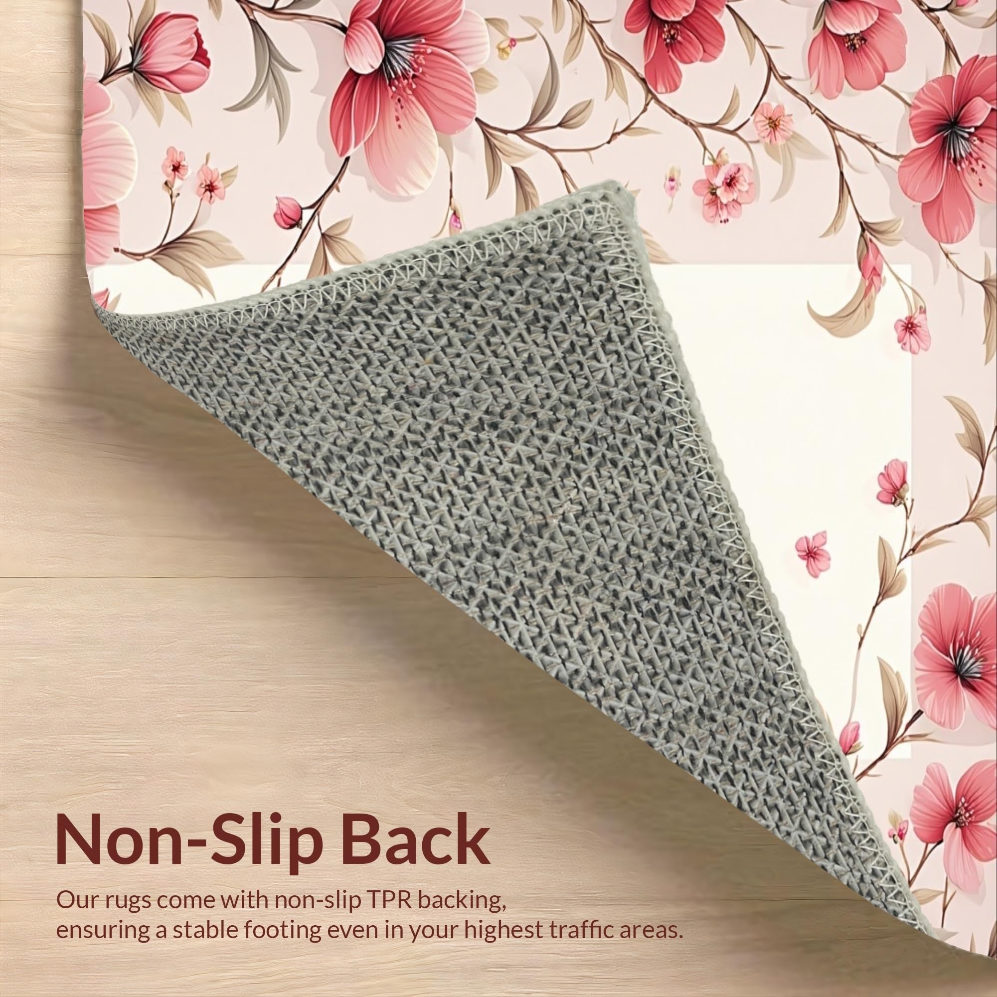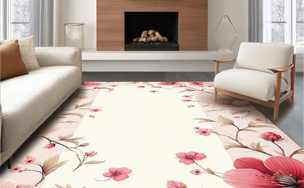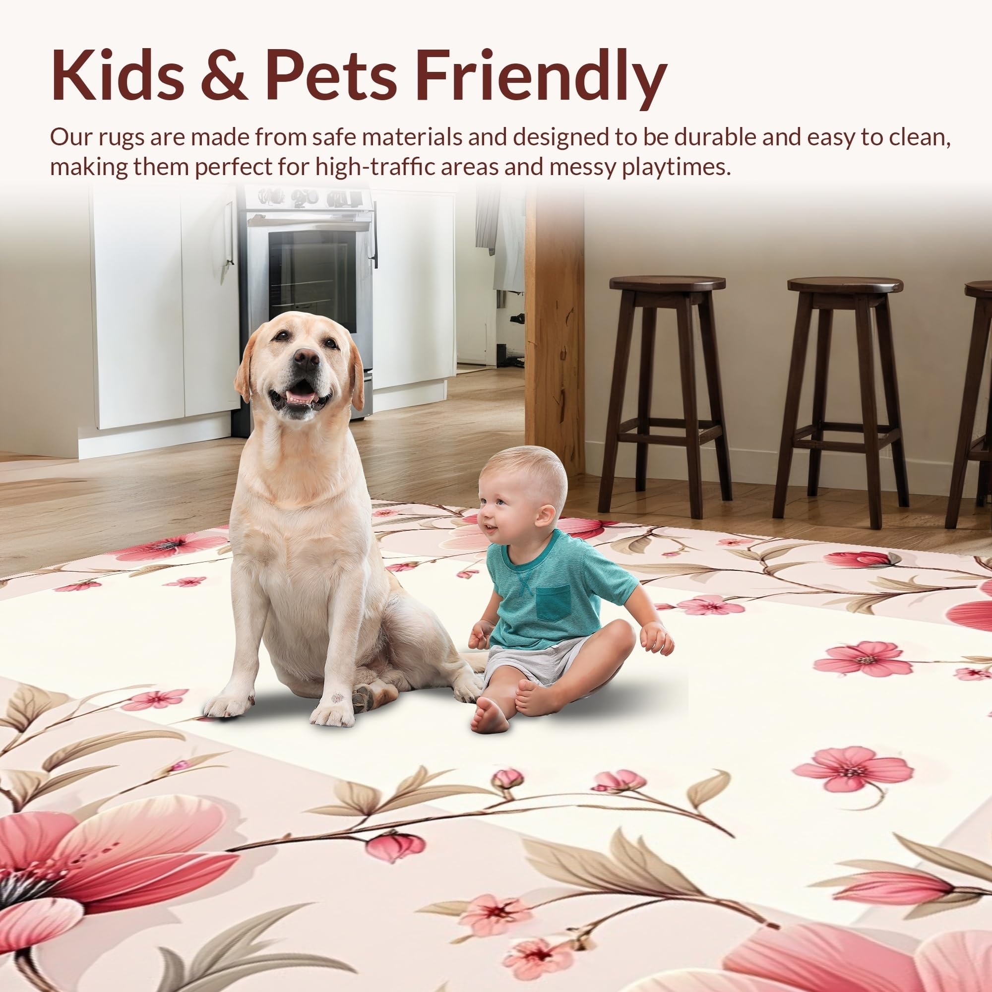Ultra Soft Area Rug, Non Slip, Stain Resistant, Washable Area Rugs for Living Room, Bedroom, Chic Round Springtime Theme(Pink) Overview: