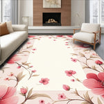 Flatwoven High Traffic Area Rug, Chic Round Springtime Theme, Non Slip, Stain Resistant, Washable Area Rugs for Living Room, Bedroom (Pink) Overview: