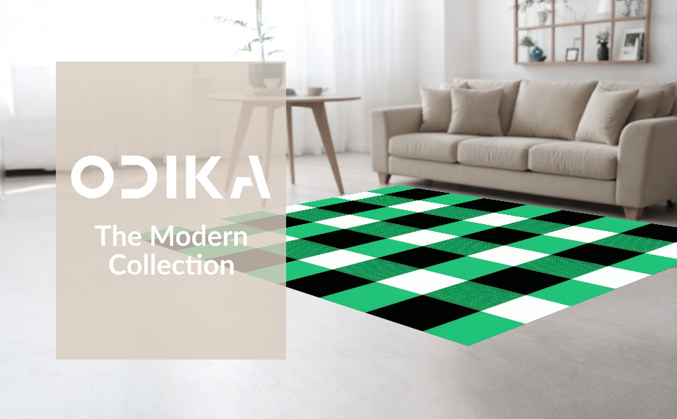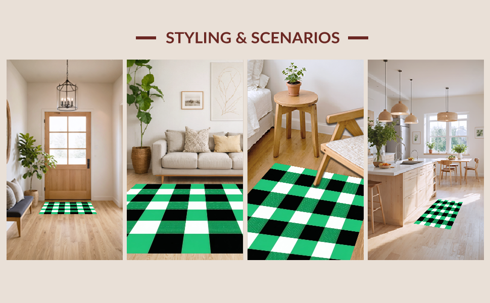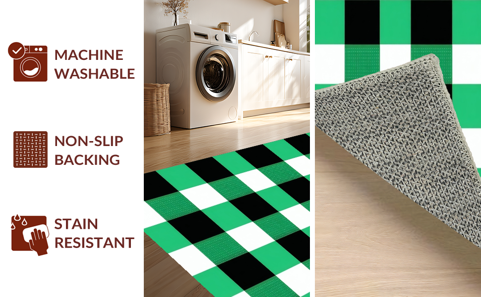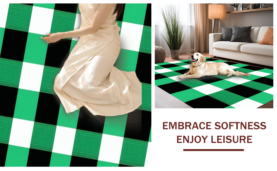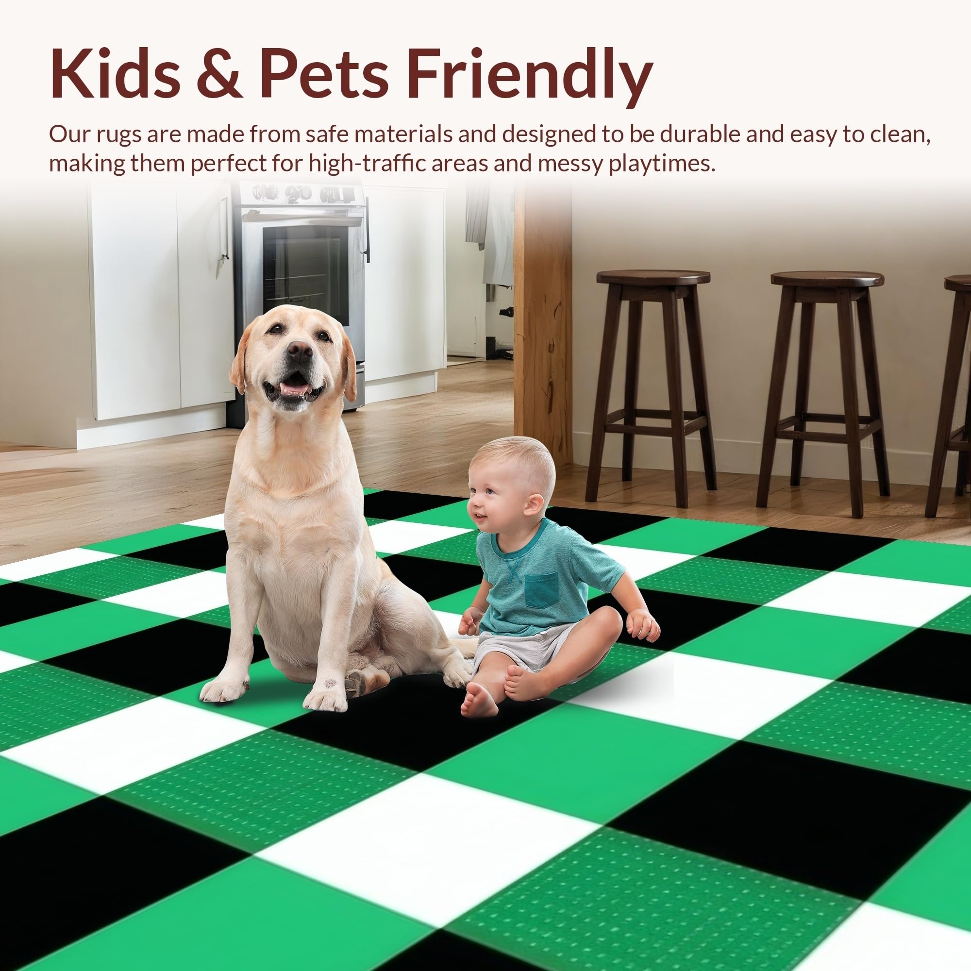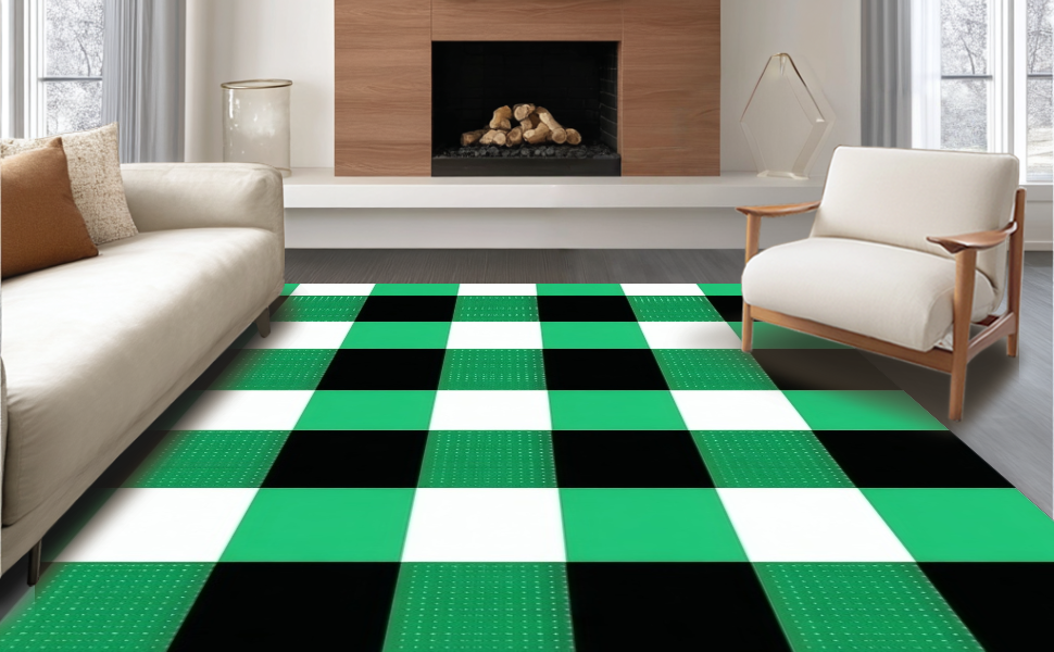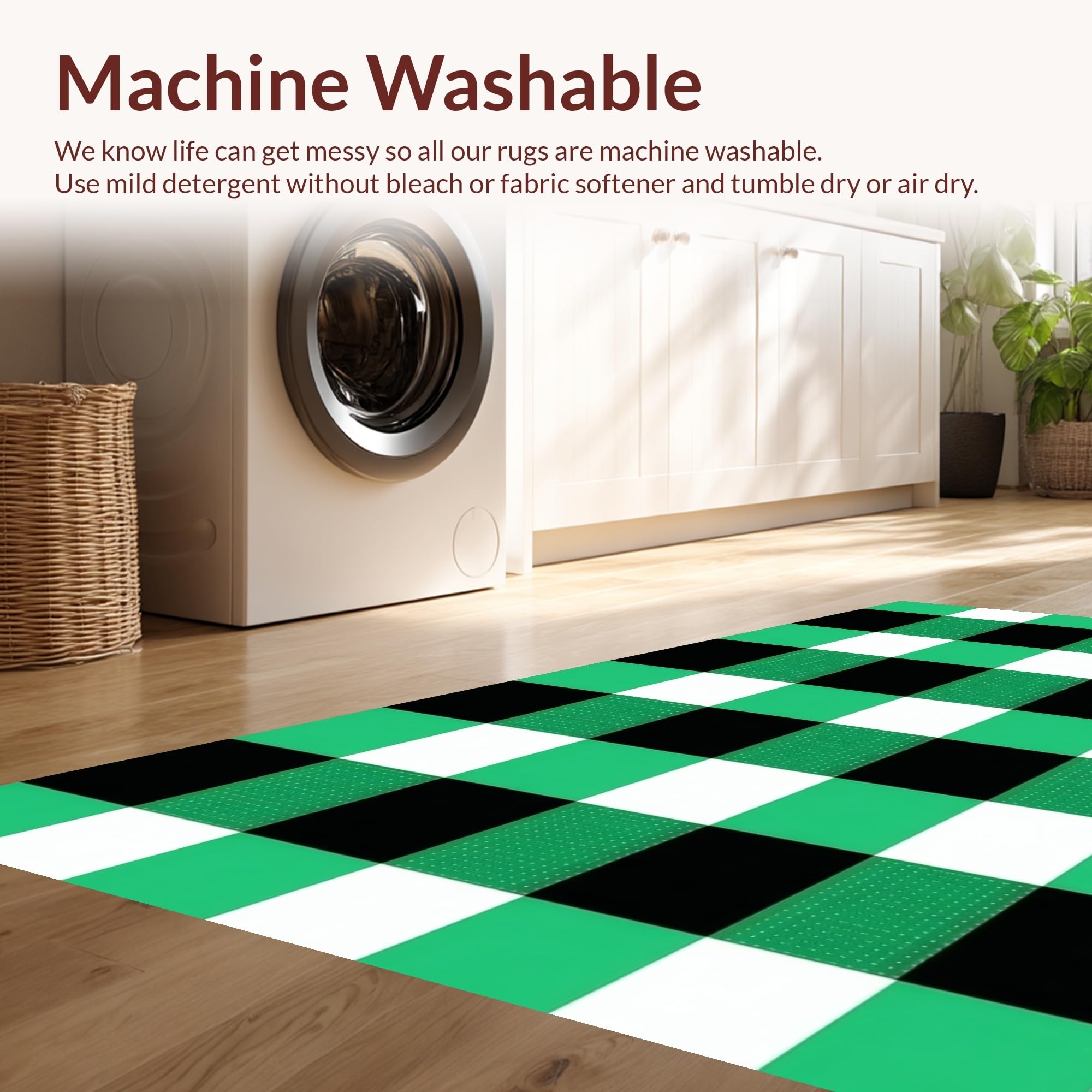 Ultra Soft Area Rug, Non Slip, Stain Resistant, Washable Area Rugs for Living Room, Bedroom, Chic Rustic Checkered Aesthetic(Green) Overview: