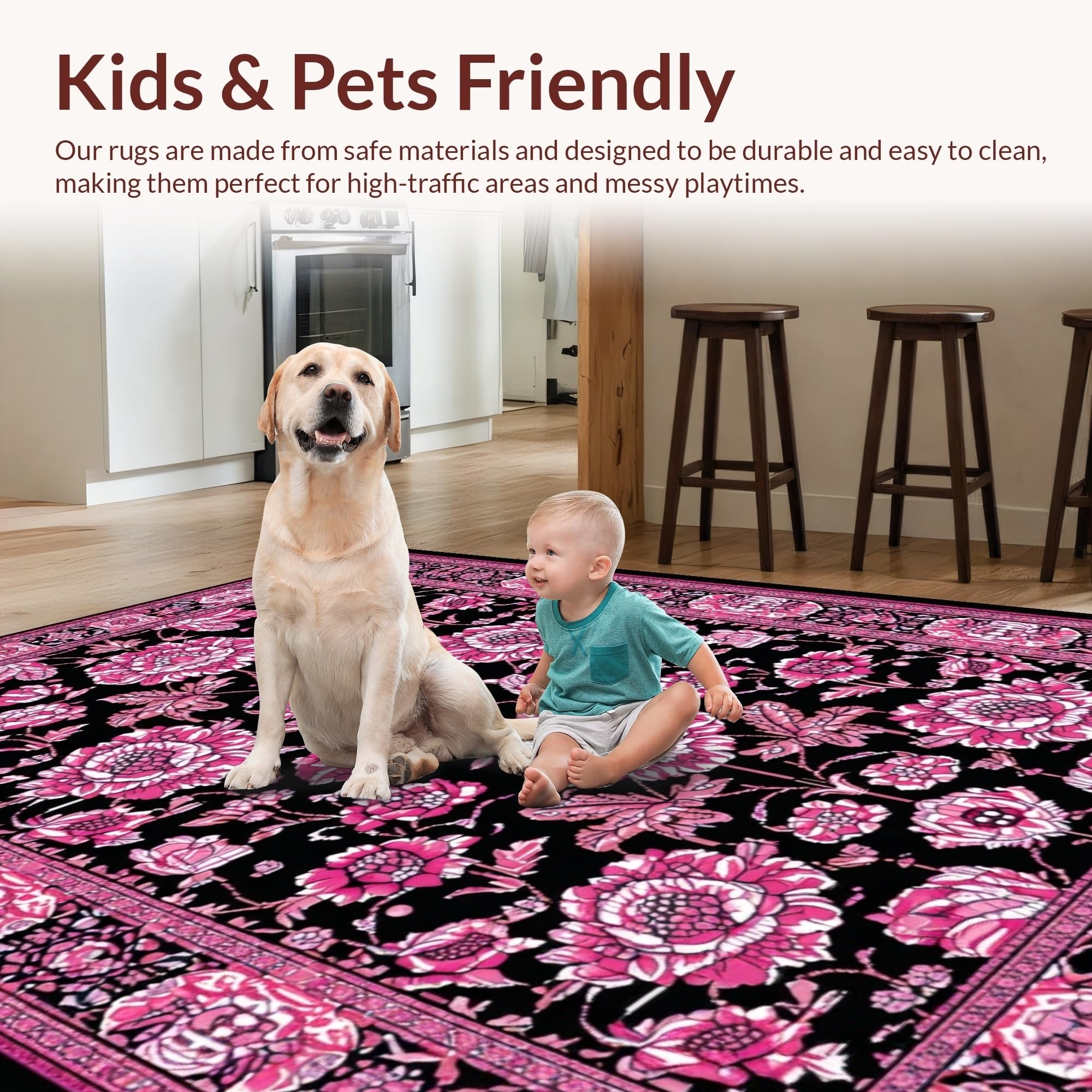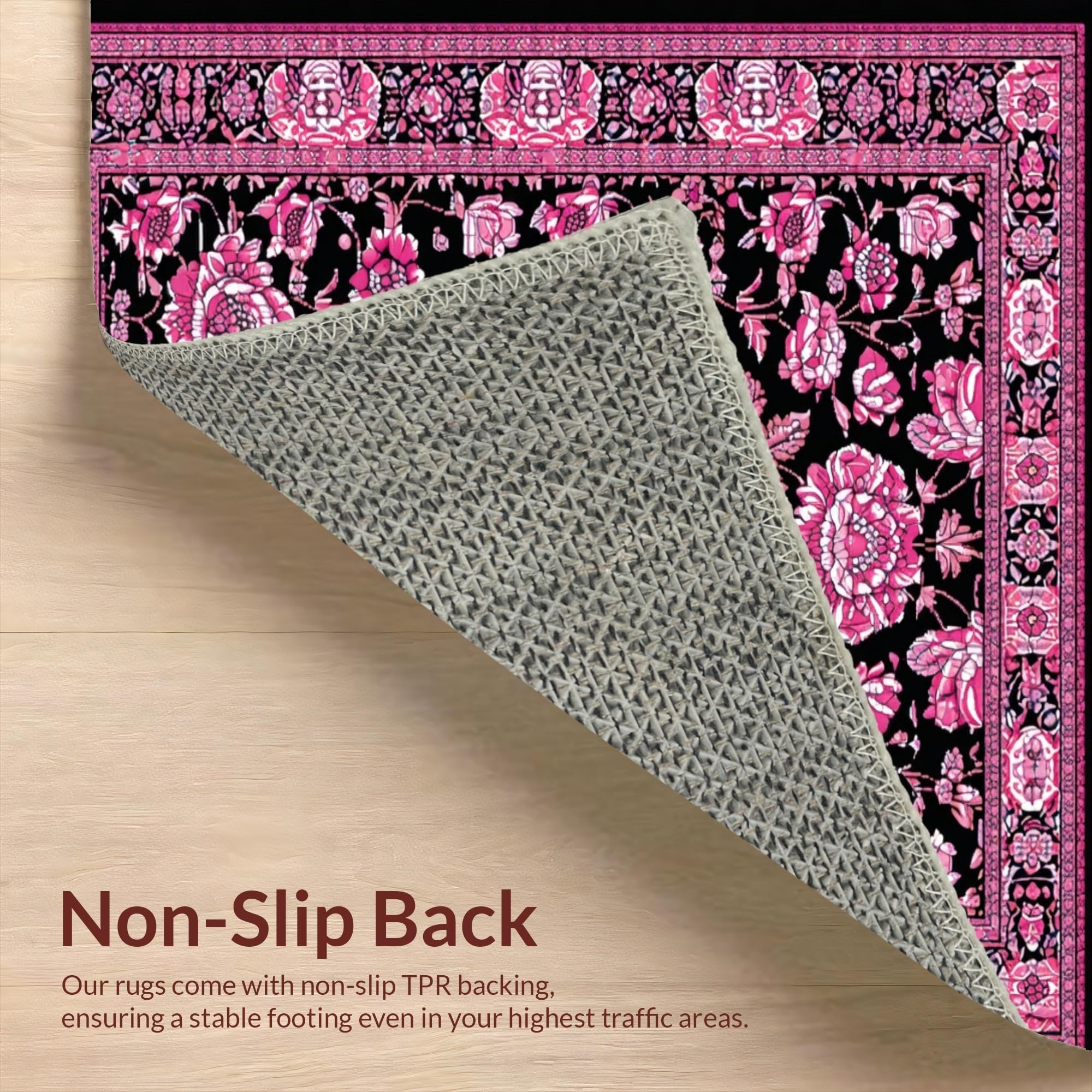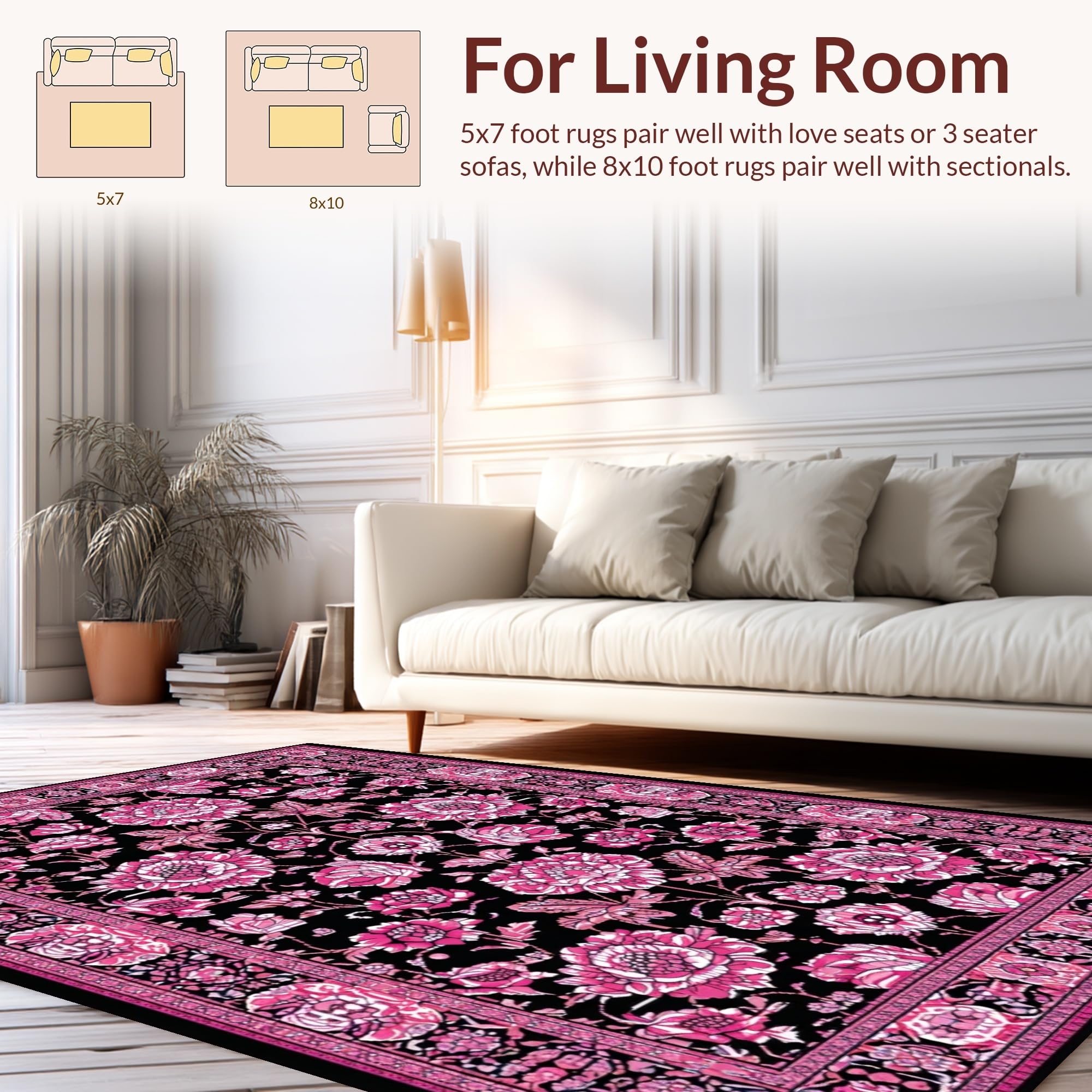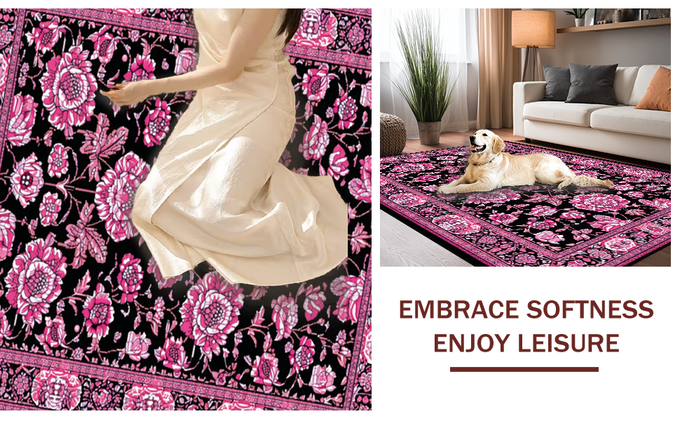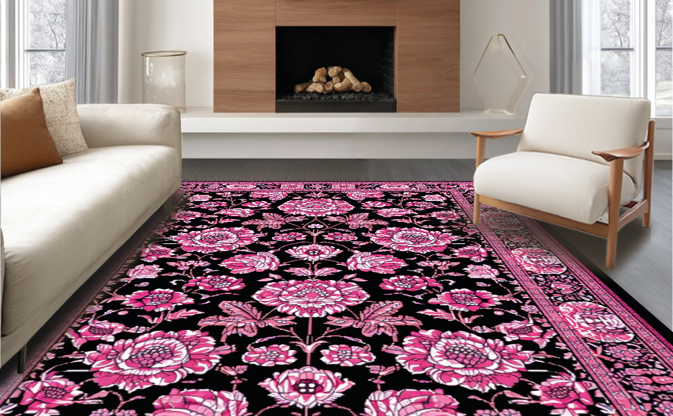 Ultra Soft Area Rug, Non Slip, Stain Resistant, Washable Area Rugs for Living Room, Bedroom, Chic Rustic Floral Arrangement(Pink) Overview:
