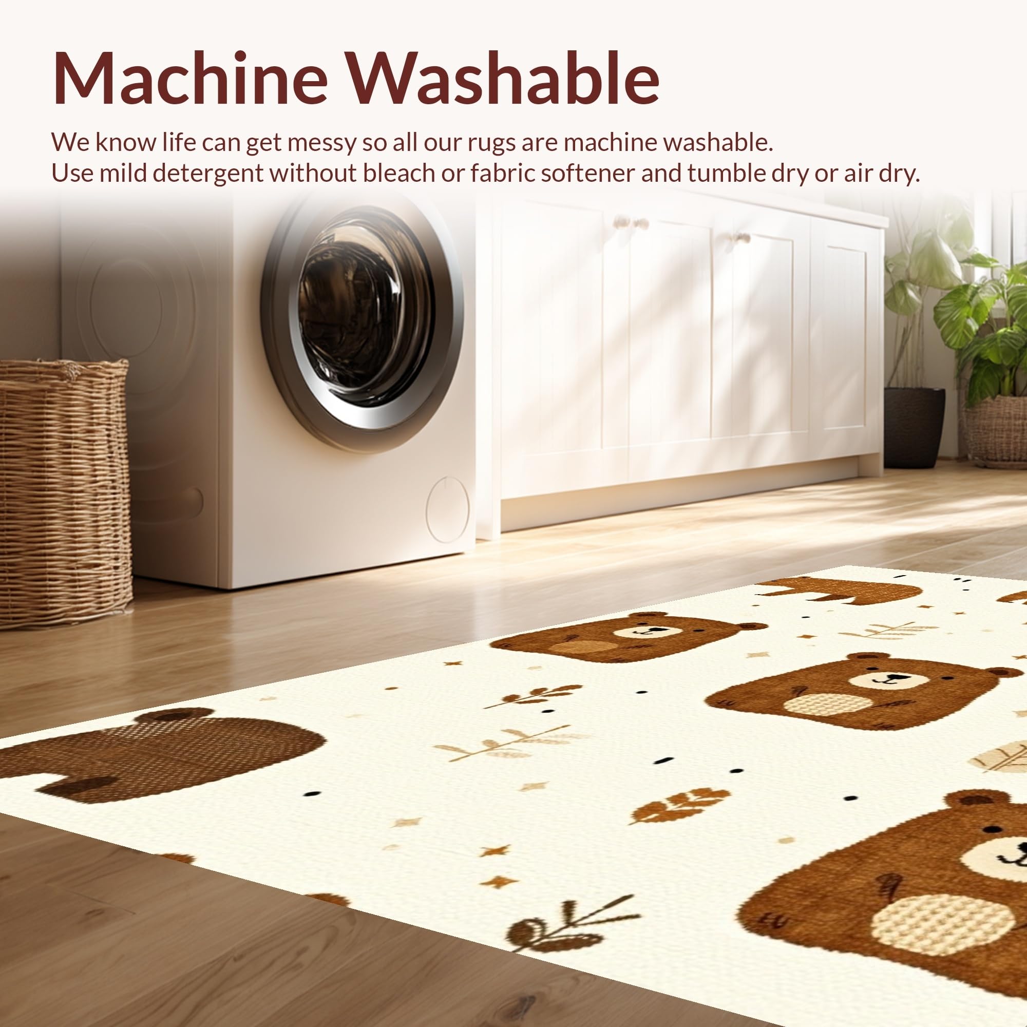 - Machine Washable: Our rugs can be easily thrown in the wash machine.