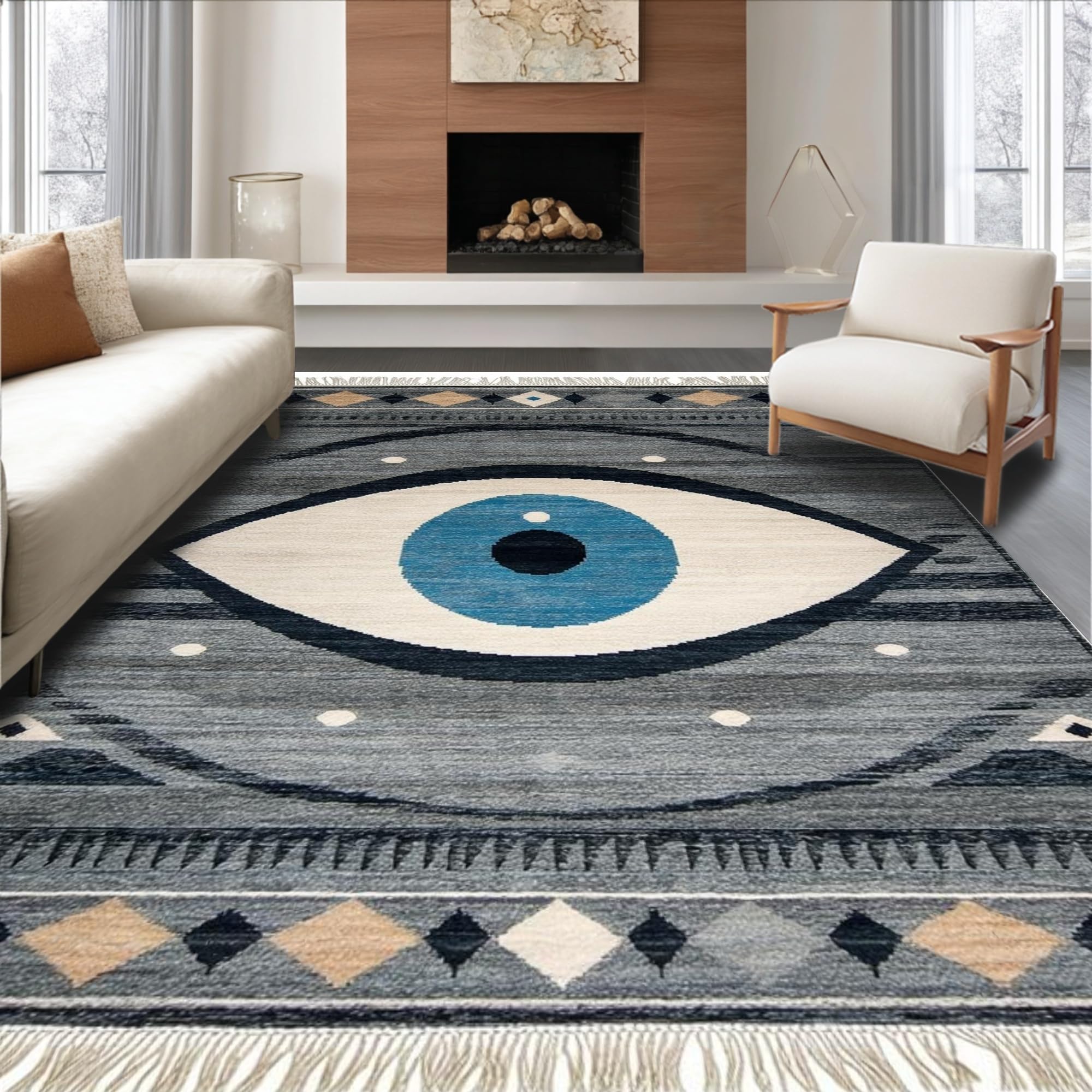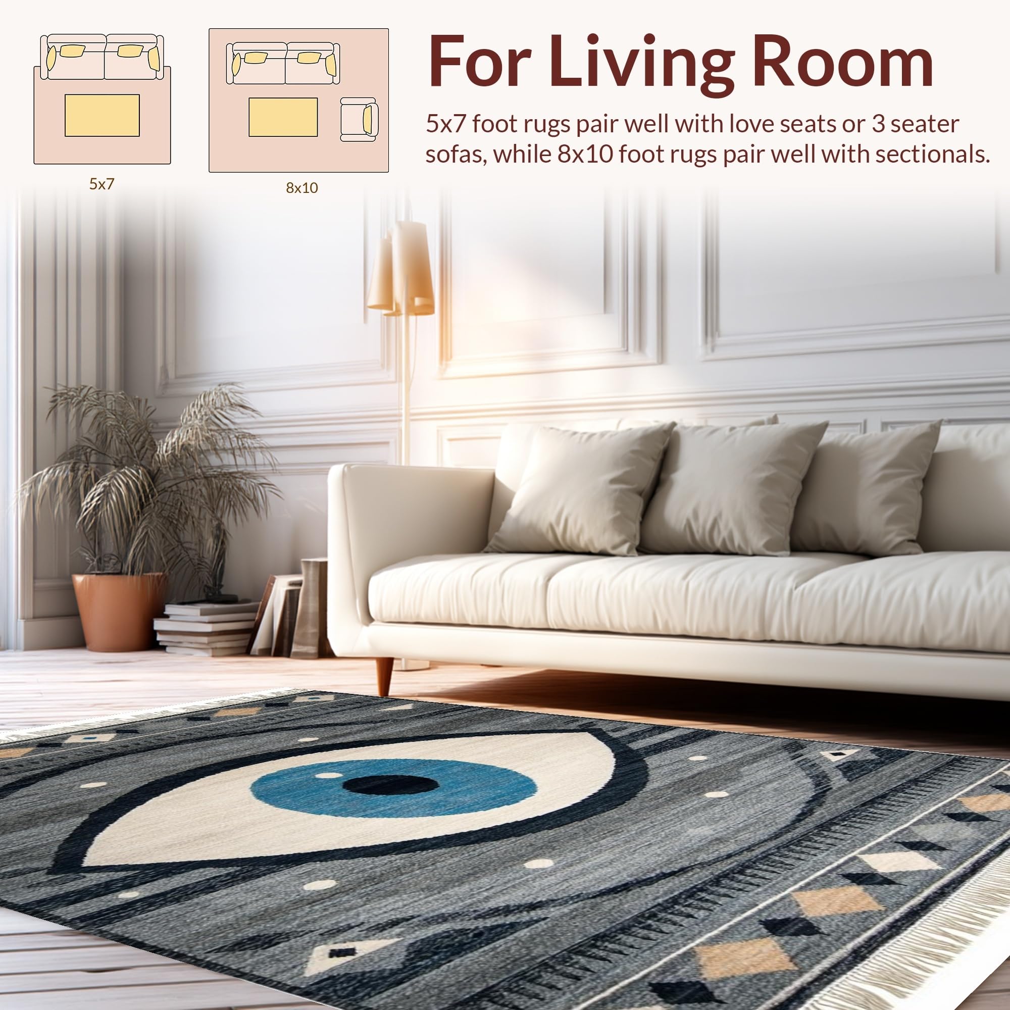 Ultra Soft Area Rug, Non Slip, Stain Resistant, Washable Area Rugs for Living Room, Bedroom, Chic Rustic Textured Tassel Design(Gray) Overview: