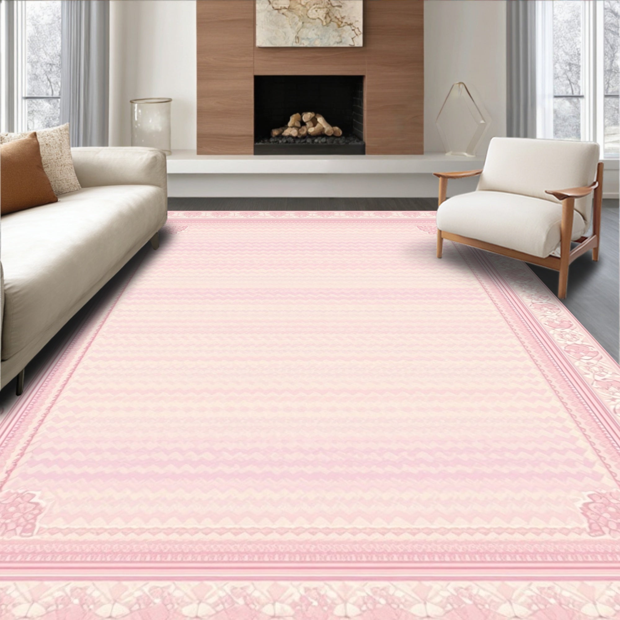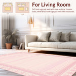 Ultra Soft Area Rug, Non Slip, Stain Resistant, Washable Area Rugs for Living Room, Bedroom, Chic Scallop Frame Rug with Large Bow and Curved Silhouette(Pink) Overview: