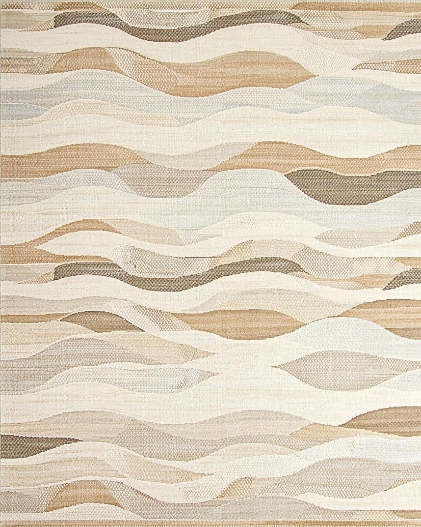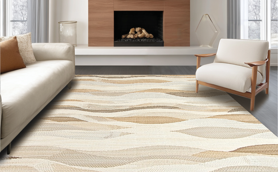 Ultra Soft Area Rug, Non Slip, Stain Resistant, Washable Area Rugs for Living Room, Bedroom, Chic Scalloped Coastal Aesthetic(Beige) Overview: