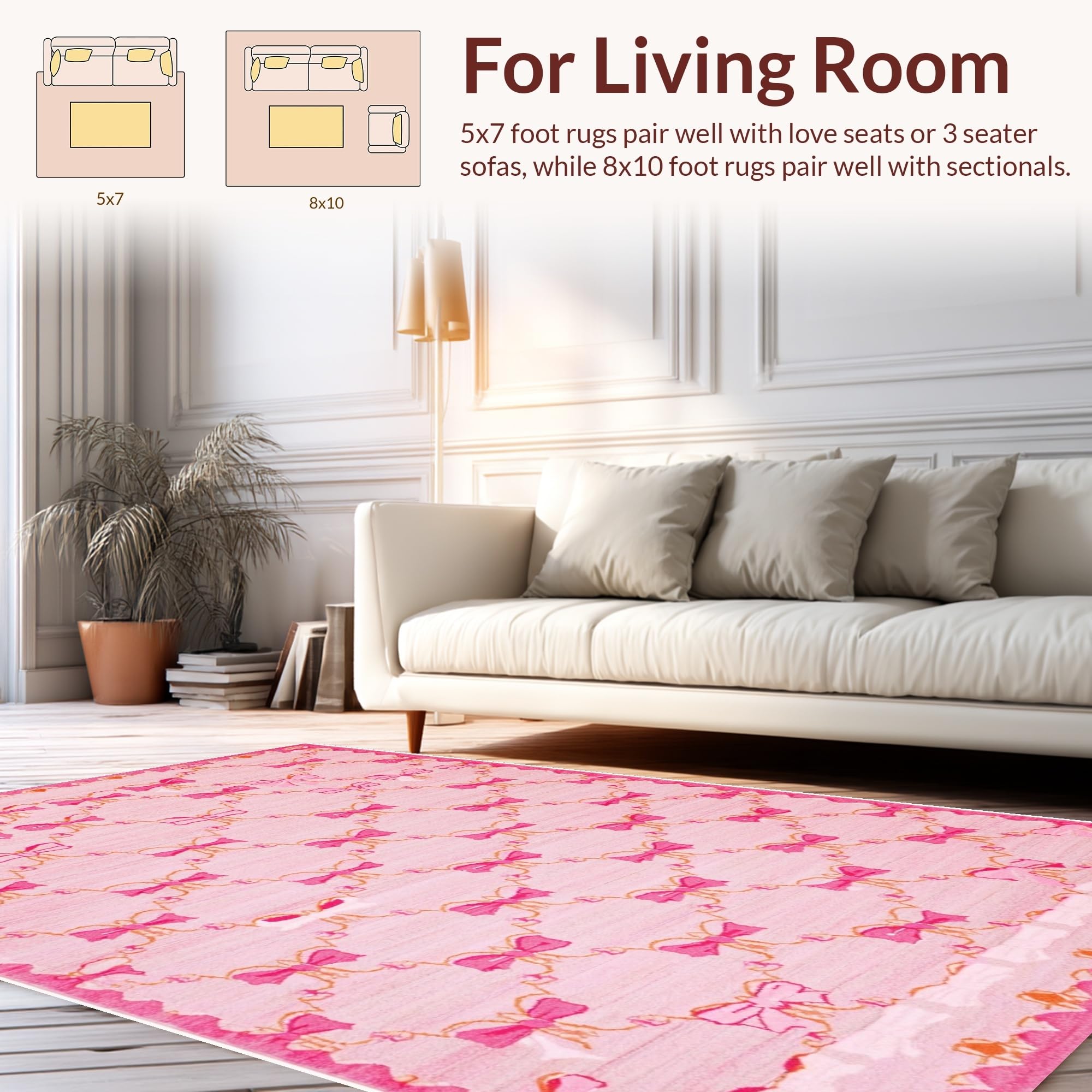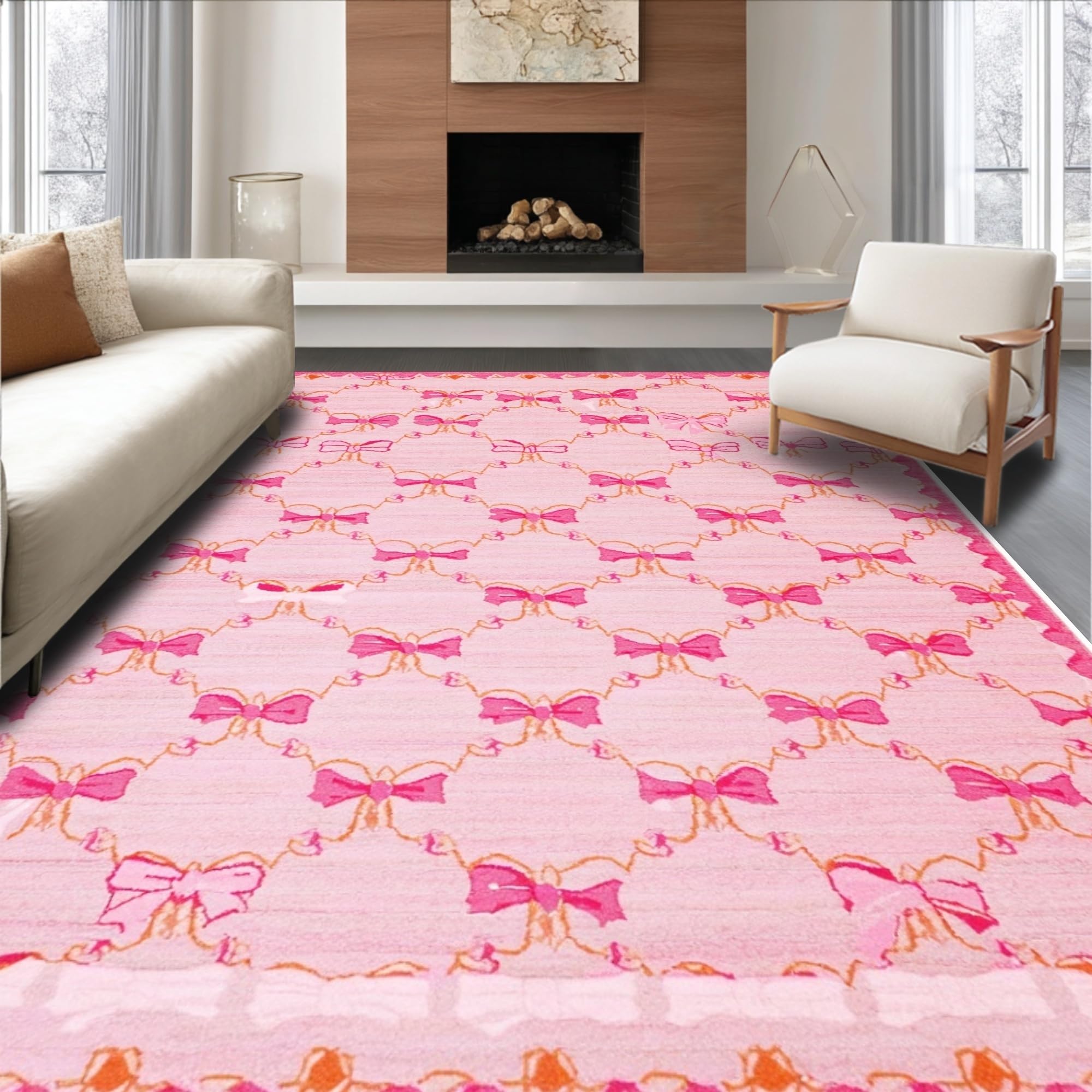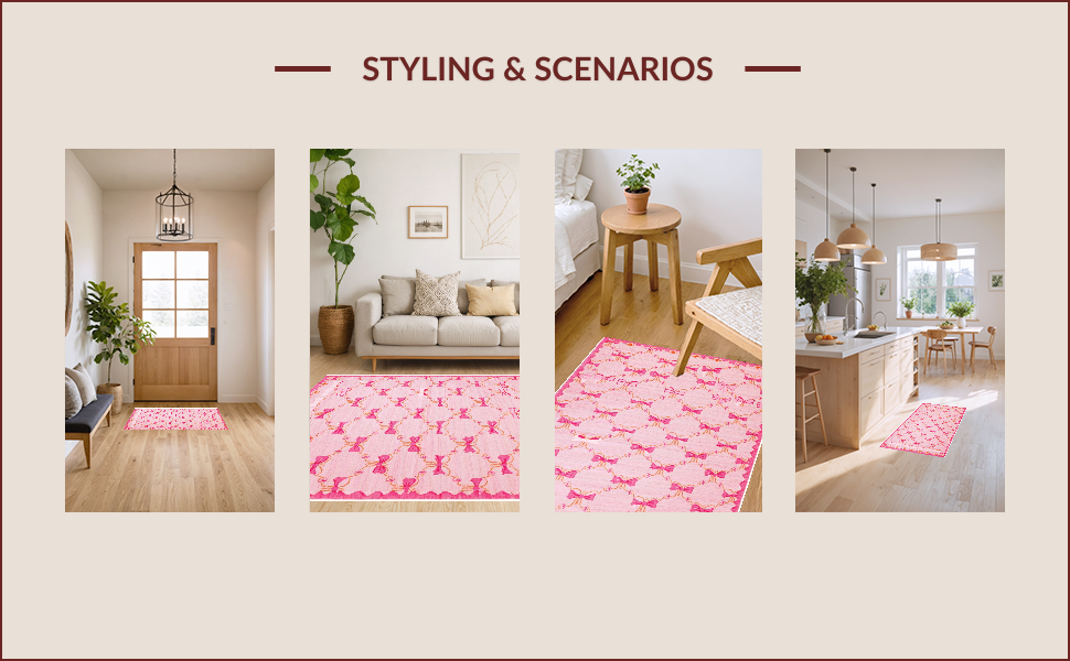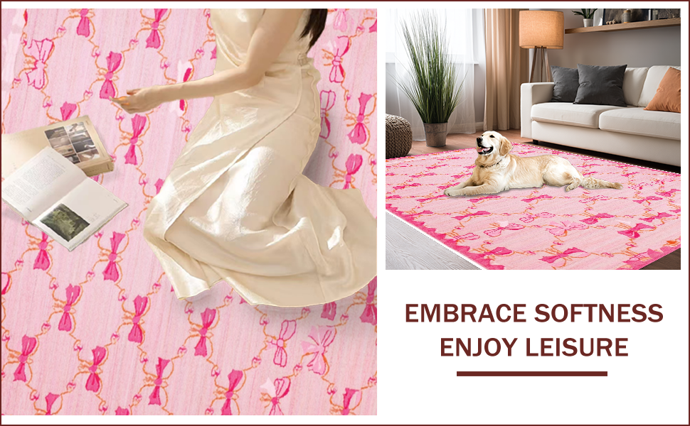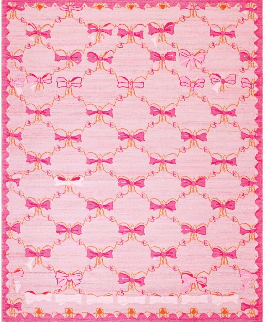 Ultra Soft Area Rug, Non Slip, Stain Resistant, Washable Area Rugs for Living Room, Bedroom, Chic Scalloped Elegance in Pink(Pink) Overview:
