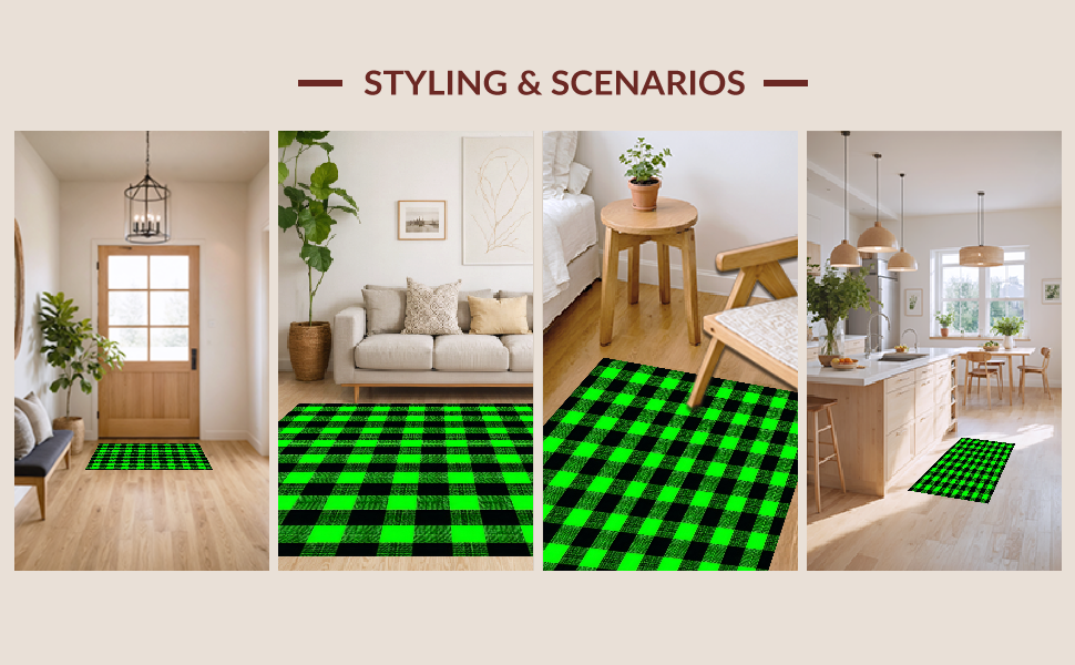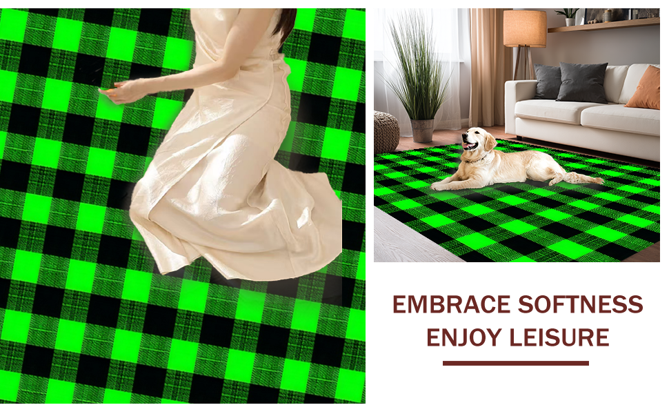 Ultra Soft Area Rug, Non Slip, Stain Resistant, Washable Area Rugs for Living Room, Bedroom, Chic Seasonal Green Motif(Green) Overview:
