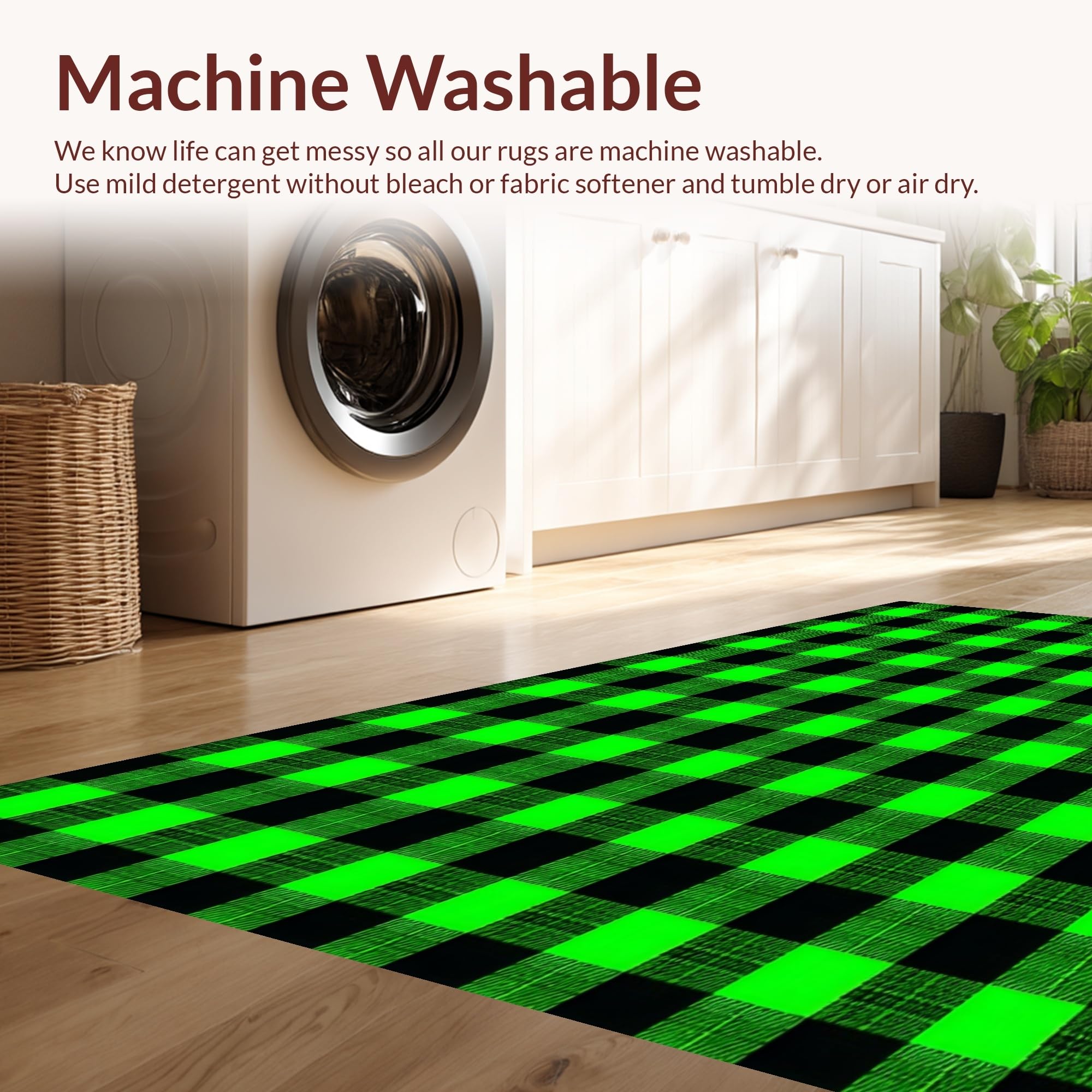 - Machine Washable: Our rugs can be easily thrown in the wash machine.