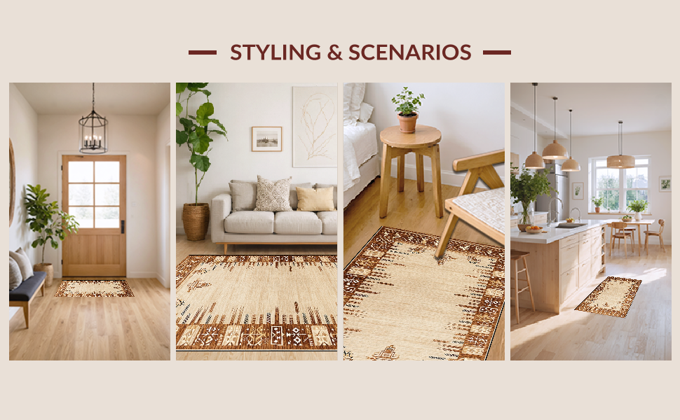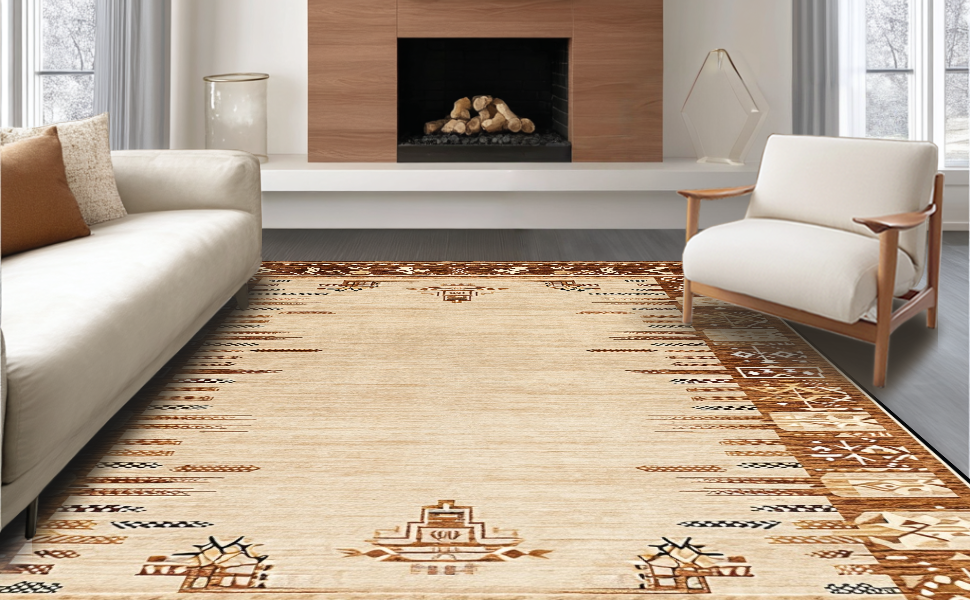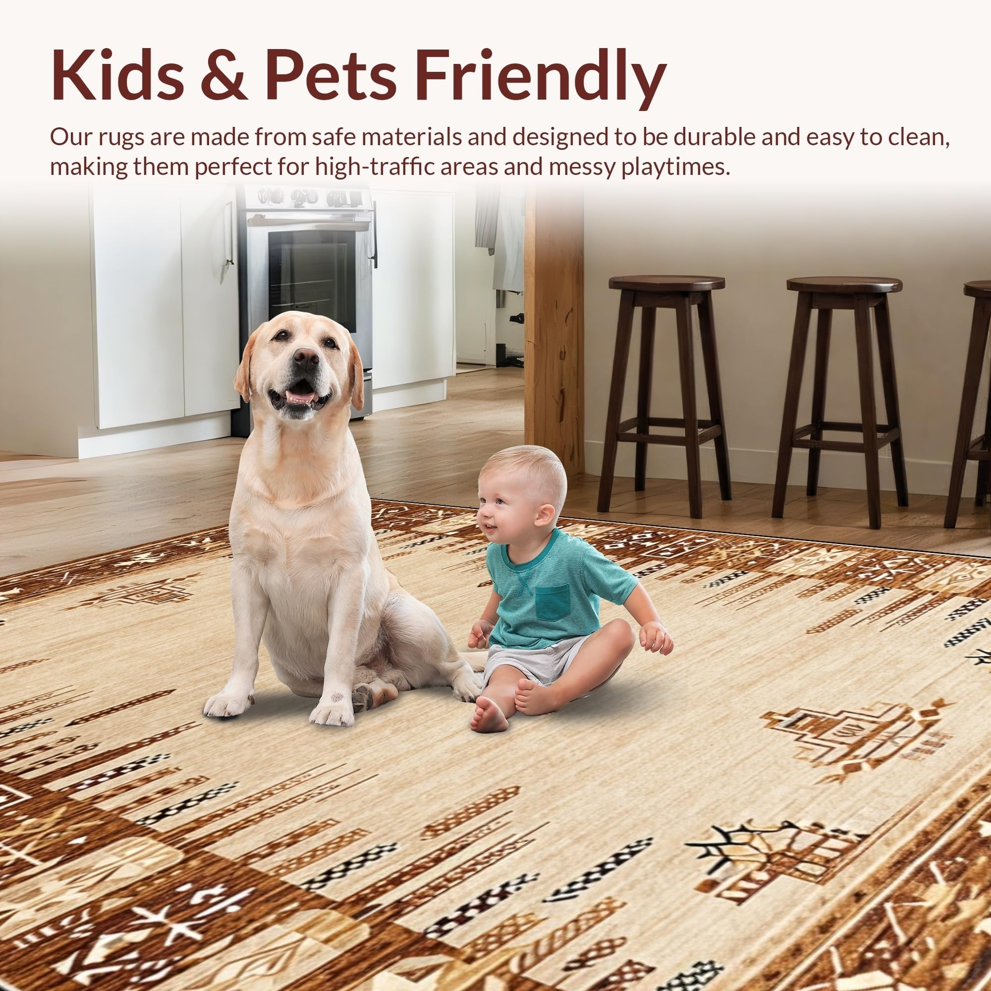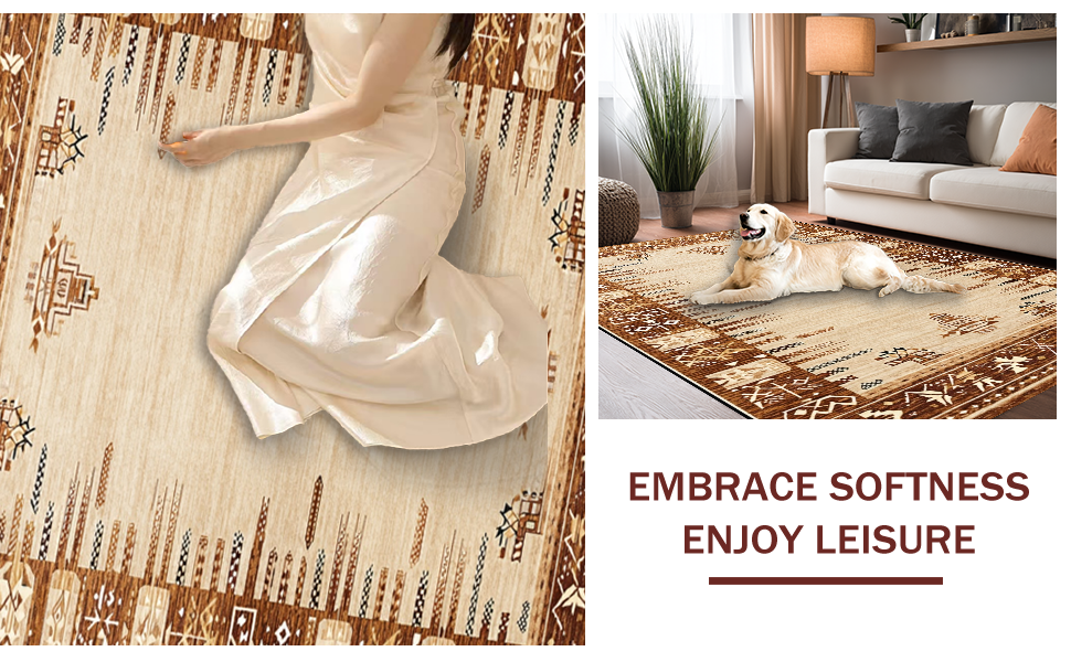 Ultra Soft Area Rug, Non Slip, Stain Resistant, Washable Area Rugs for Living Room, Bedroom, Chic Sika Deer Inspired Pattern(Beige) Overview: